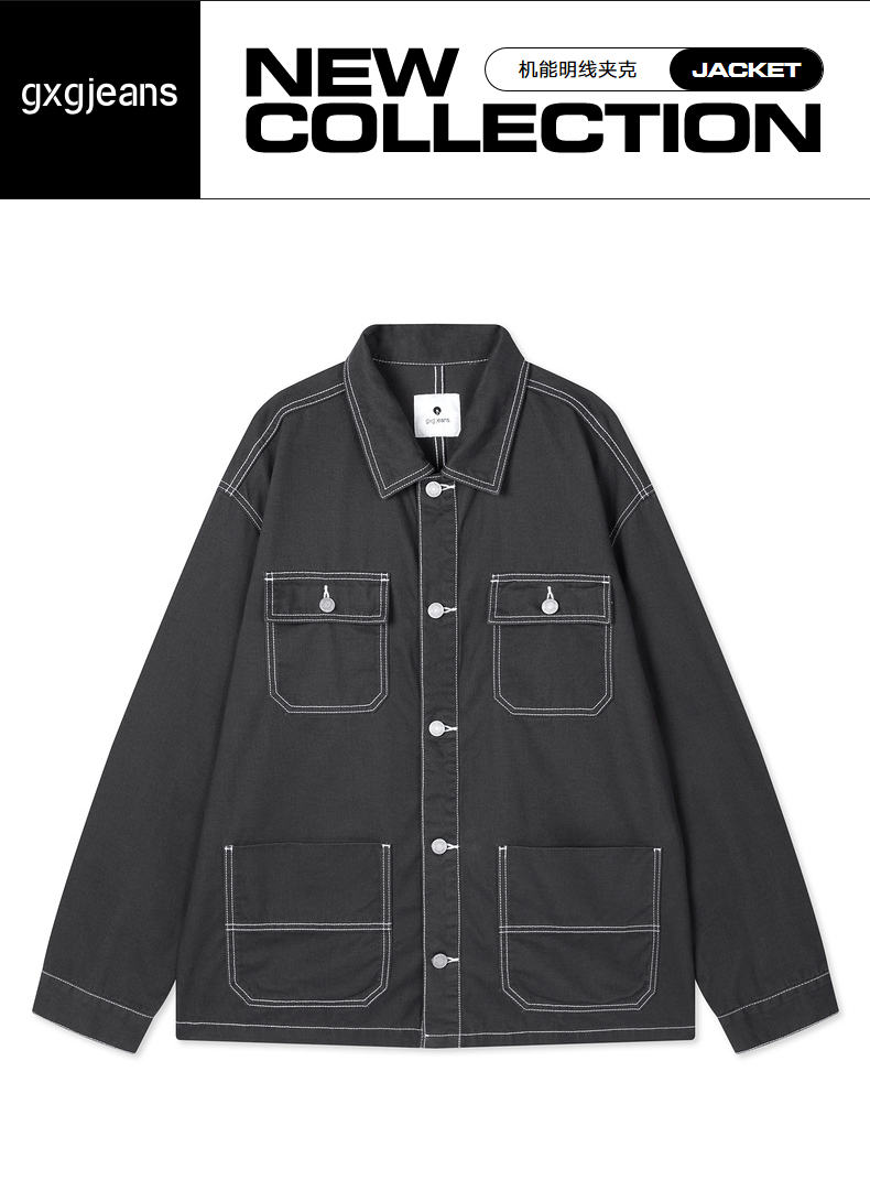 gxgjeans男装春季夹克男潮流明线休闲翻领夹克外套