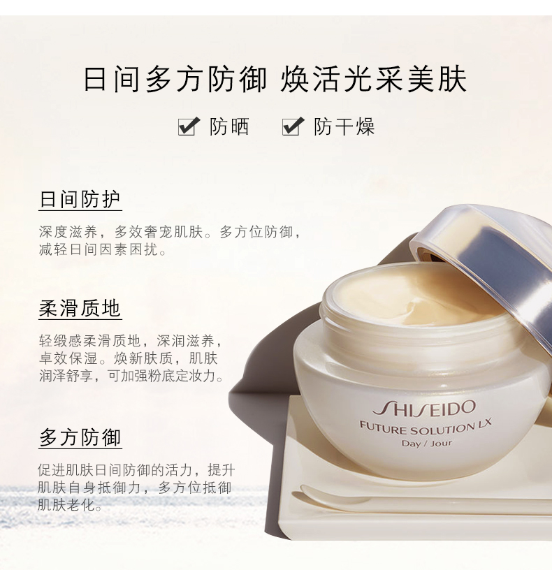 资生堂时光琉璃御藏臻采日霜 补水滋润 日间防护 抗老防晒 柔滑JPY带授权招加盟代理