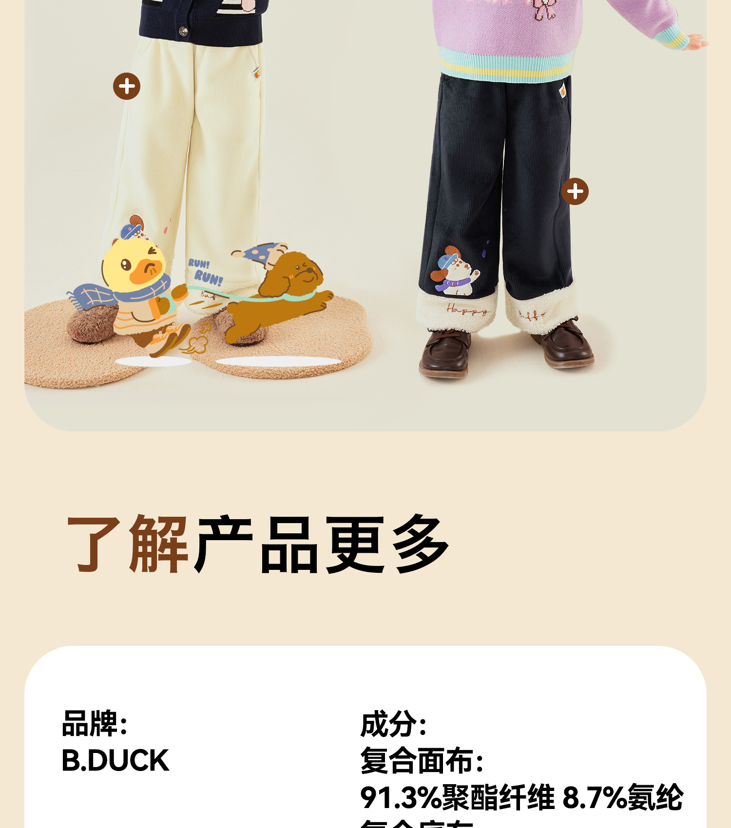 【加绒】B.Duck小黄鸭童装冬季休闲长裤90-130 FF5672050
