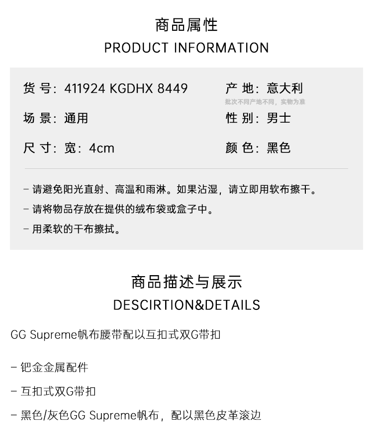 【四】GUCCI 古驰 男士互扣式双G搭扣腰带 黑色 411924 KGDHX 8449