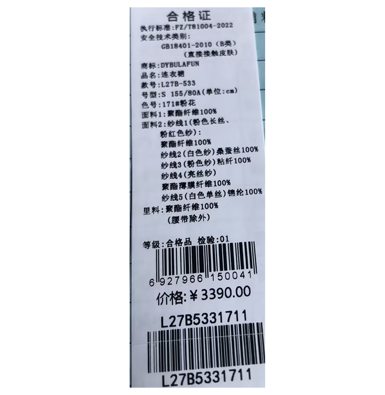 戴布拉芬连衣裙L27B533