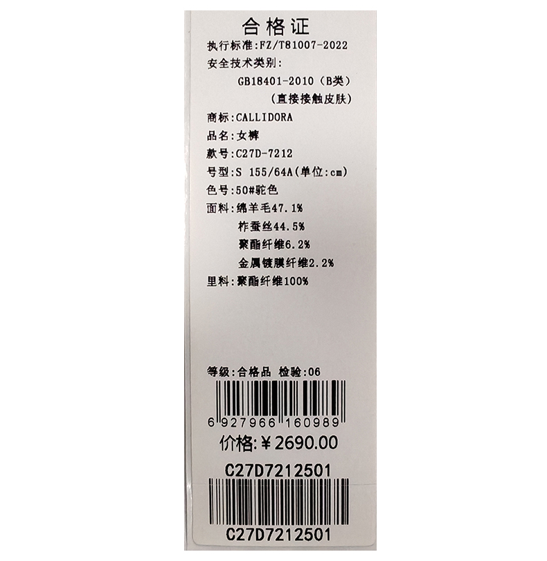 卡莉朵拉裤子C27D7212