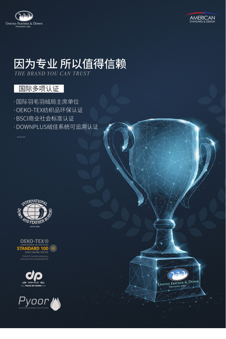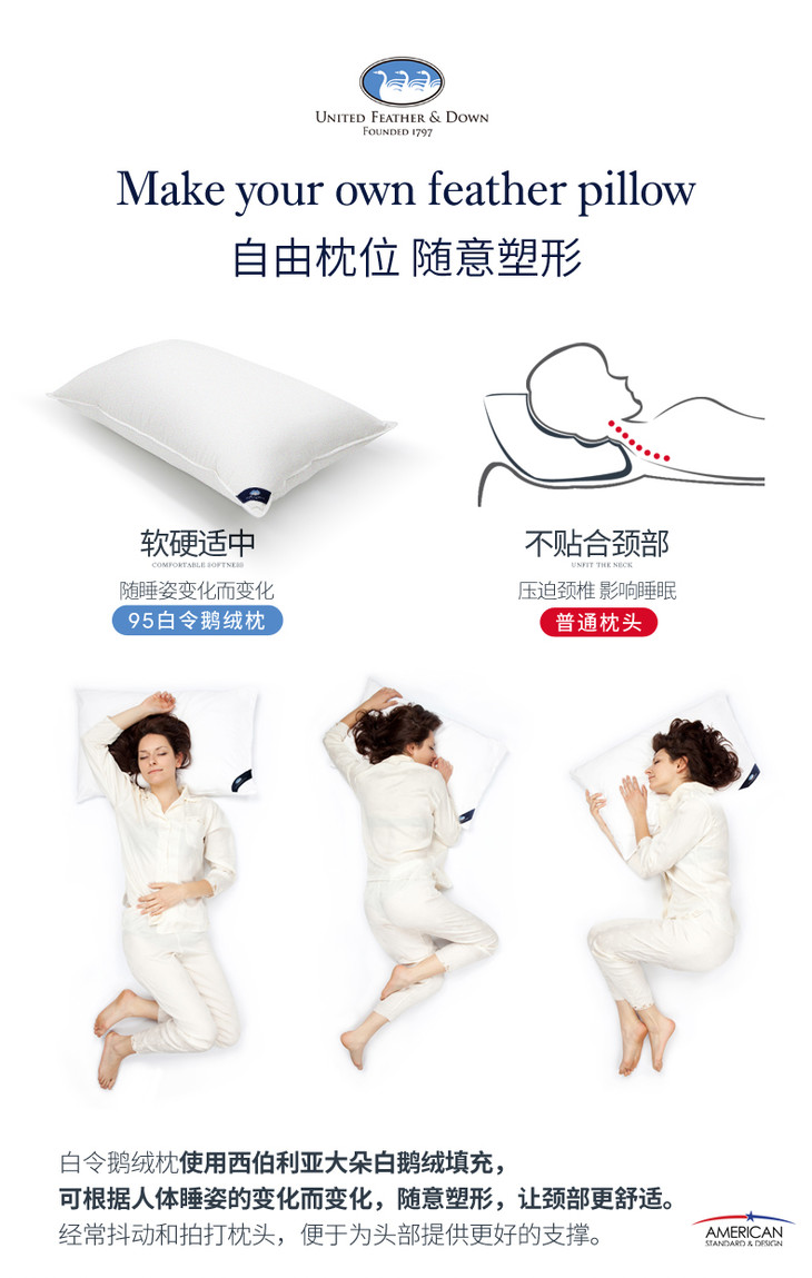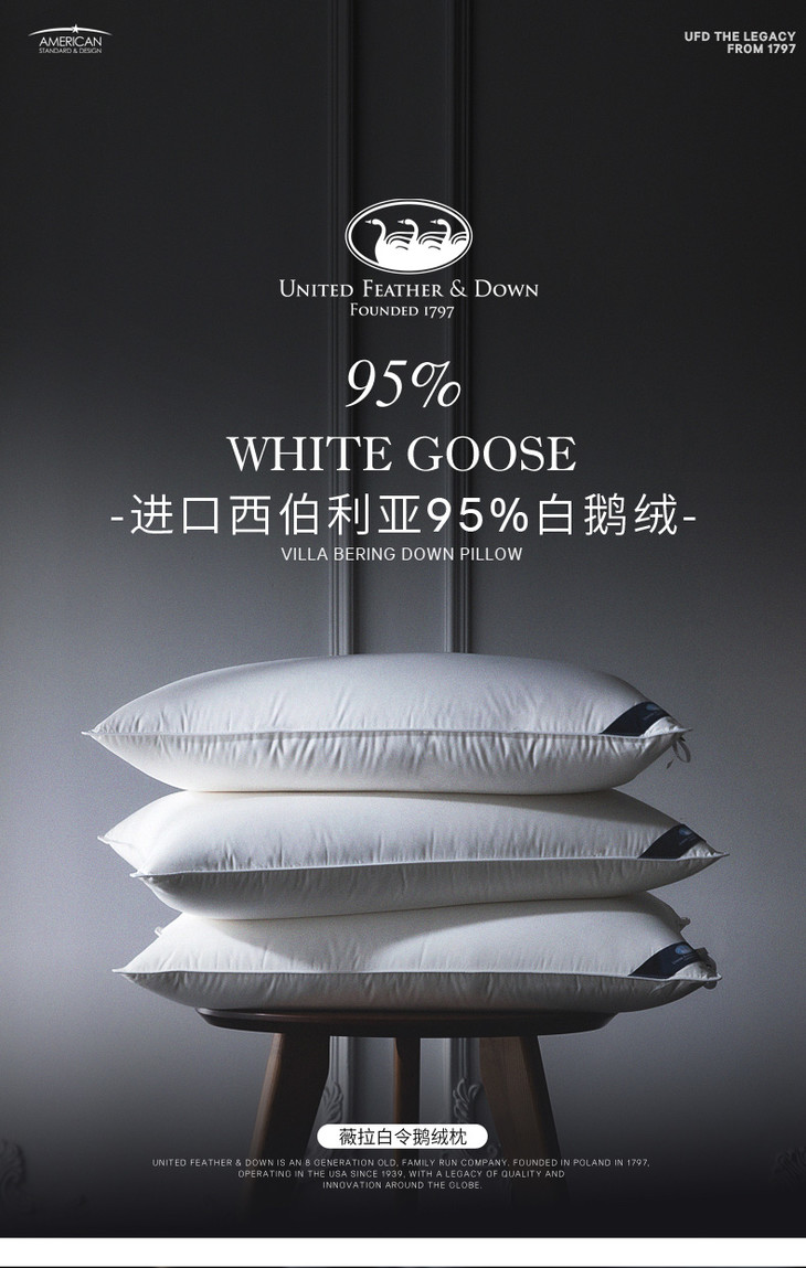 UFD羽绒枕95白鹅绒枕头枕芯护颈椎枕五星级酒店100支全棉单人助眠