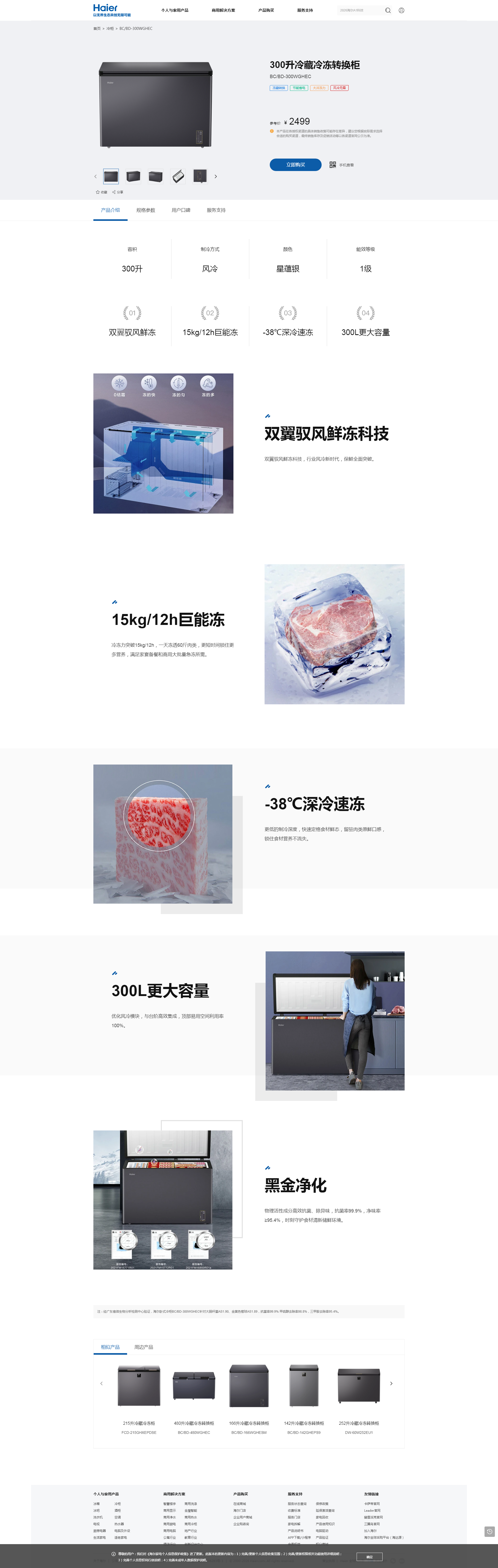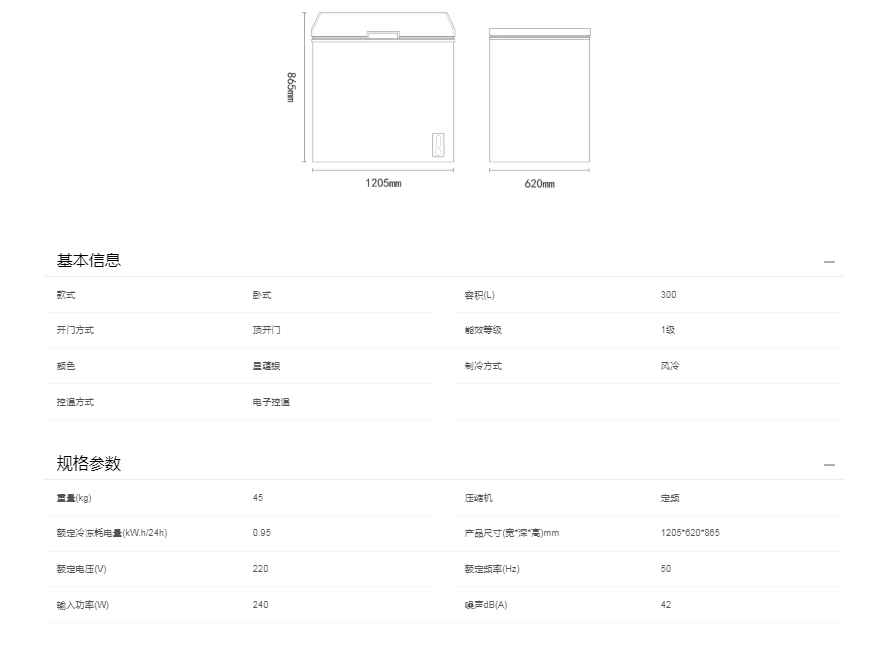 海尔 冰柜 BC/BD-300WGHEC 300升 风冷 单温 一级能效 定频 电子控温 卧式 顶开门 星蕴银