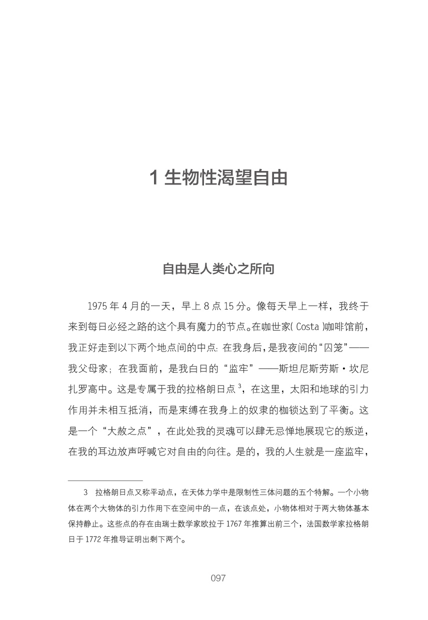 你大可放心,我之所以写这本书,并不是为了否认灵魂或者是人类的非物质性,以便再一次彰显生物学的全知全能。这种尝试非常自负,并且徒劳。将人类灵魂简化为物质的做法显然行不通。这种还原论观点只会加深人类躯体和我们感知到的非物质性之间的隔阂。相反,这本书中介绍的生物学新知将使生物学上升到非物质要素的层面,从而使该要素具体化,而不是全盘否定它。只是使非物质要素更真实。因此,真正无用且过时的不是灵魂,而是灵魂的非物质性,因为我们已经不再需要借助它来解释我们的感受了。