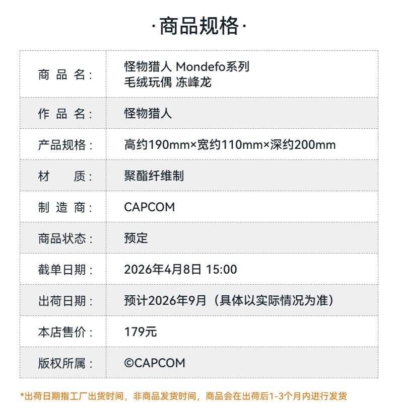 【GSC预售定金】怪物猎人 Mondefo系列 毛绒玩偶 冻峰龙