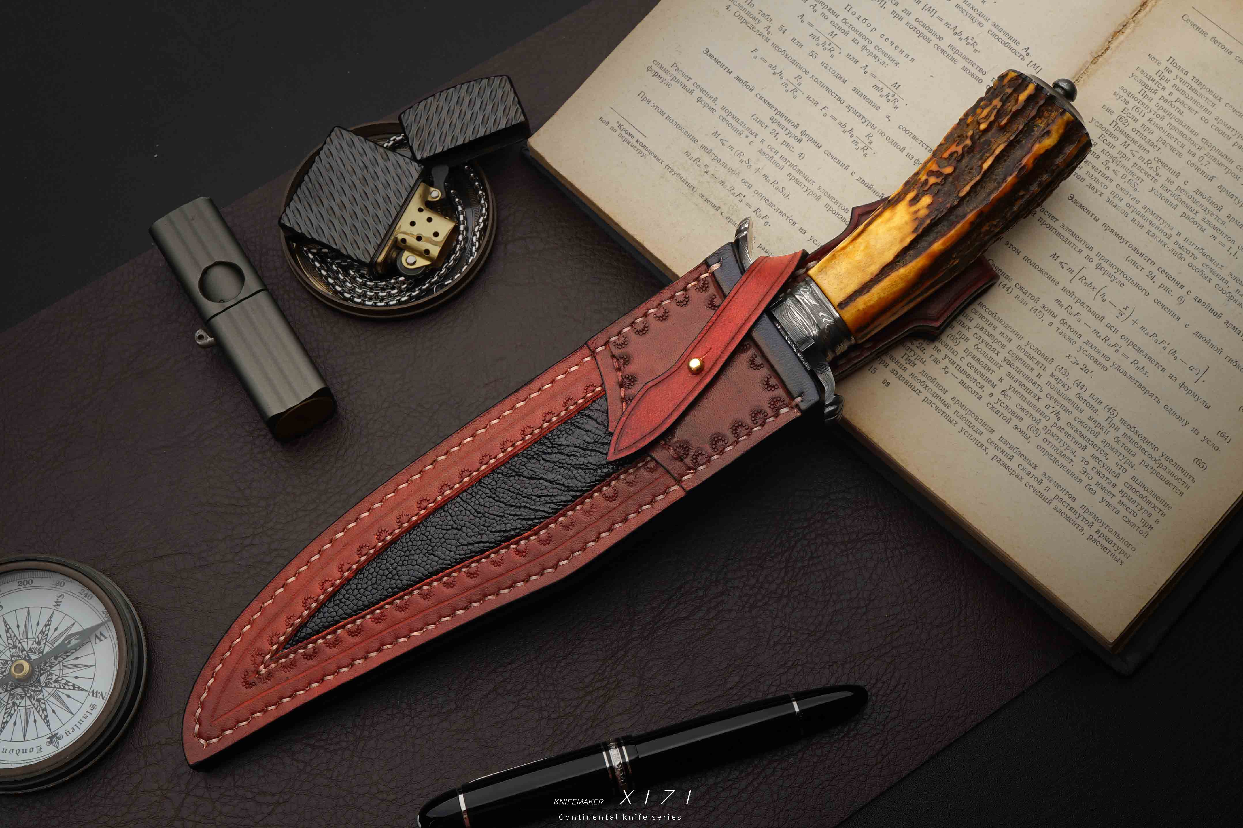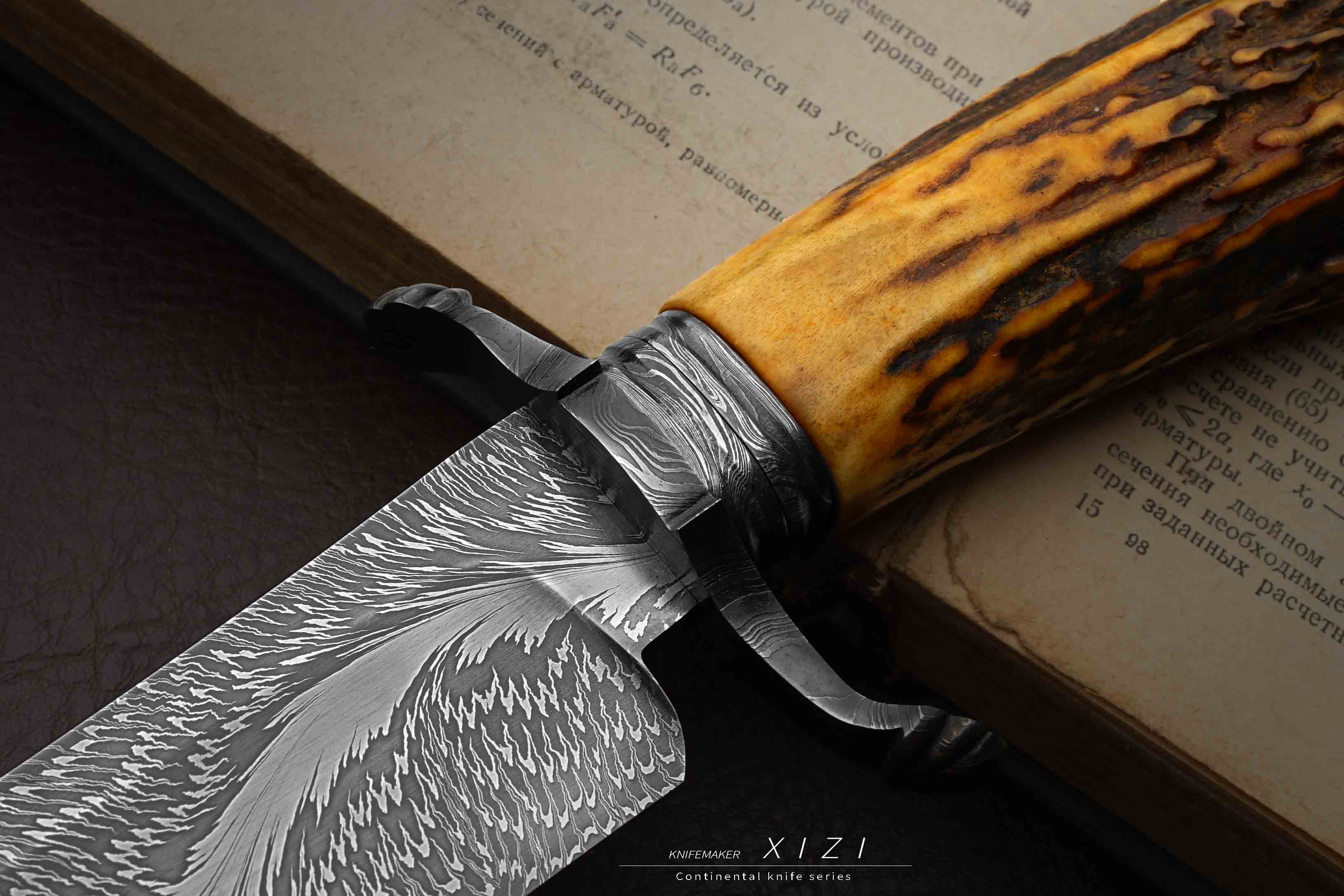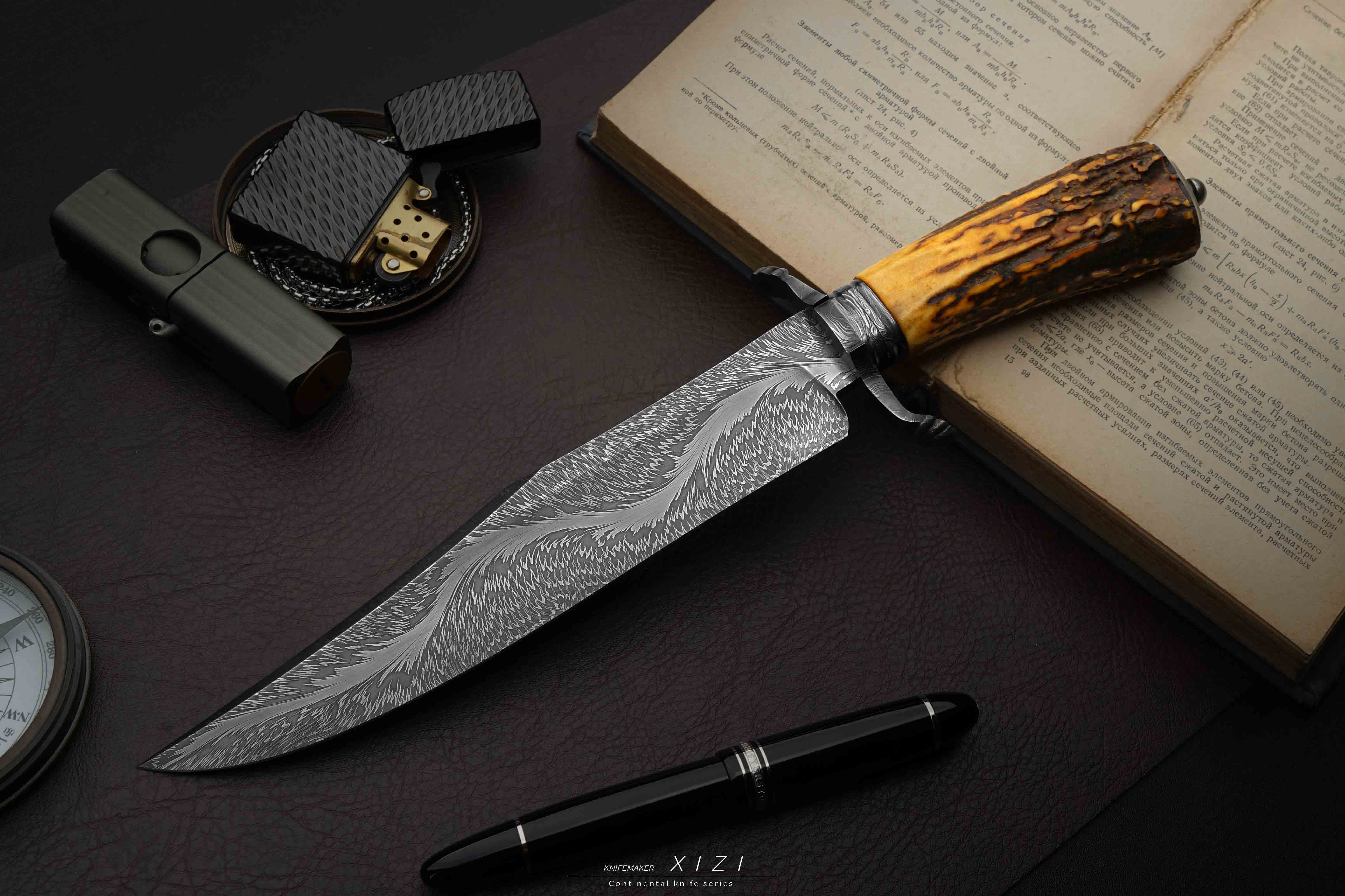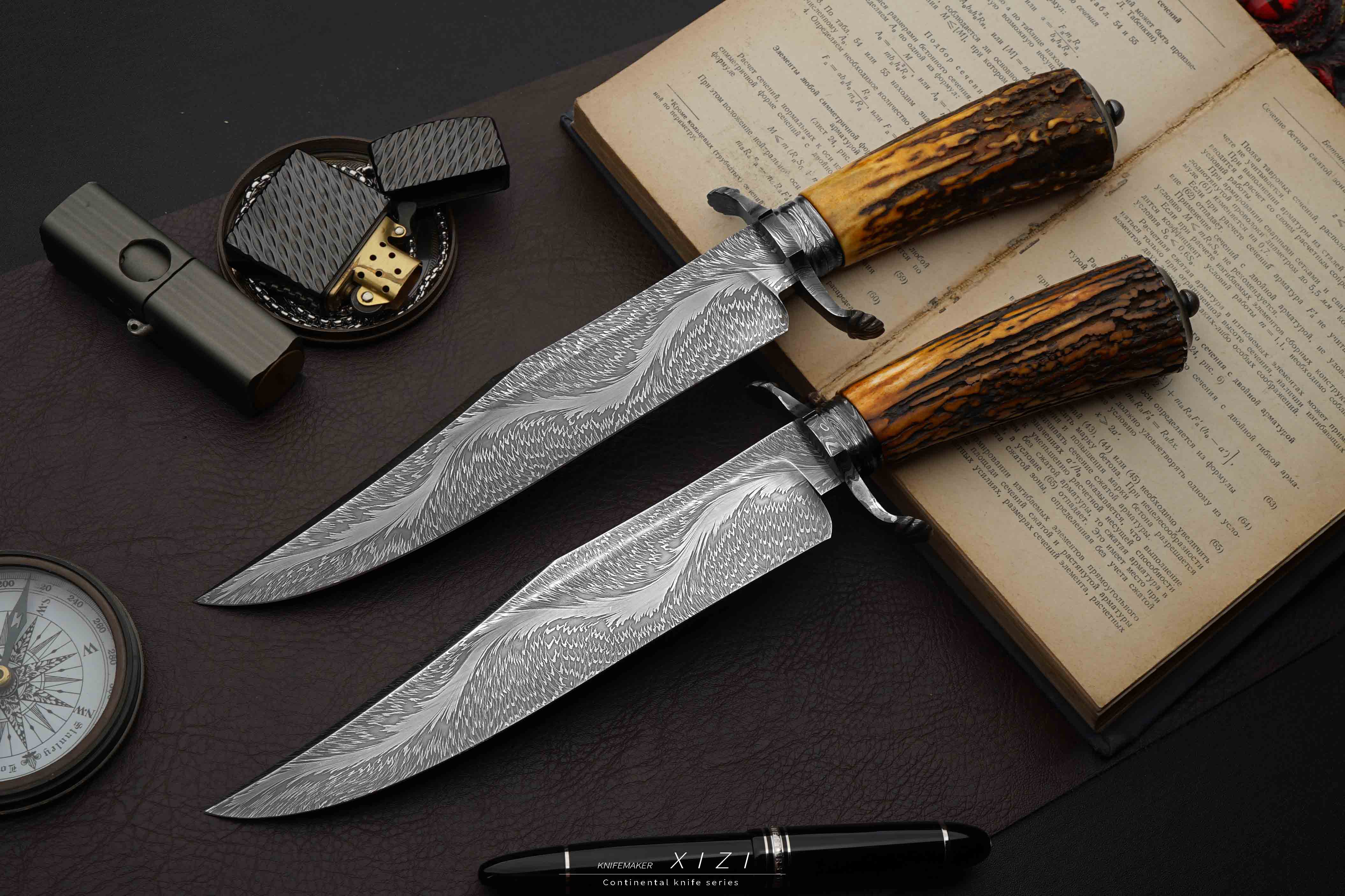 新的鹿角博弈,仅两只,手锻s羽毛,这个比普通的锻打更复杂,美国进口极品鹿角手柄,全大马配件