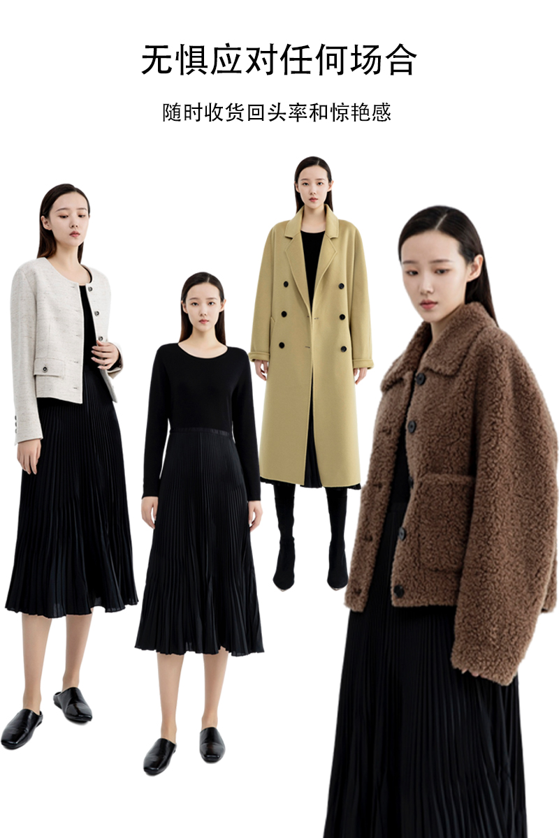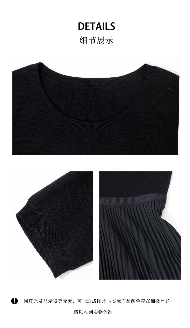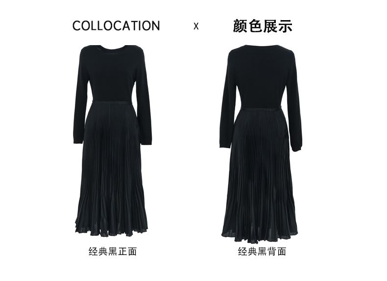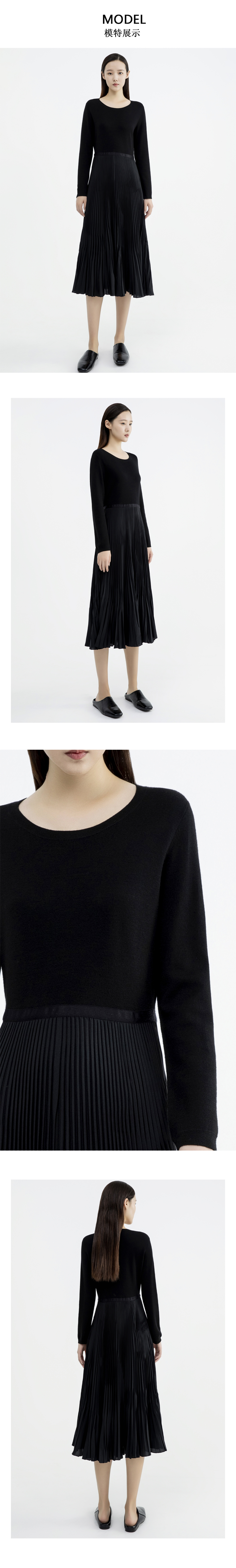 CARA BLUE压褶工艺针梭相拼修身黑色连衣裙