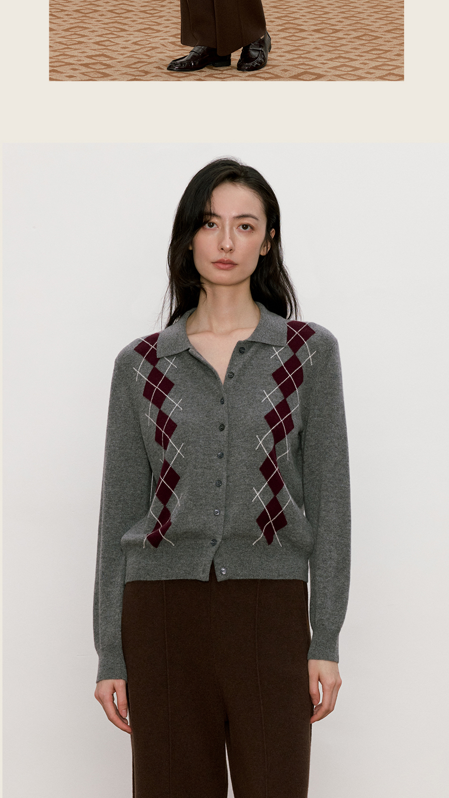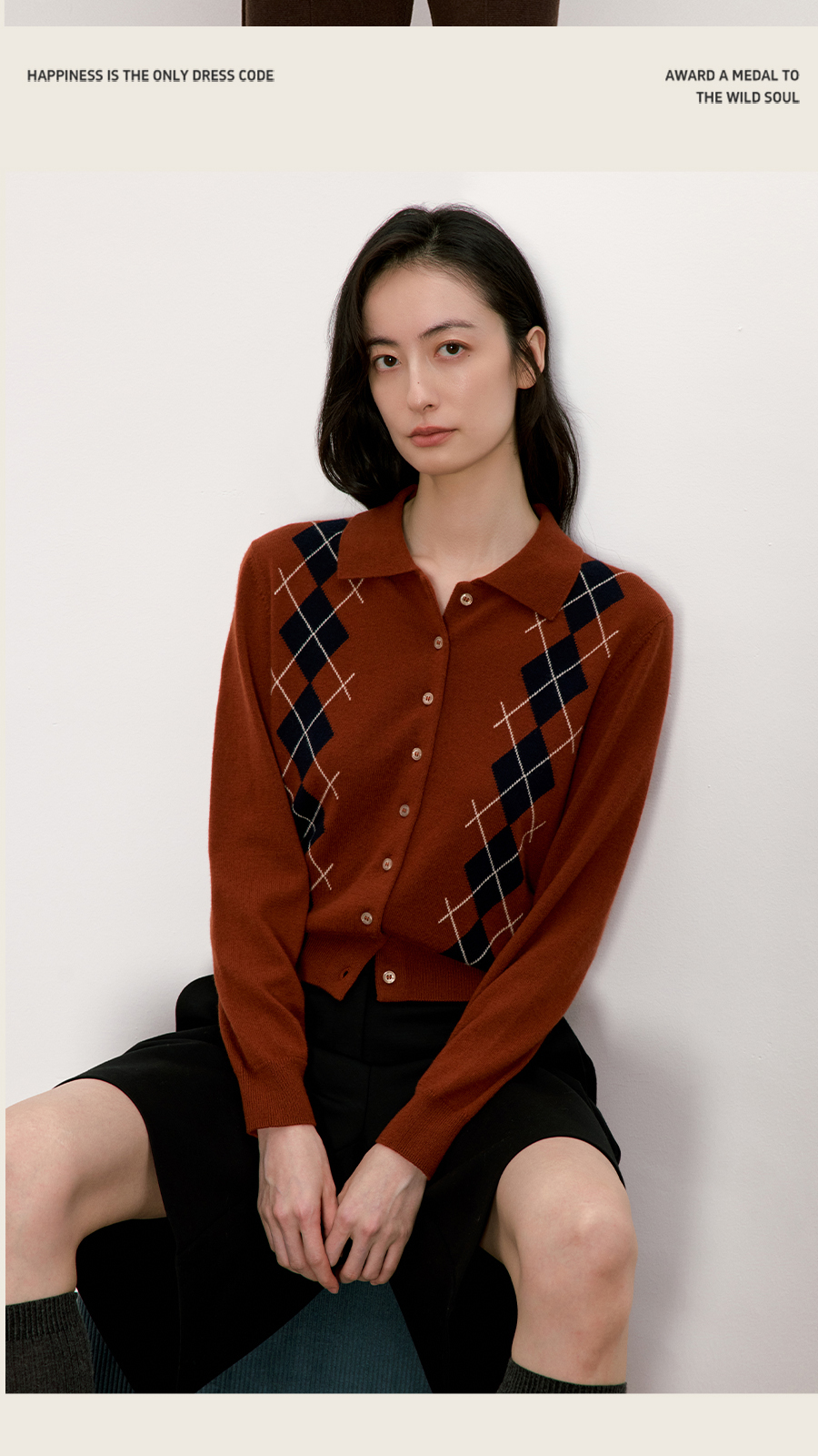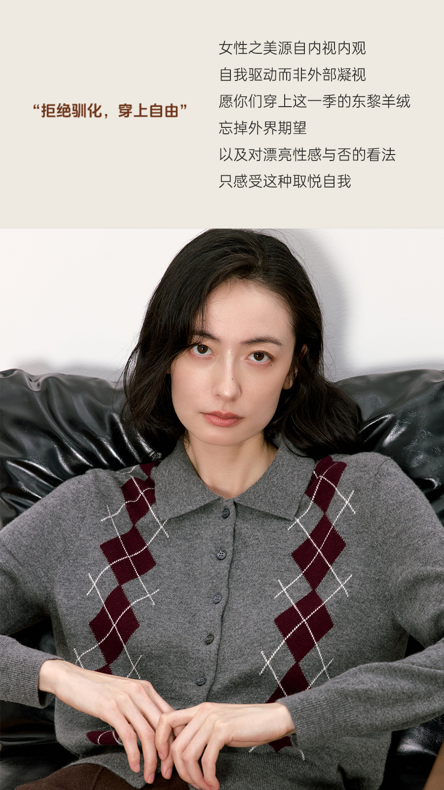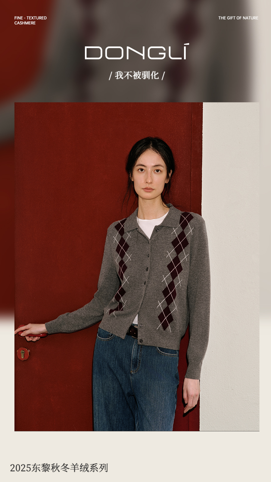 东黎 • 我不被驯化 山羊绒女士秋季学院风菱形格套衫 5160