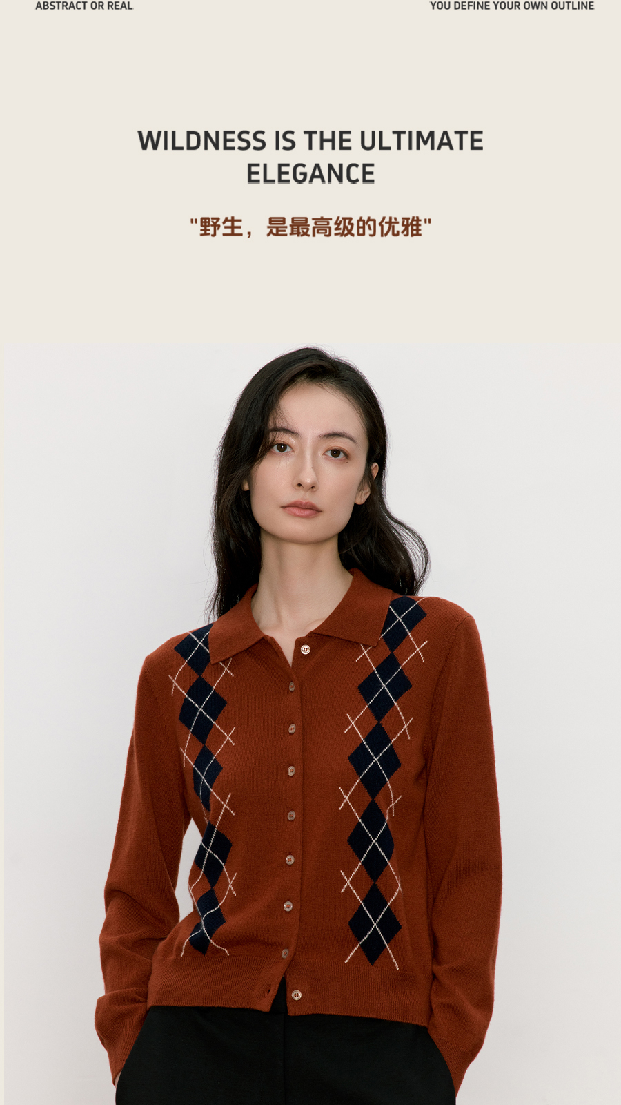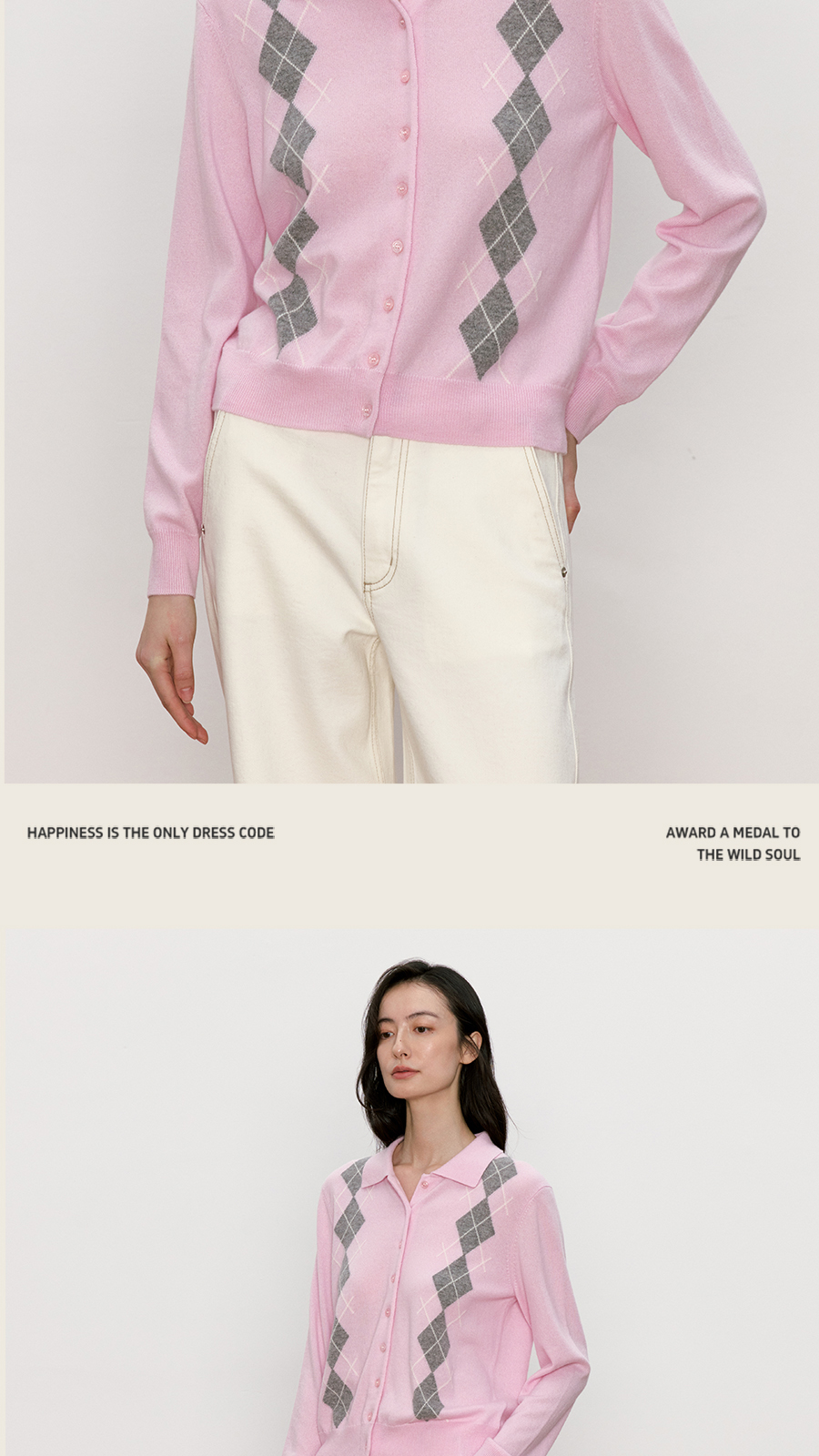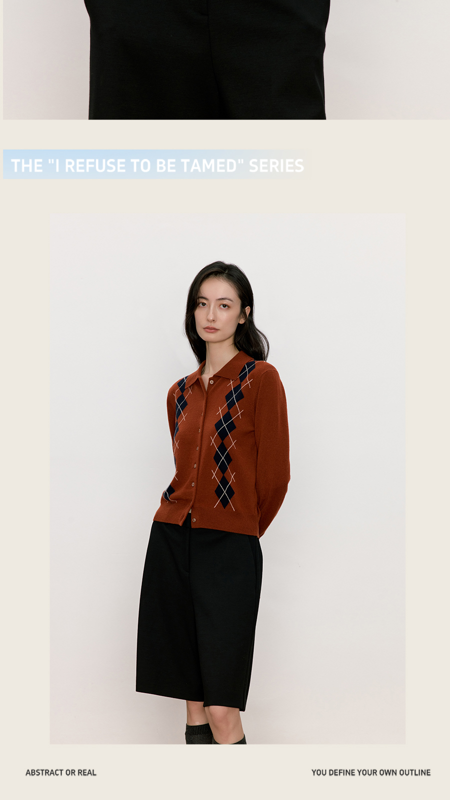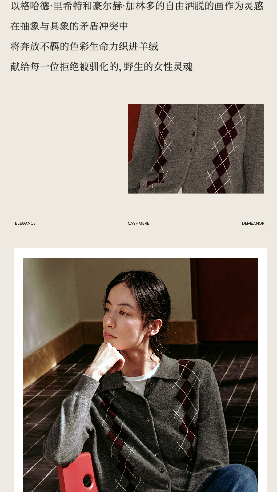 东黎 • 我不被驯化 山羊绒女士秋季学院风菱形格套衫 5160