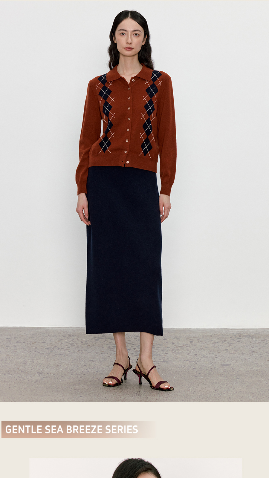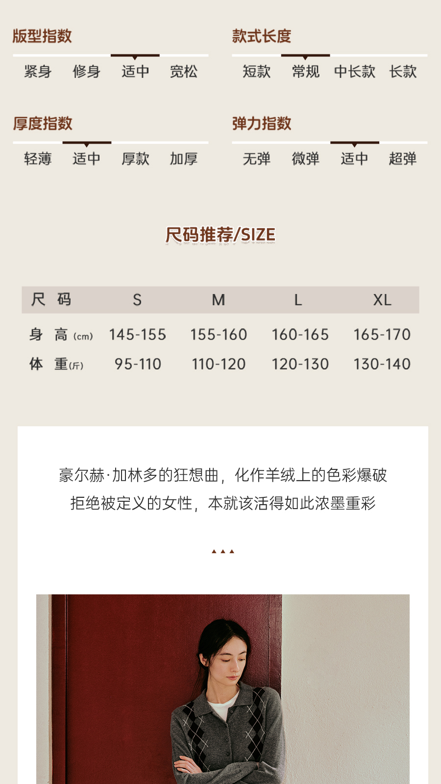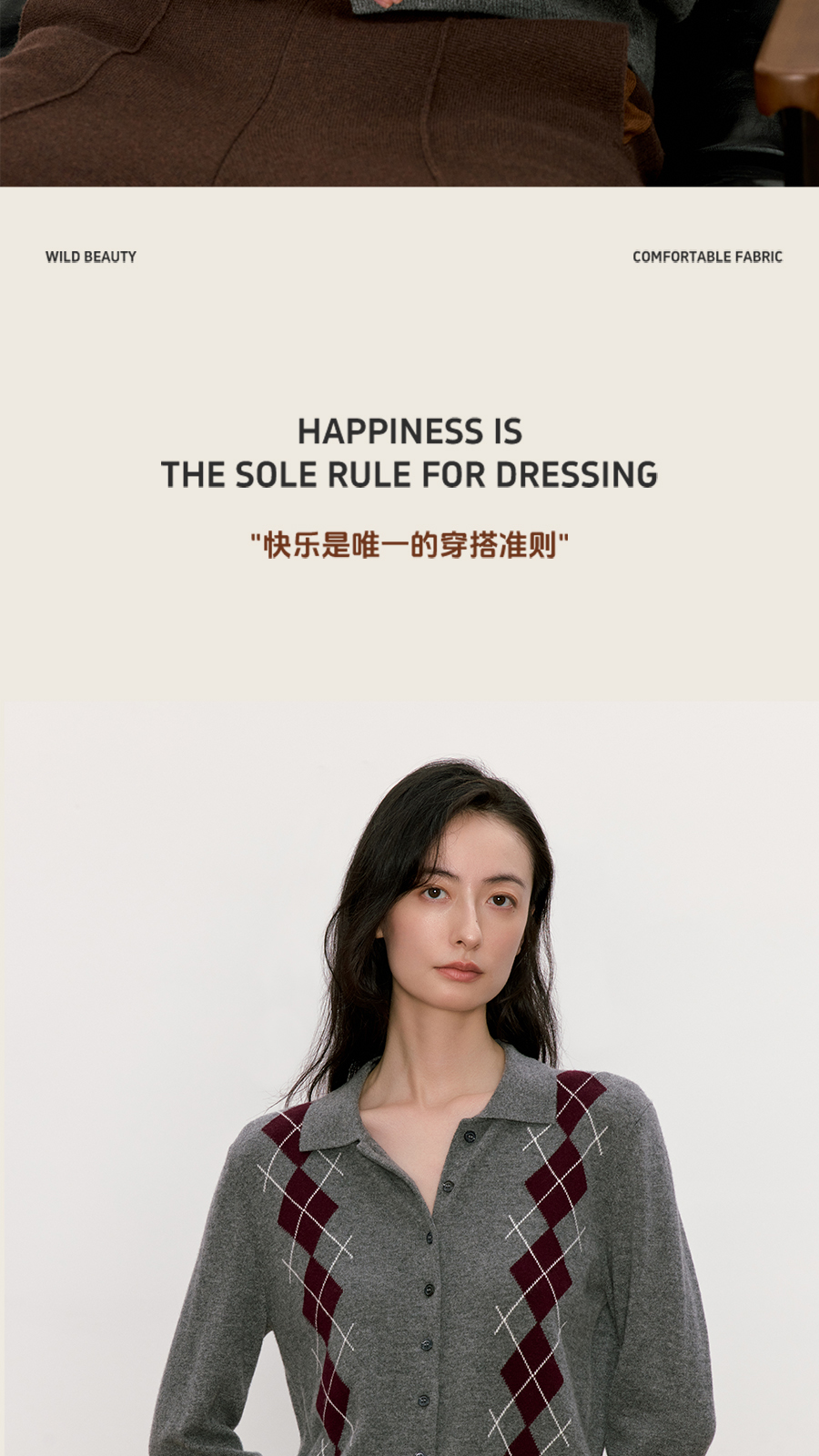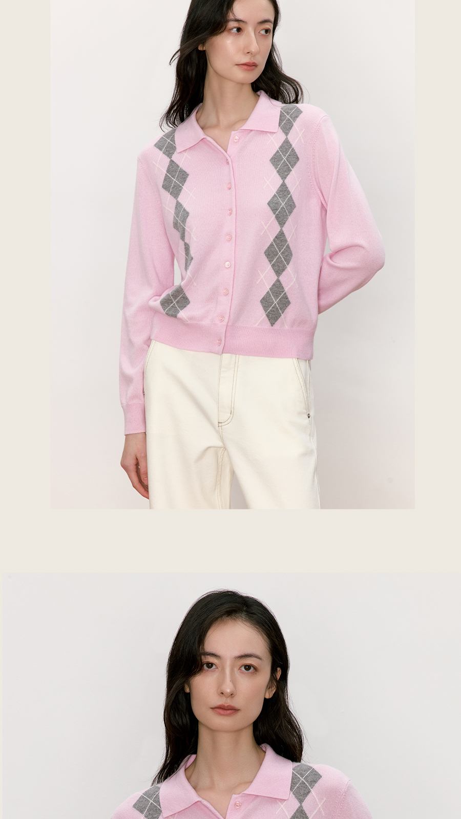 东黎 • 我不被驯化 山羊绒女士秋季学院风菱形格套衫 5160