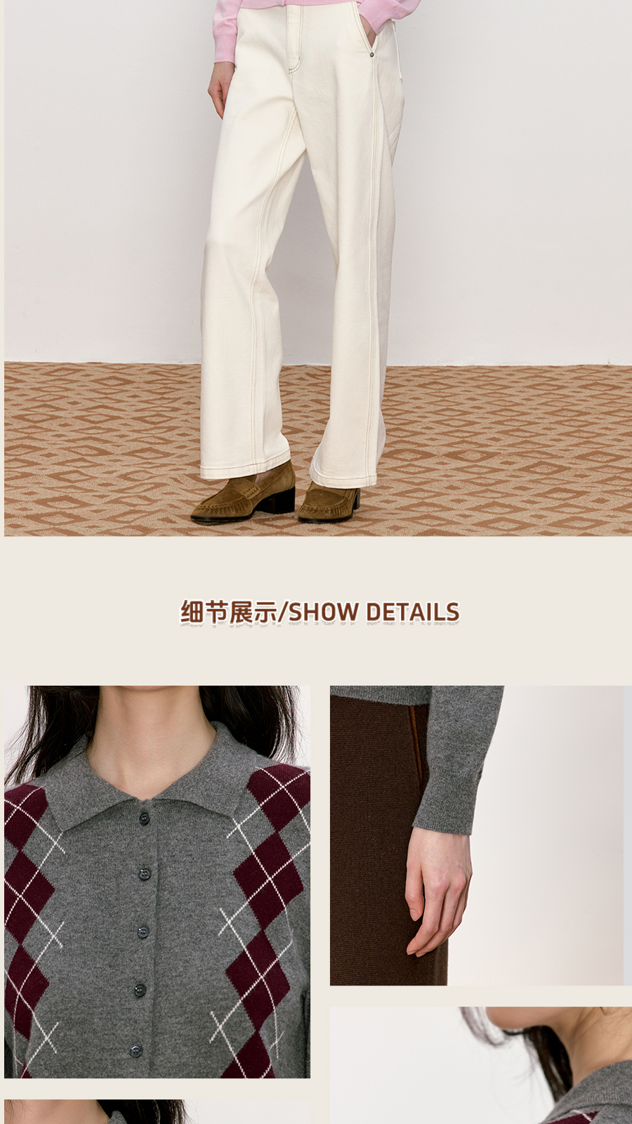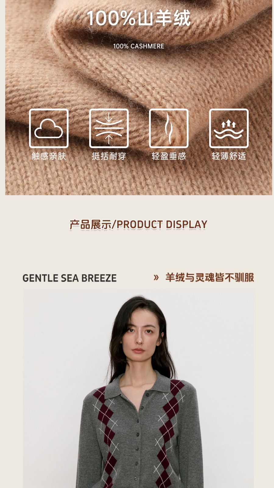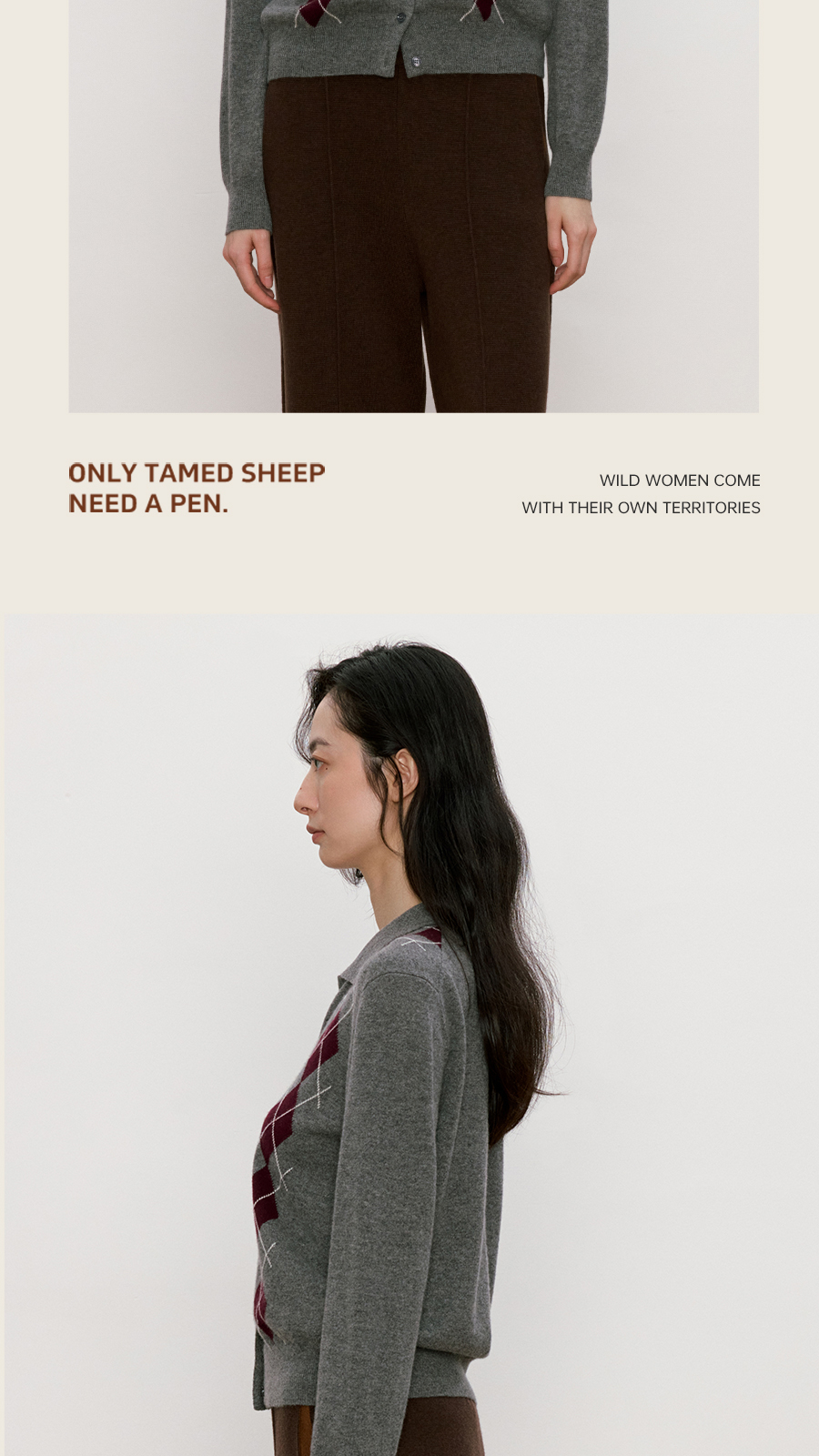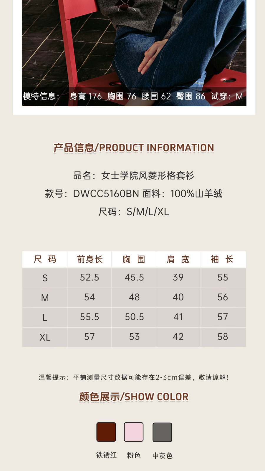 东黎 • 我不被驯化 山羊绒女士秋季学院风菱形格套衫 5160