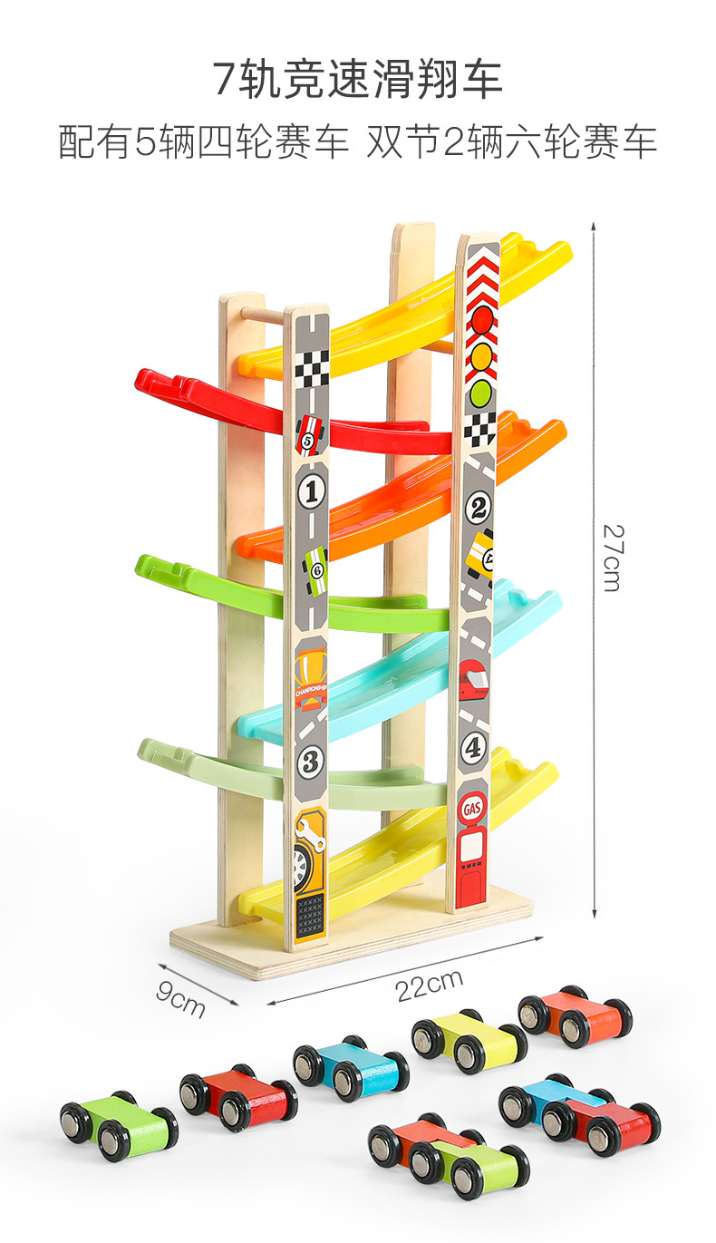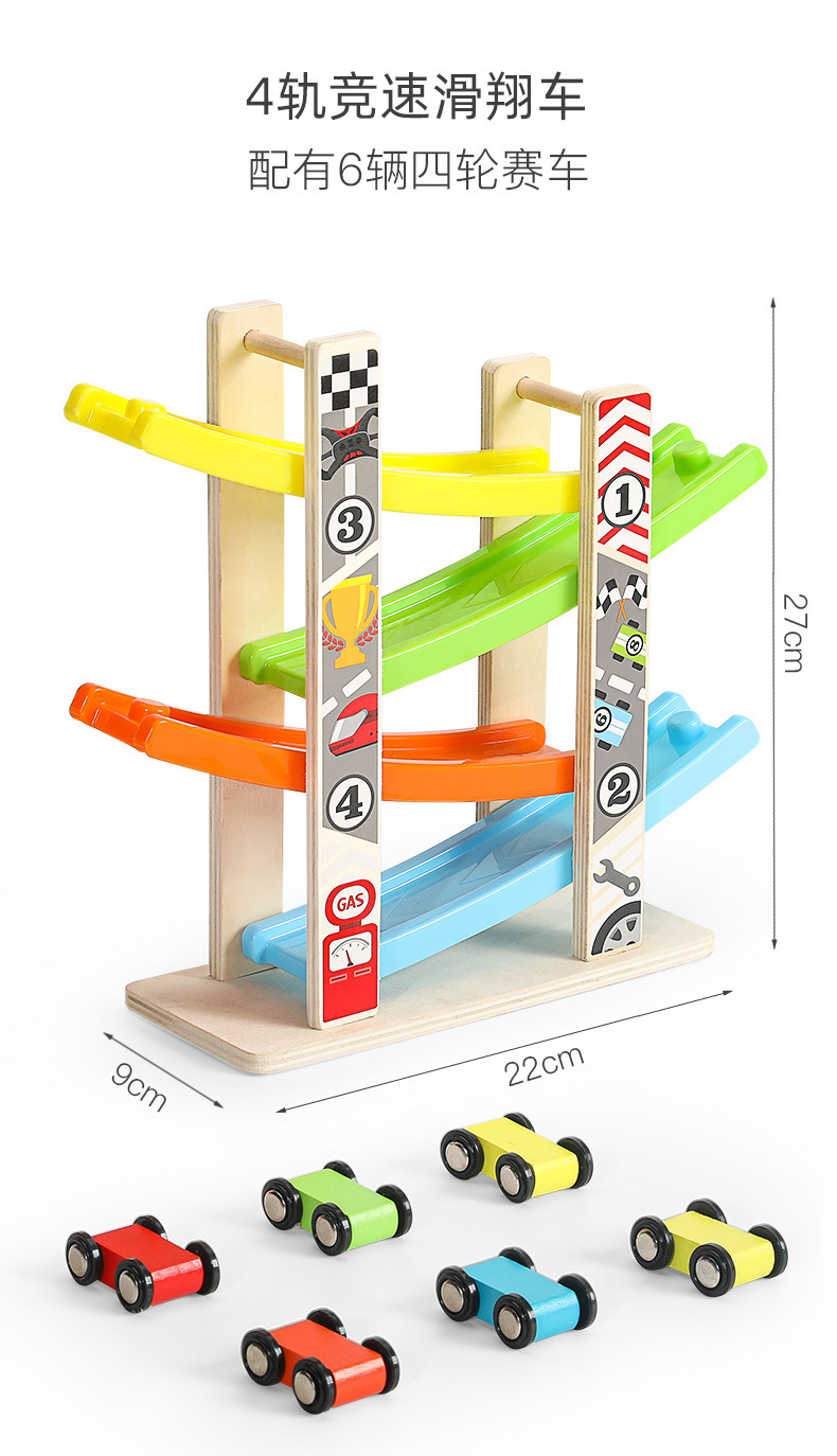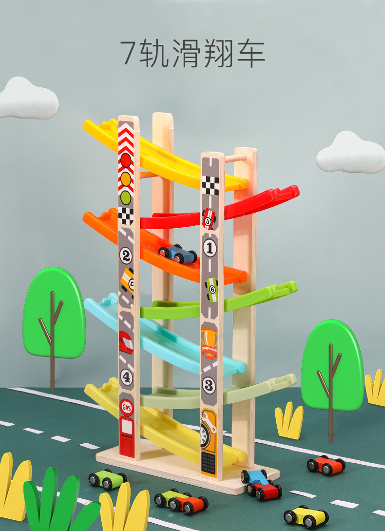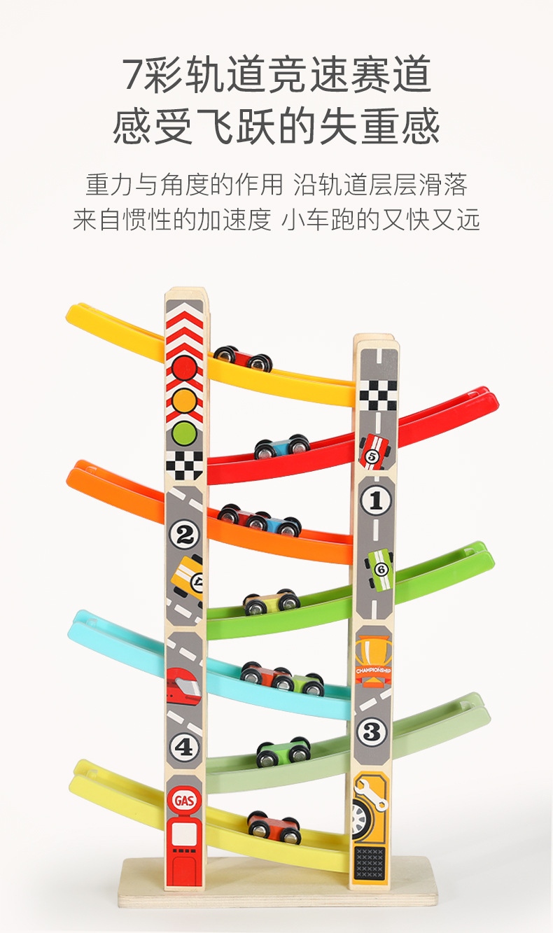 婴幼儿益智早教宝宝玩具0-3儿童多层木质拼装滑行轨道车