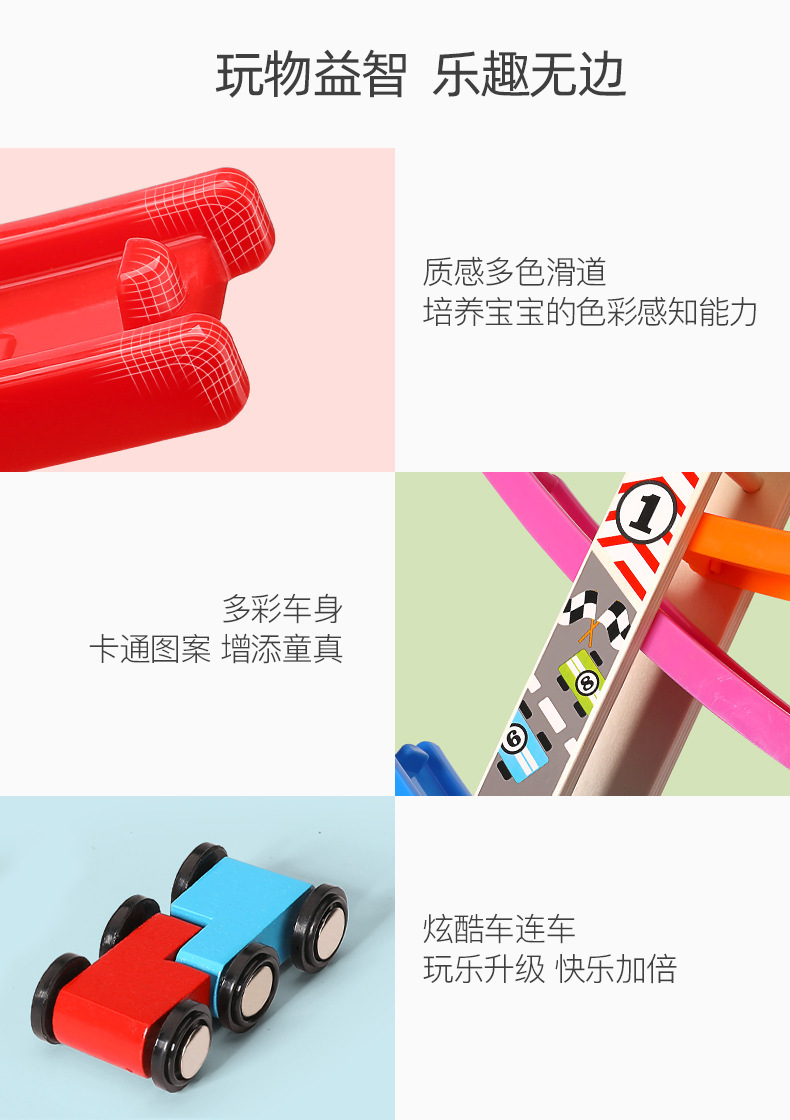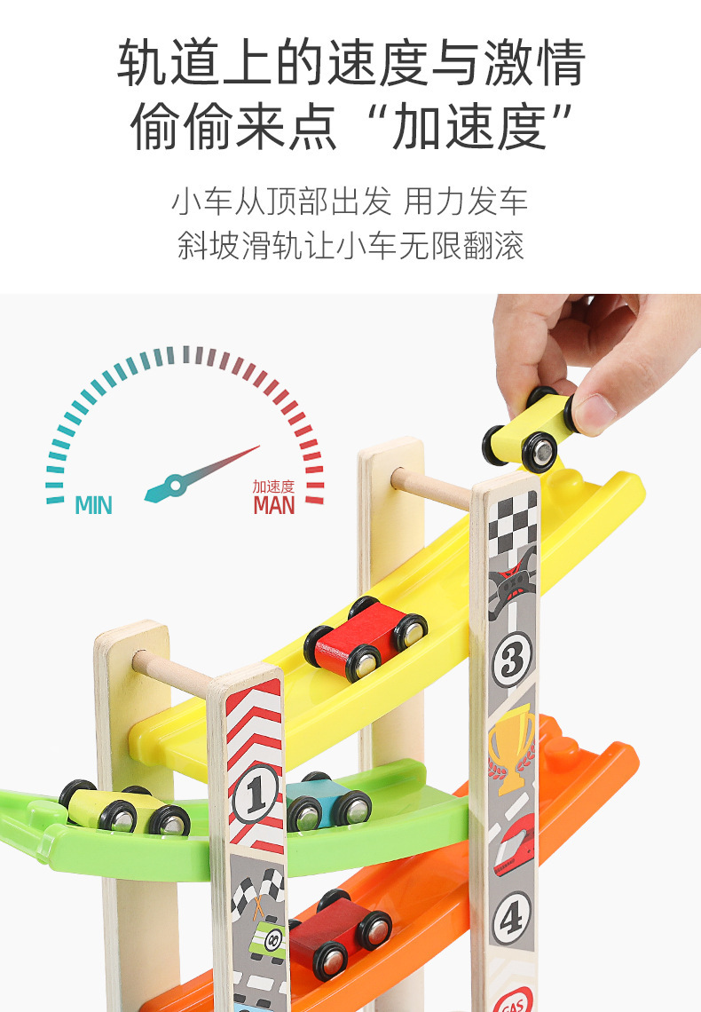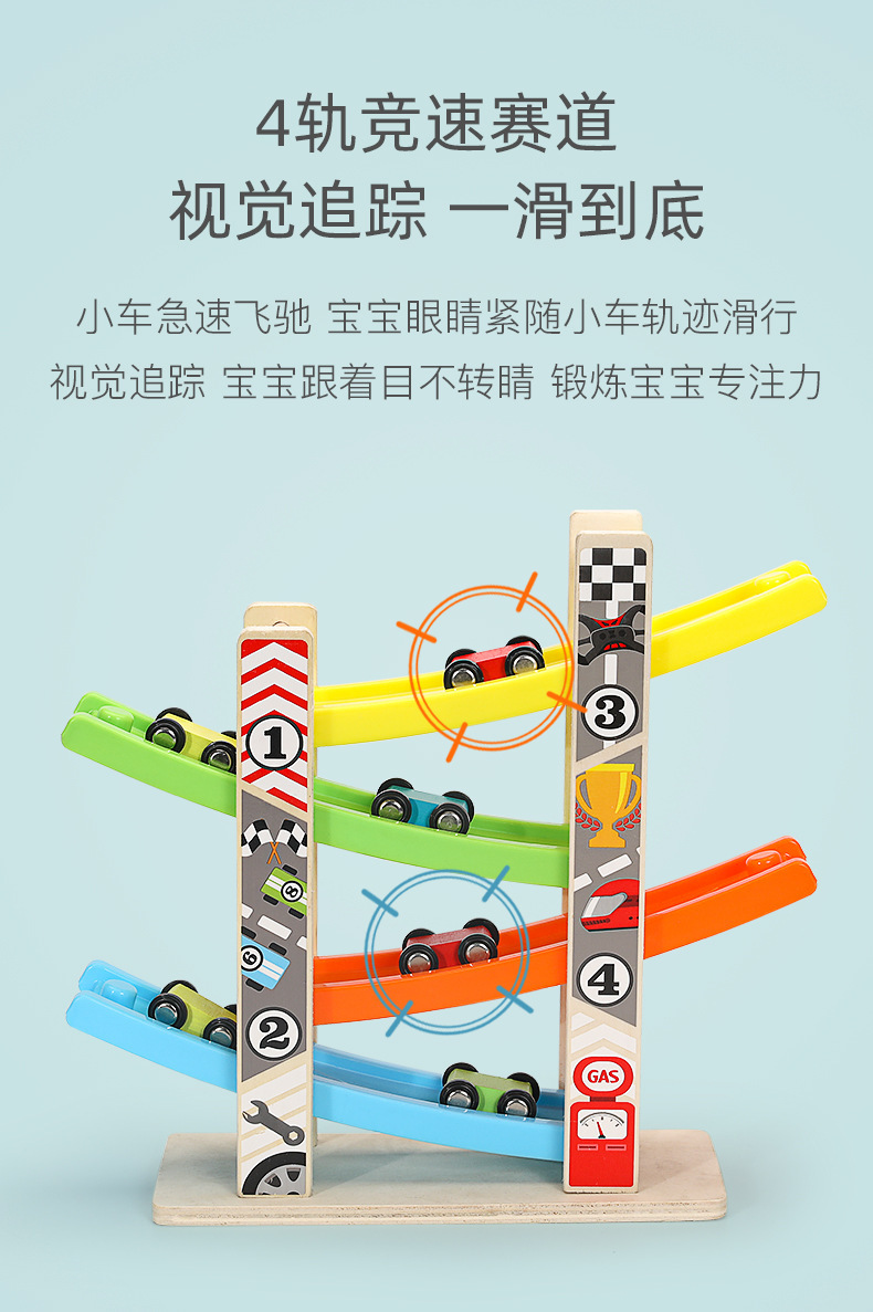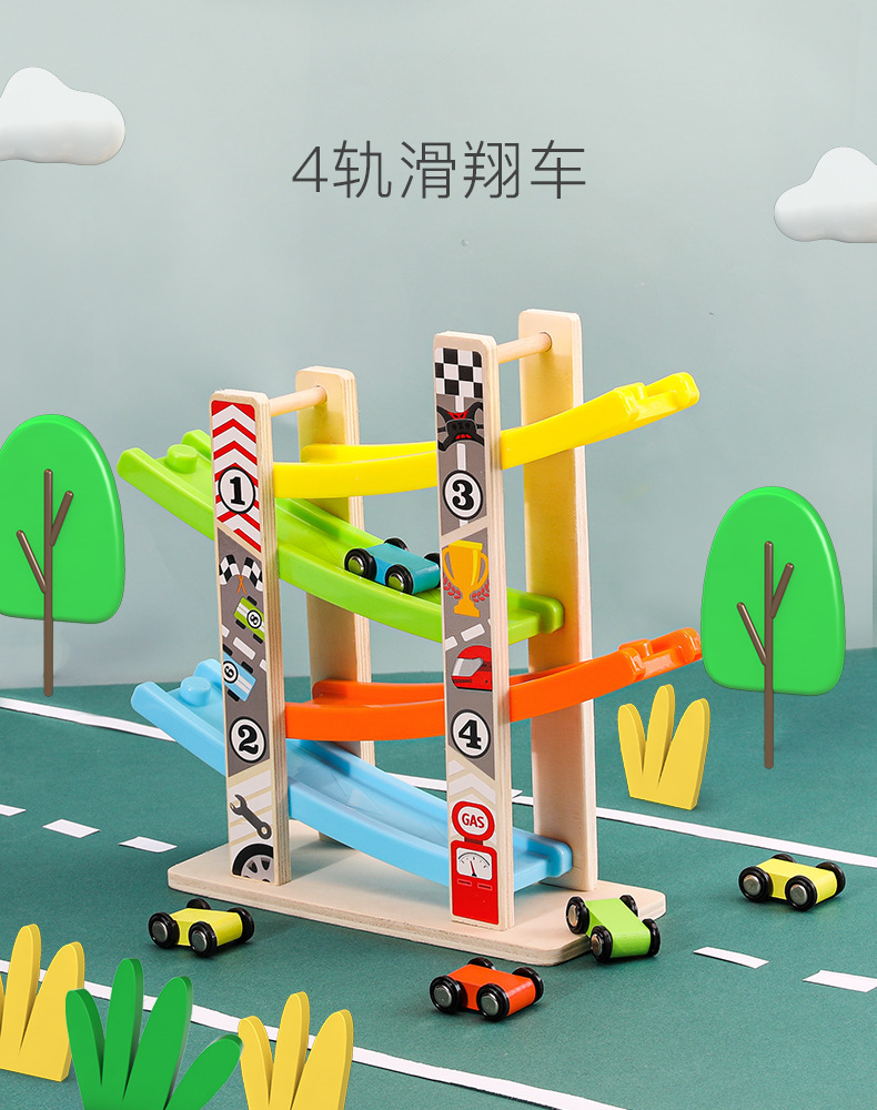 婴幼儿益智早教宝宝玩具0-3儿童多层木质拼装滑行轨道车