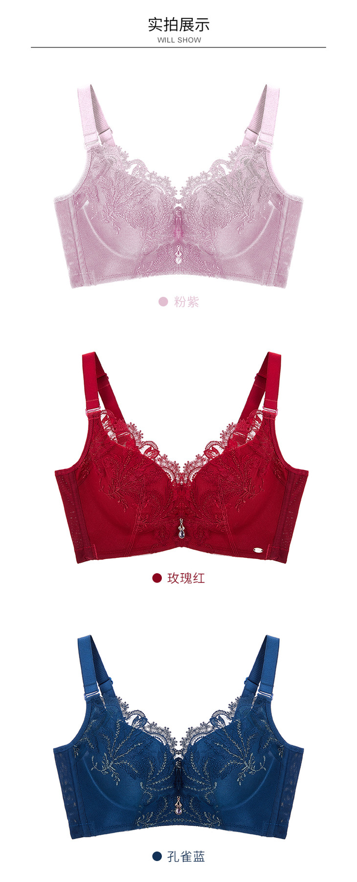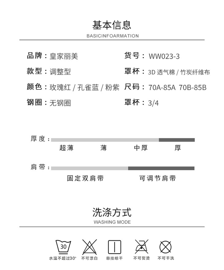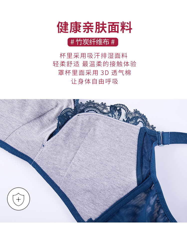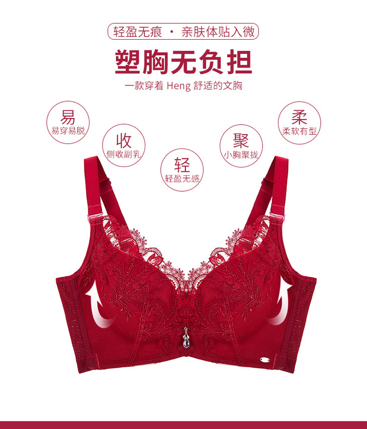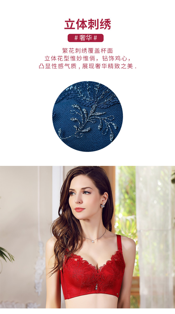 皇家丽美复古立体刺绣上托聚拢小胸显大4排扣美背舒适中厚无钢圈调整文胸WW023-3