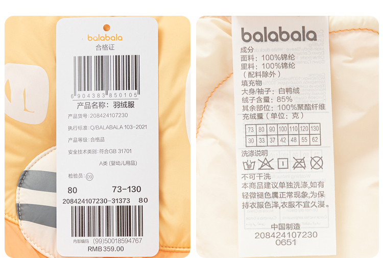 巴拉巴拉儿童羽绒服女童冬季婴儿轻薄男童宝宝外套新款造型萌★
