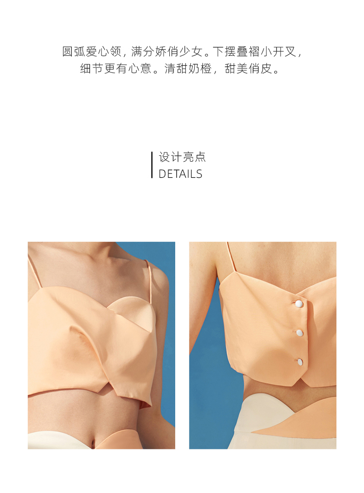 【星碎银河】夏日清凉圆弧爱心领奶橙可爱小吊带/00197A
