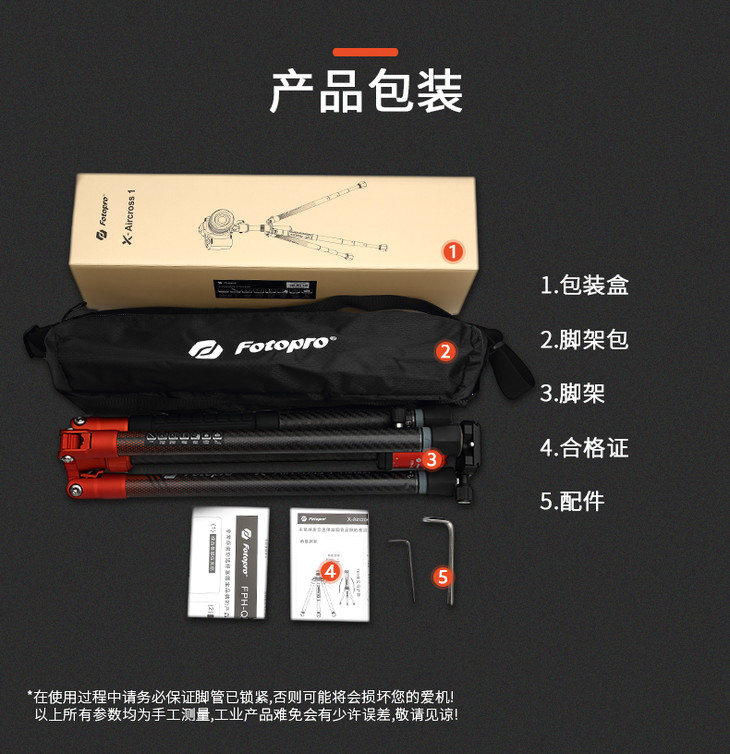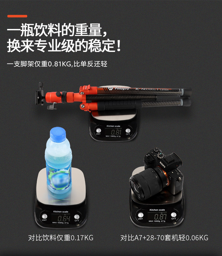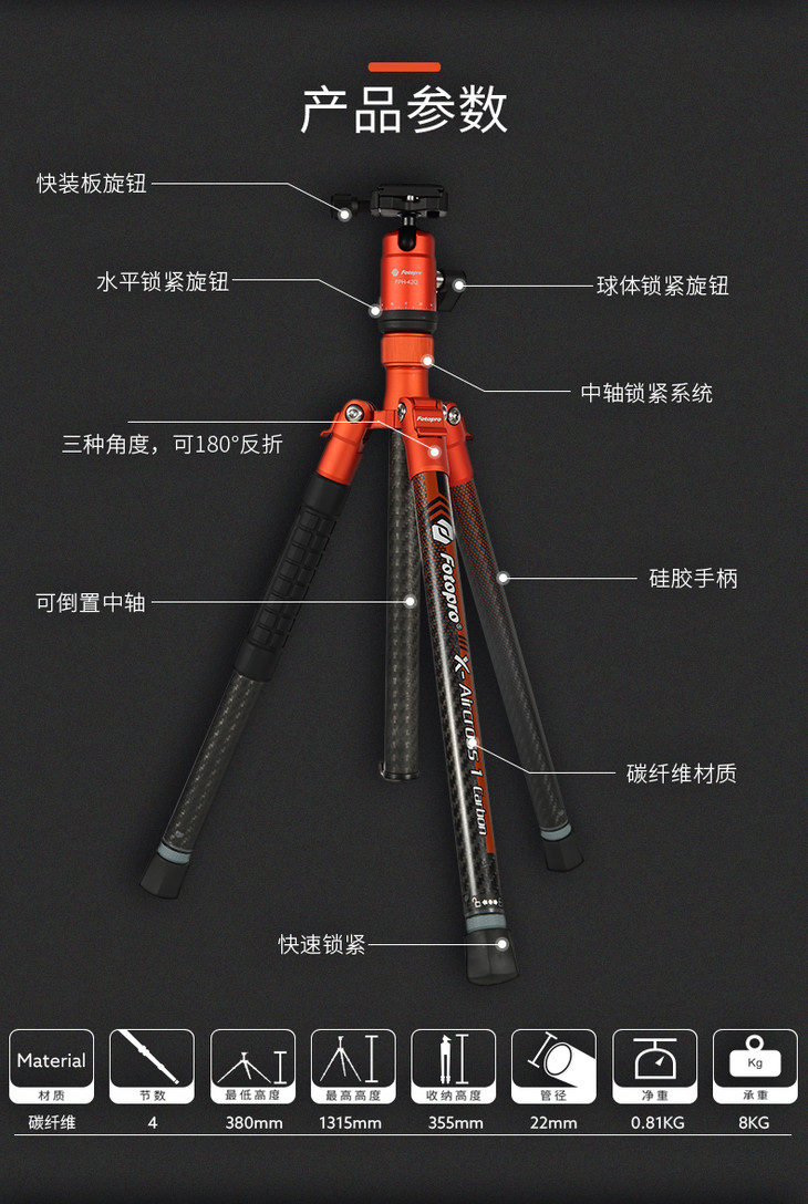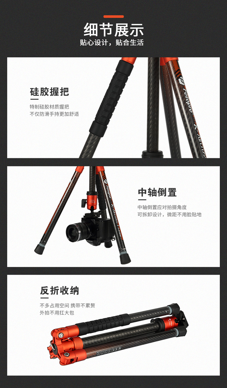 富图宝空气1号碳纤维三脚架单反微单相机专业摄影超轻便携旅行三角架手机拍照自拍云台套装通用fotopro支架
