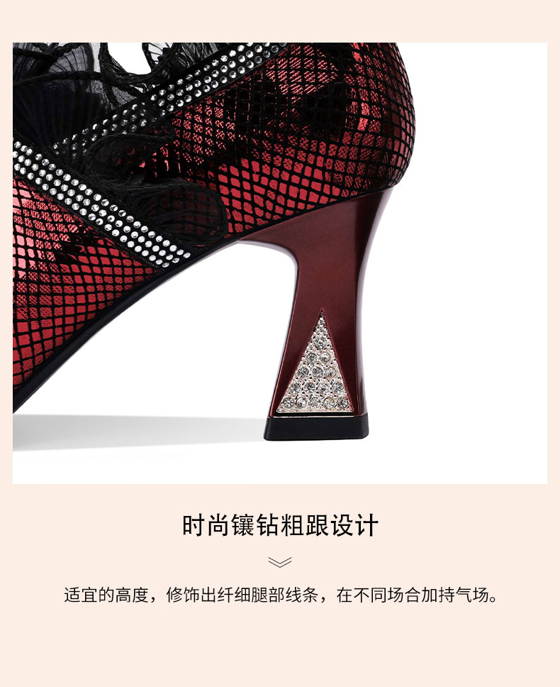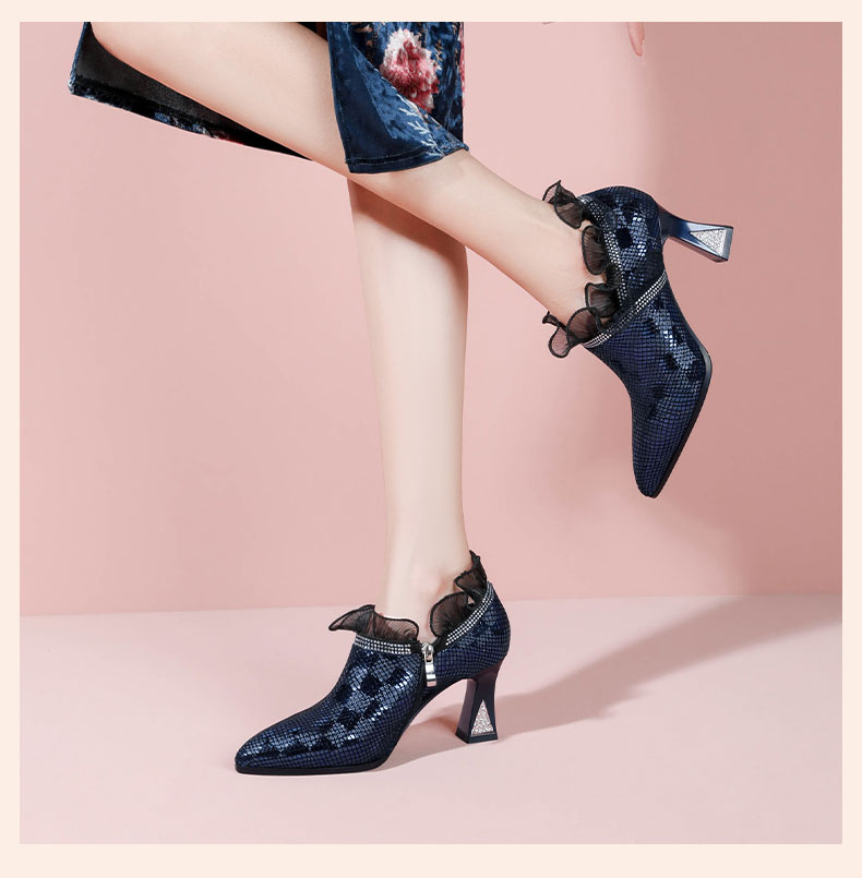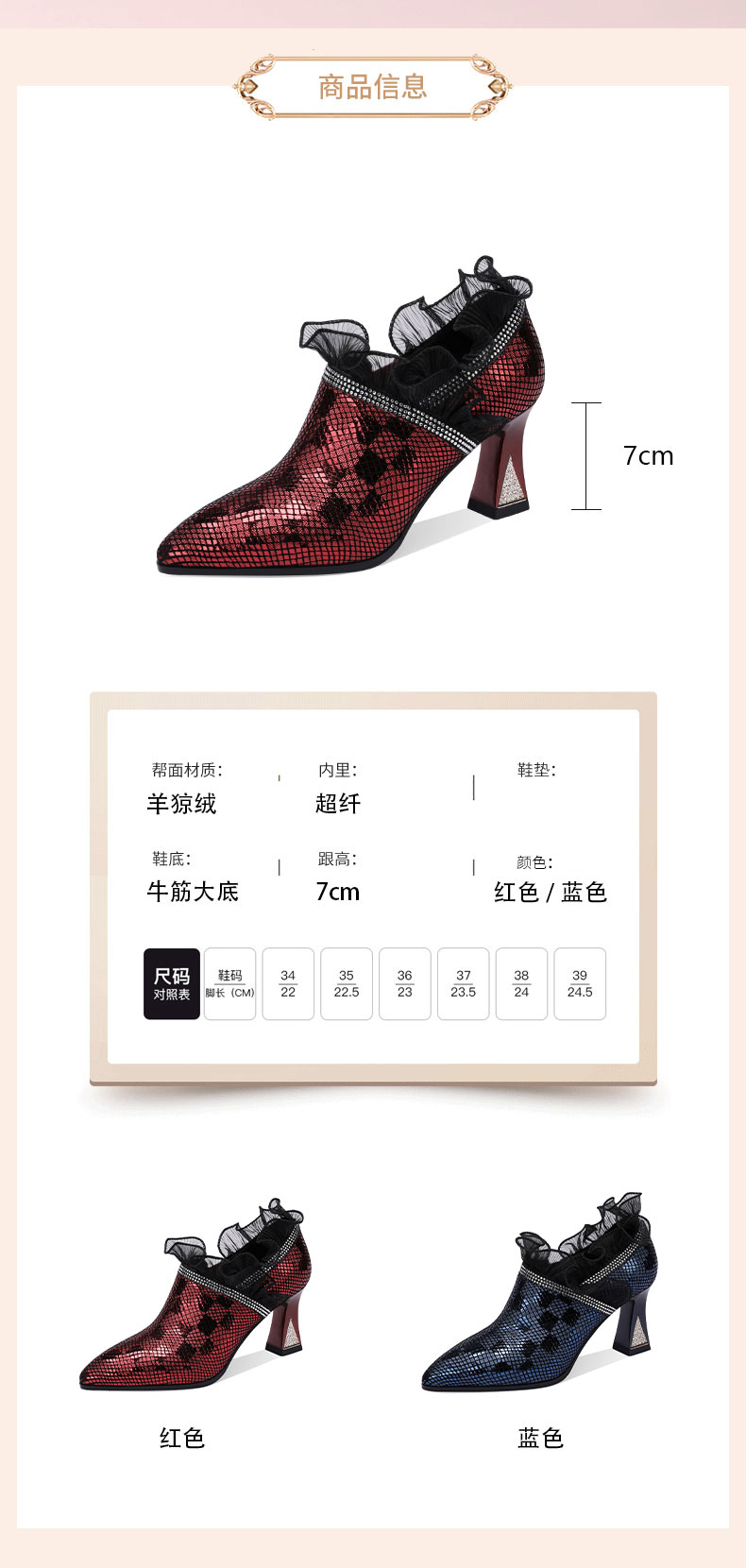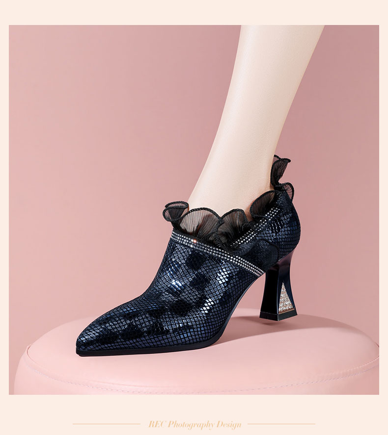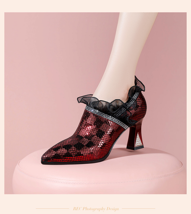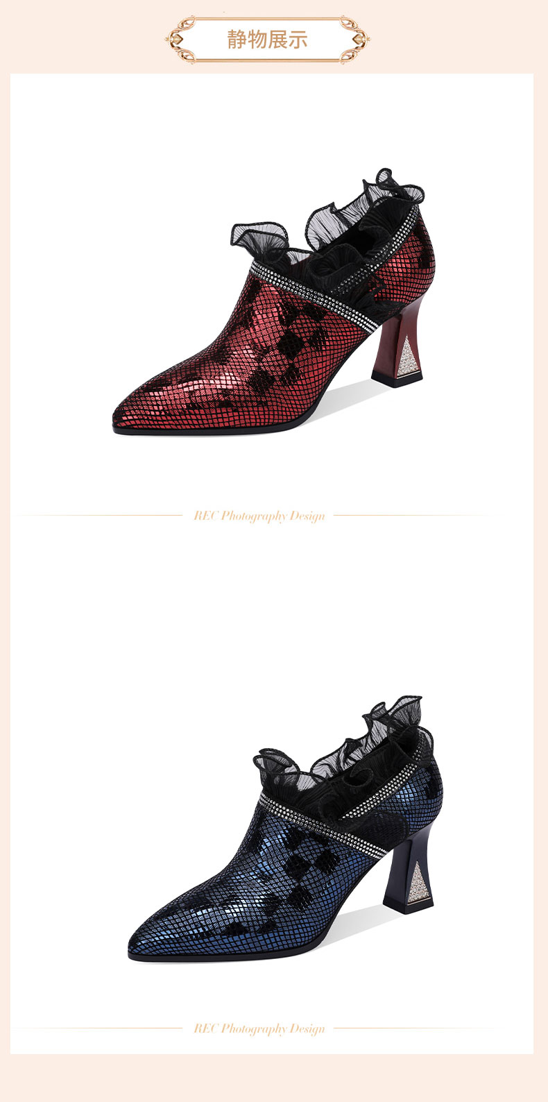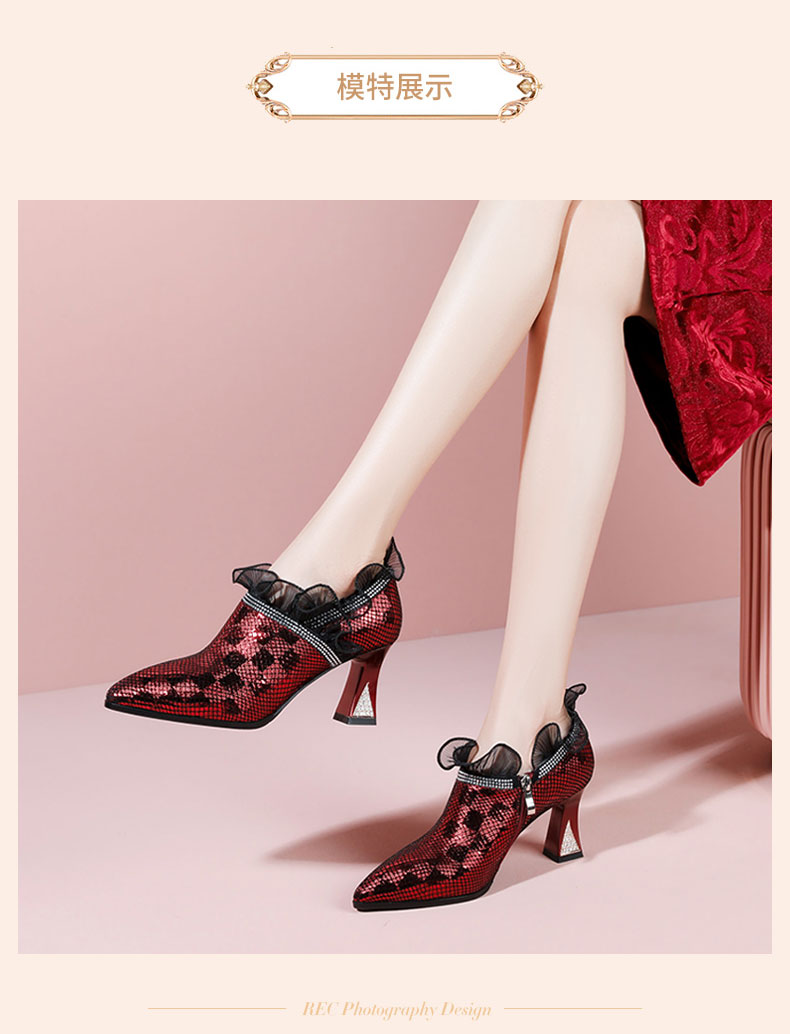 日常百搭,尖头花边格纹高跟单鞋YSML-A009-K331