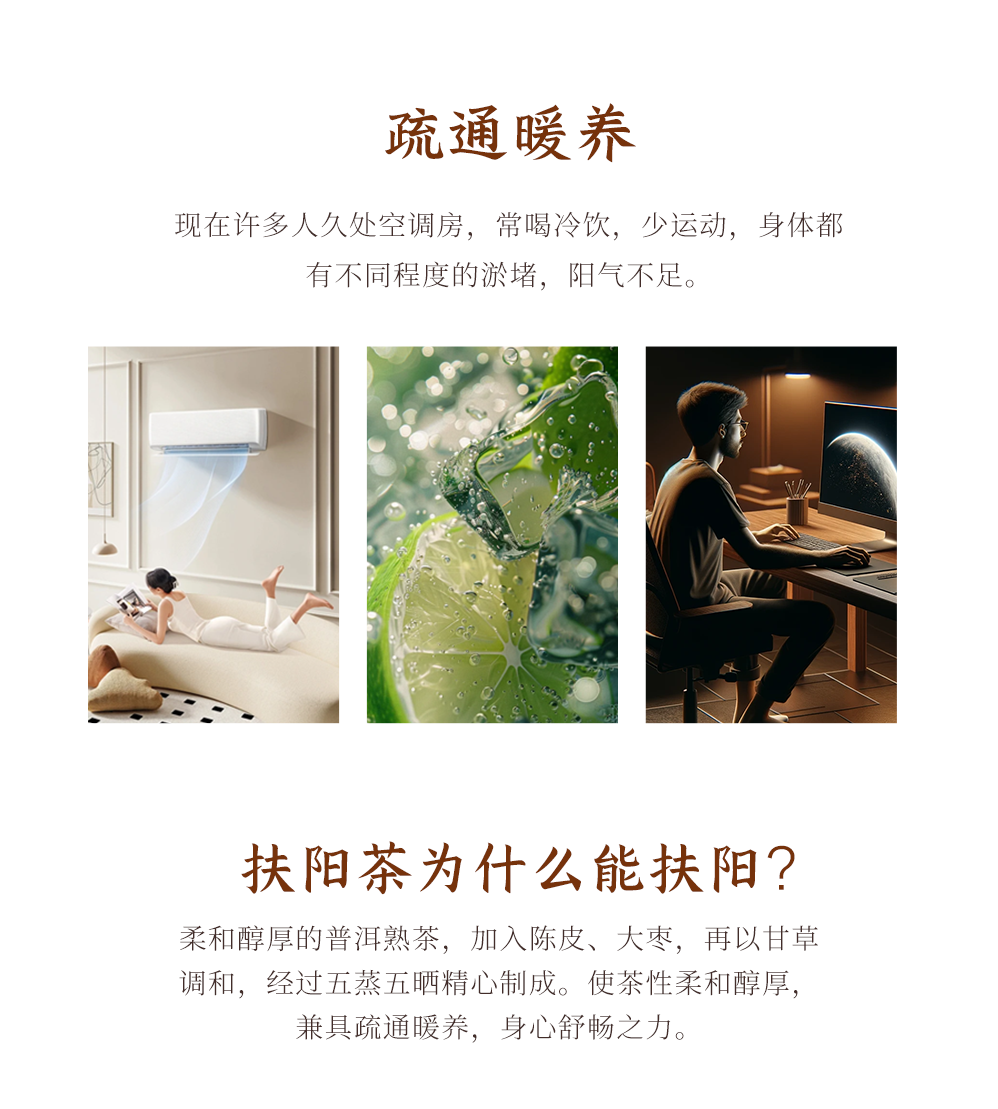 扶阳茶 五蒸五晒云南临沧大叶种茶青佐陈皮红茶甘草调和 茶汤柔滑甜 温通疏顺身体 适合体弱提升阳气送礼自用 普洱熟茶扶阳茶