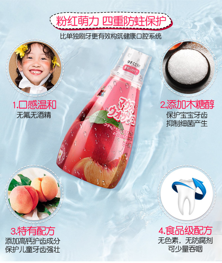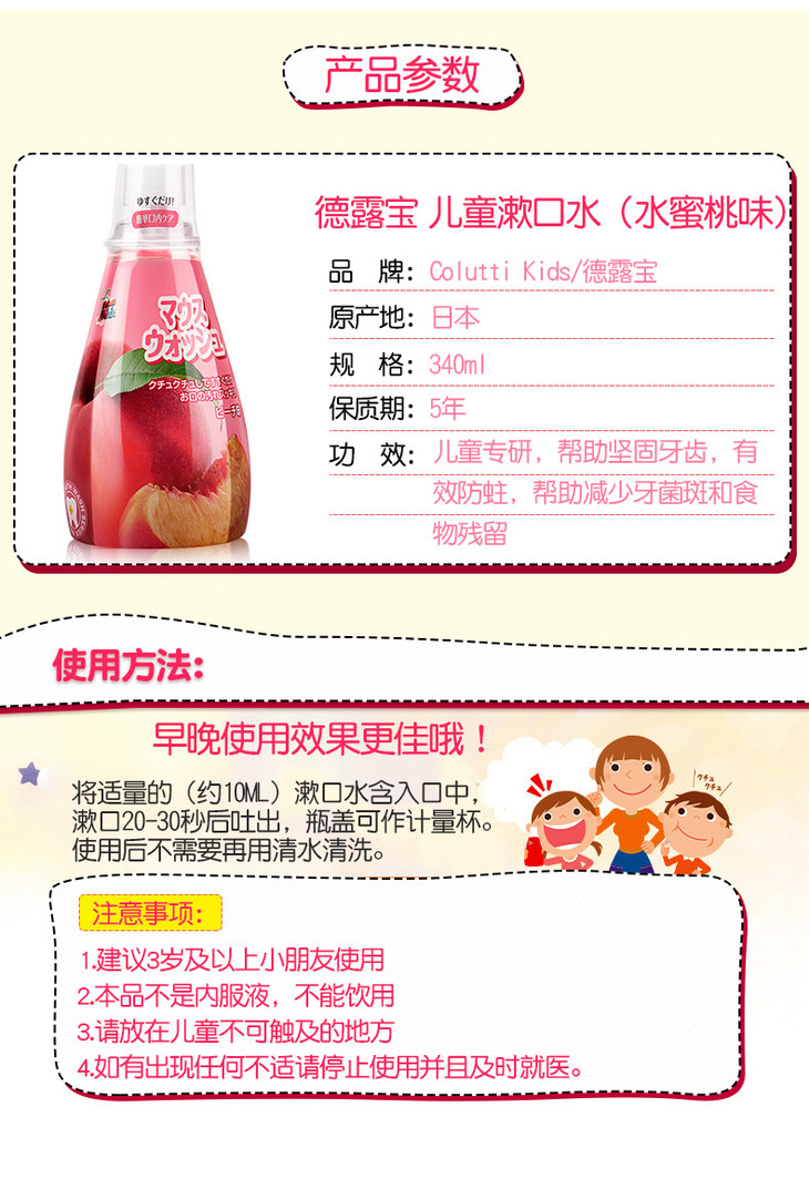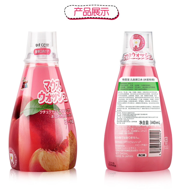 【一般贸易】日本德露宝儿童漱口水(水蜜桃味) 340mL/瓶