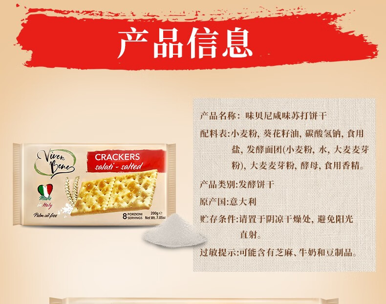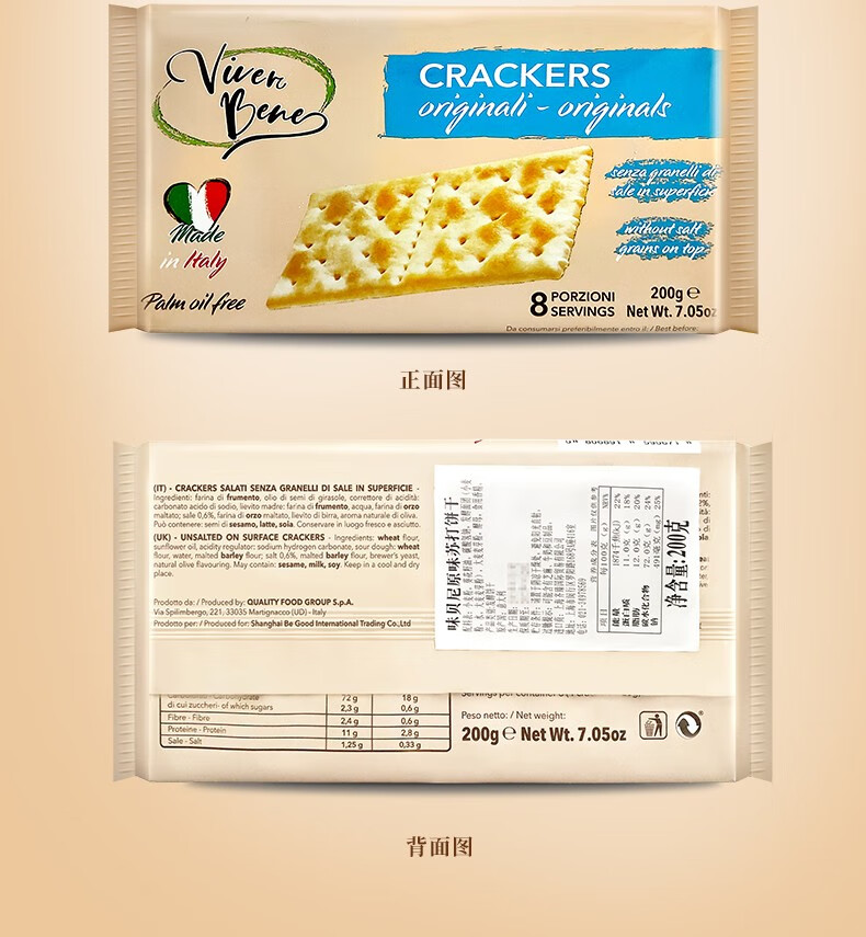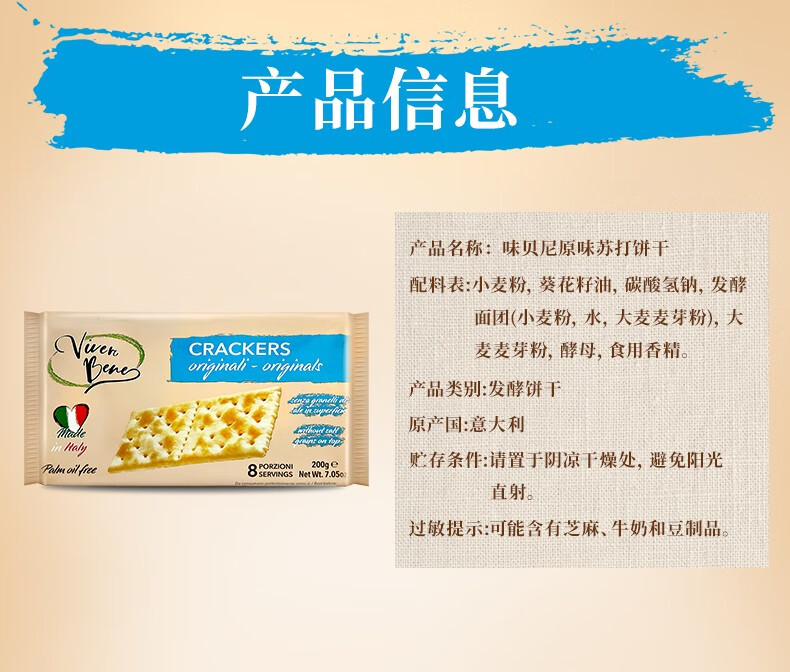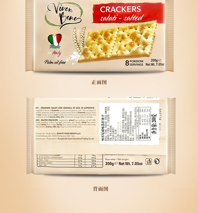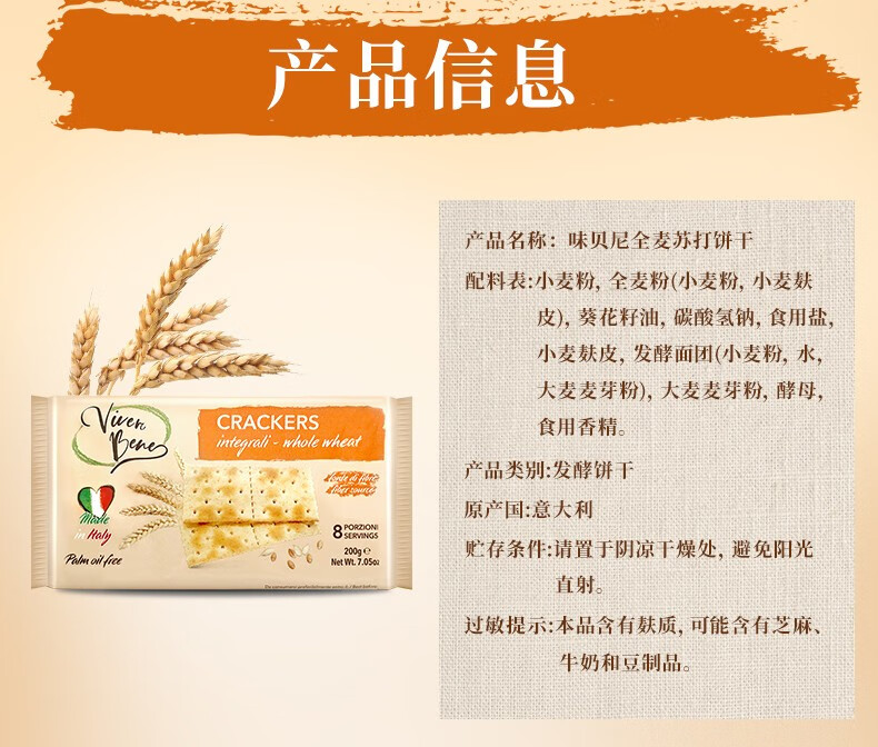 意大利味贝尼苏打饼干系列200g 原味/全麦/咸味 层次分明一口酥脆 151148/151149/151150