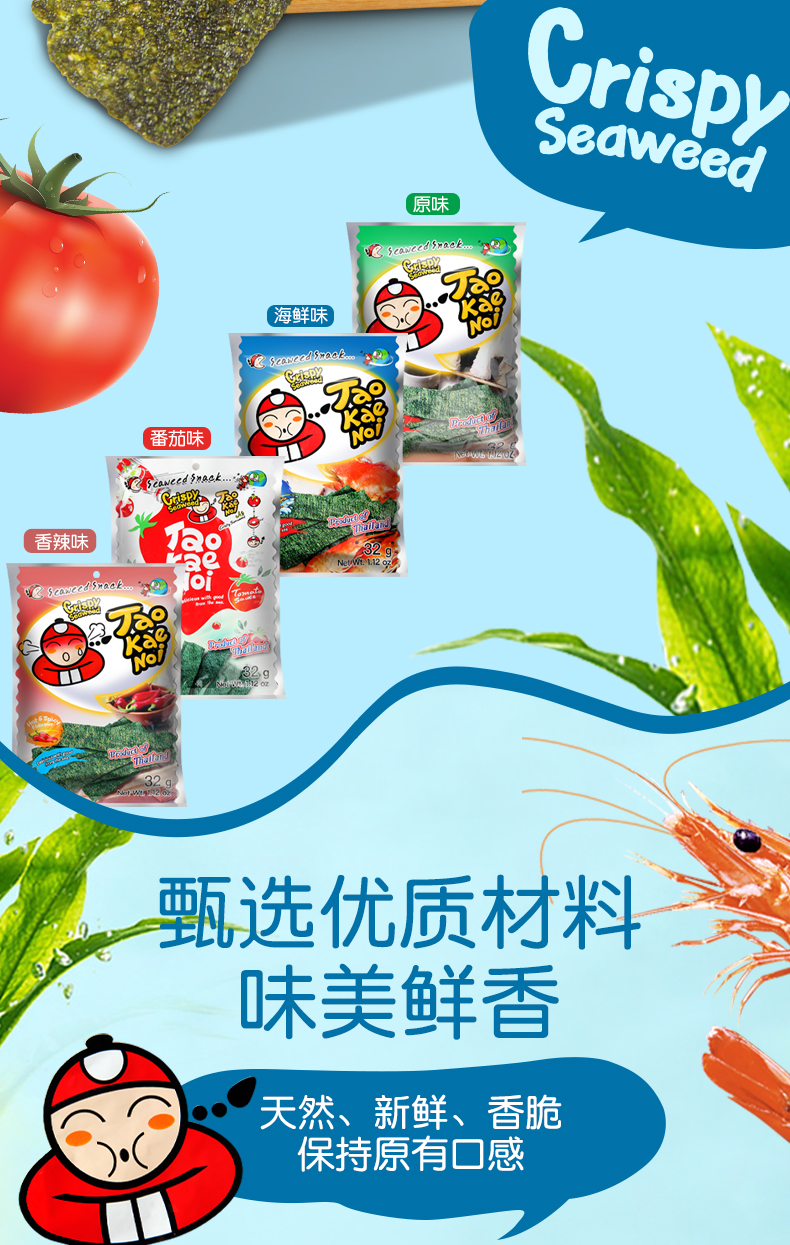 泰国老板仔番茄味/原味/海鲜味海苔32g 人气网红零食厚片海苔香脆可口 050779/052354/052138