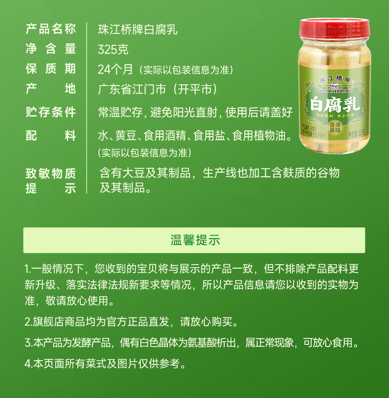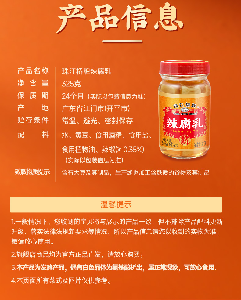珠江桥牌 白腐乳325g/辣腐乳325g