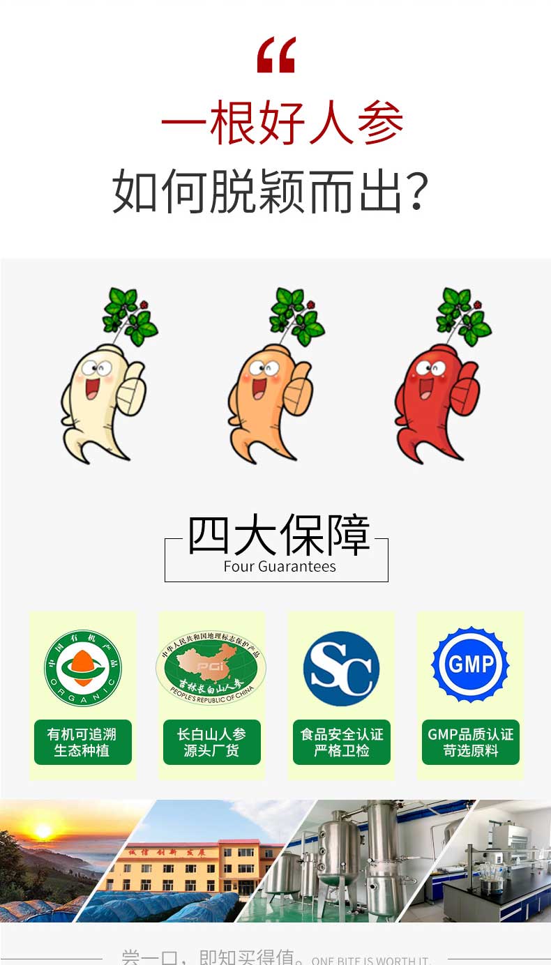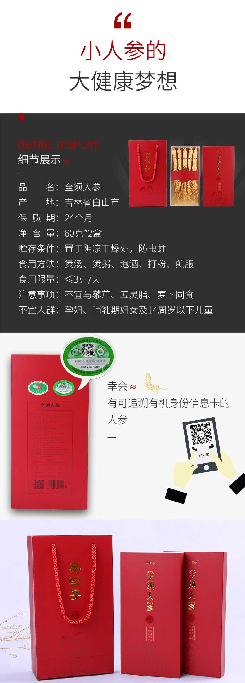 奔日子有机干人参全须人参60g/盒