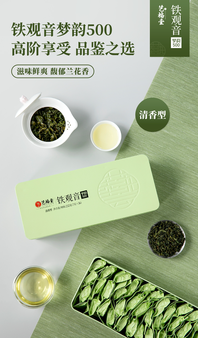 艺福堂 福建安溪原产铁观音 梦韵500 特级清香型 兰花香 盒装 小包袋 252g/盒