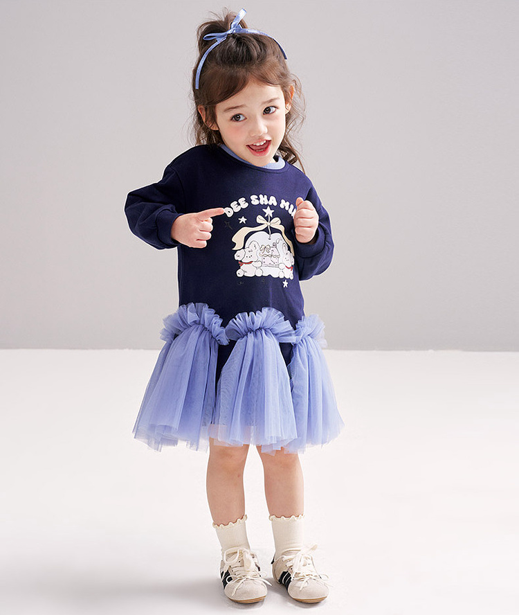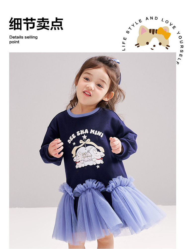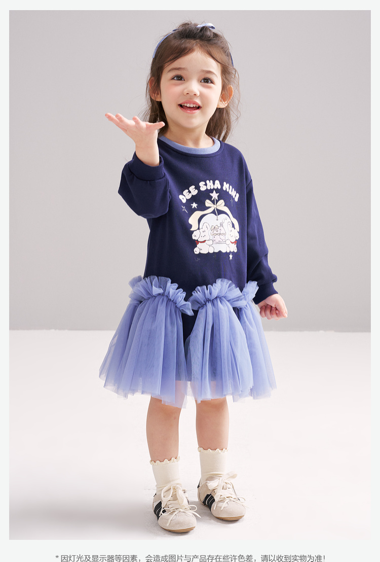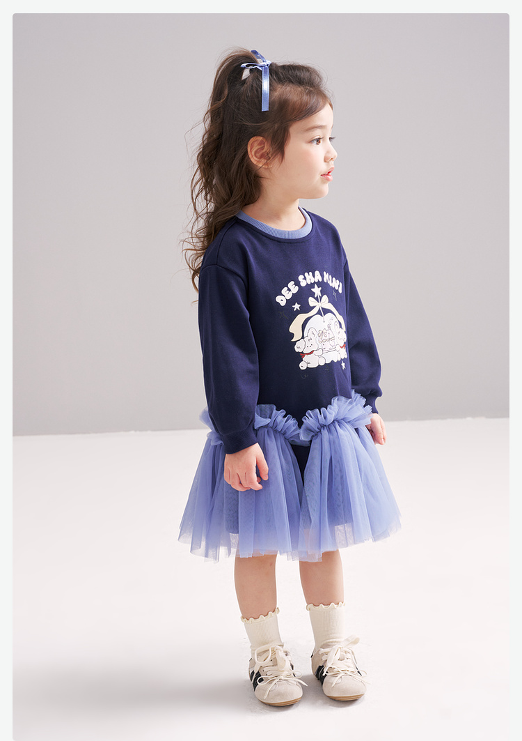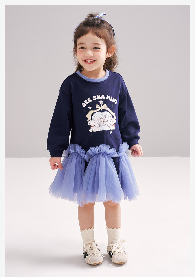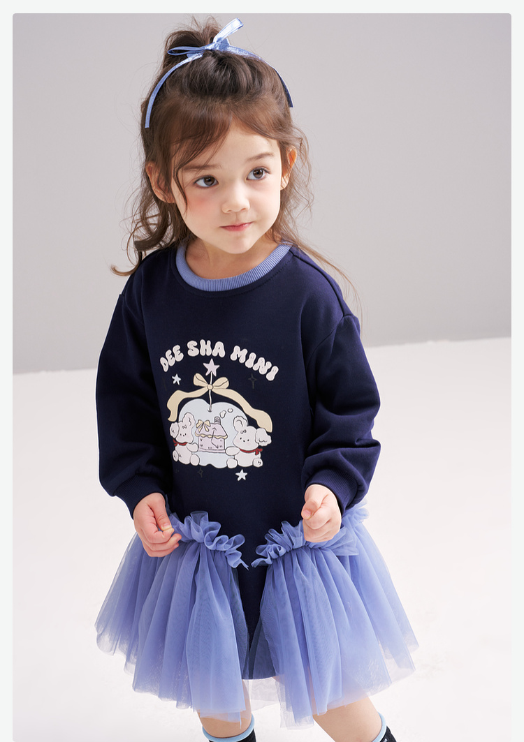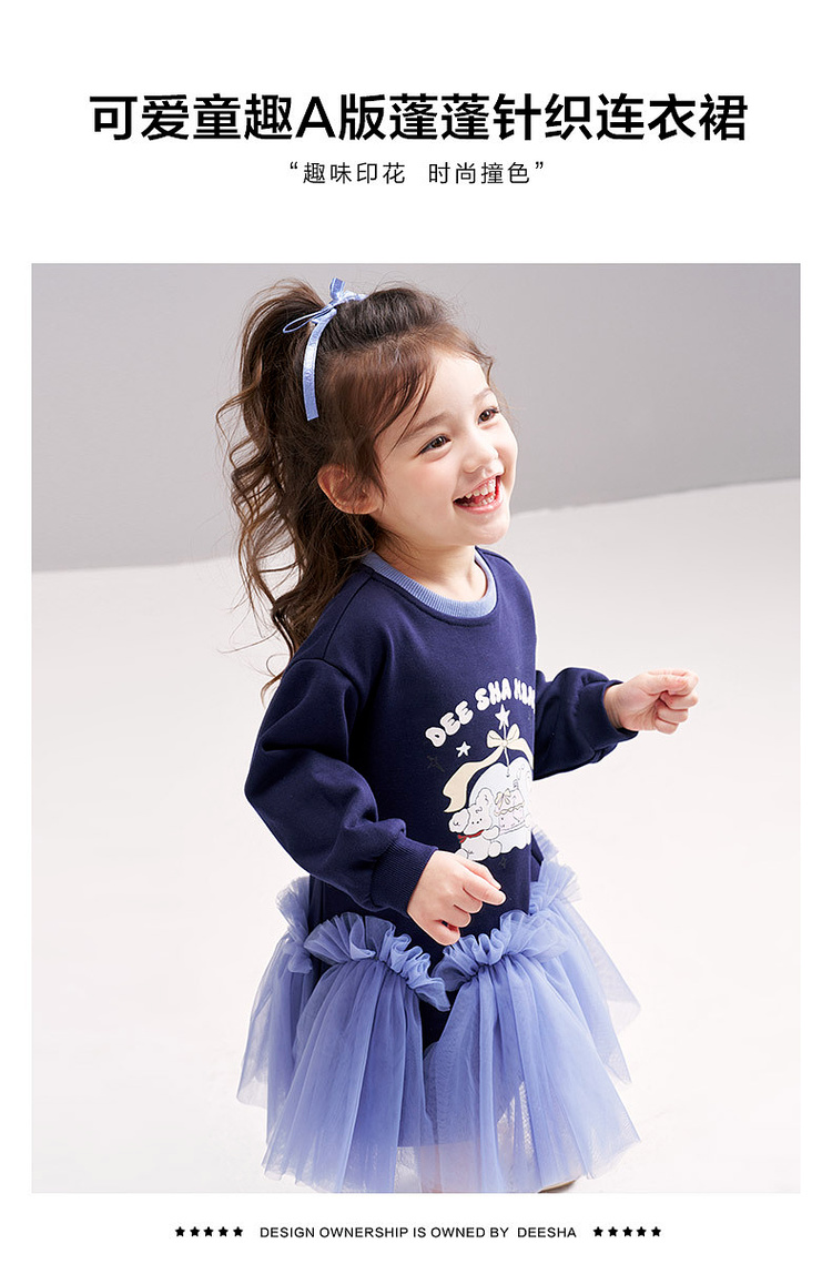 笛莎Deesha 2026春季女童可爱童趣A版蓬蓬针织连衣裙