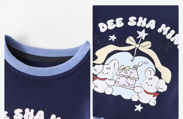 笛莎/Deesha 松饼熊2026年夏季新款童装女童时尚学院风海军领短袖T恤