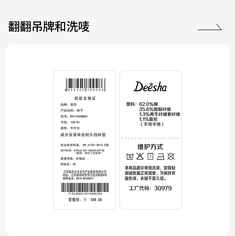 笛莎/Deesha 【云柔亲子系列】2026年春季新款女童牛仔裤亲子儿童弯刀裤