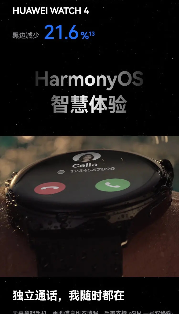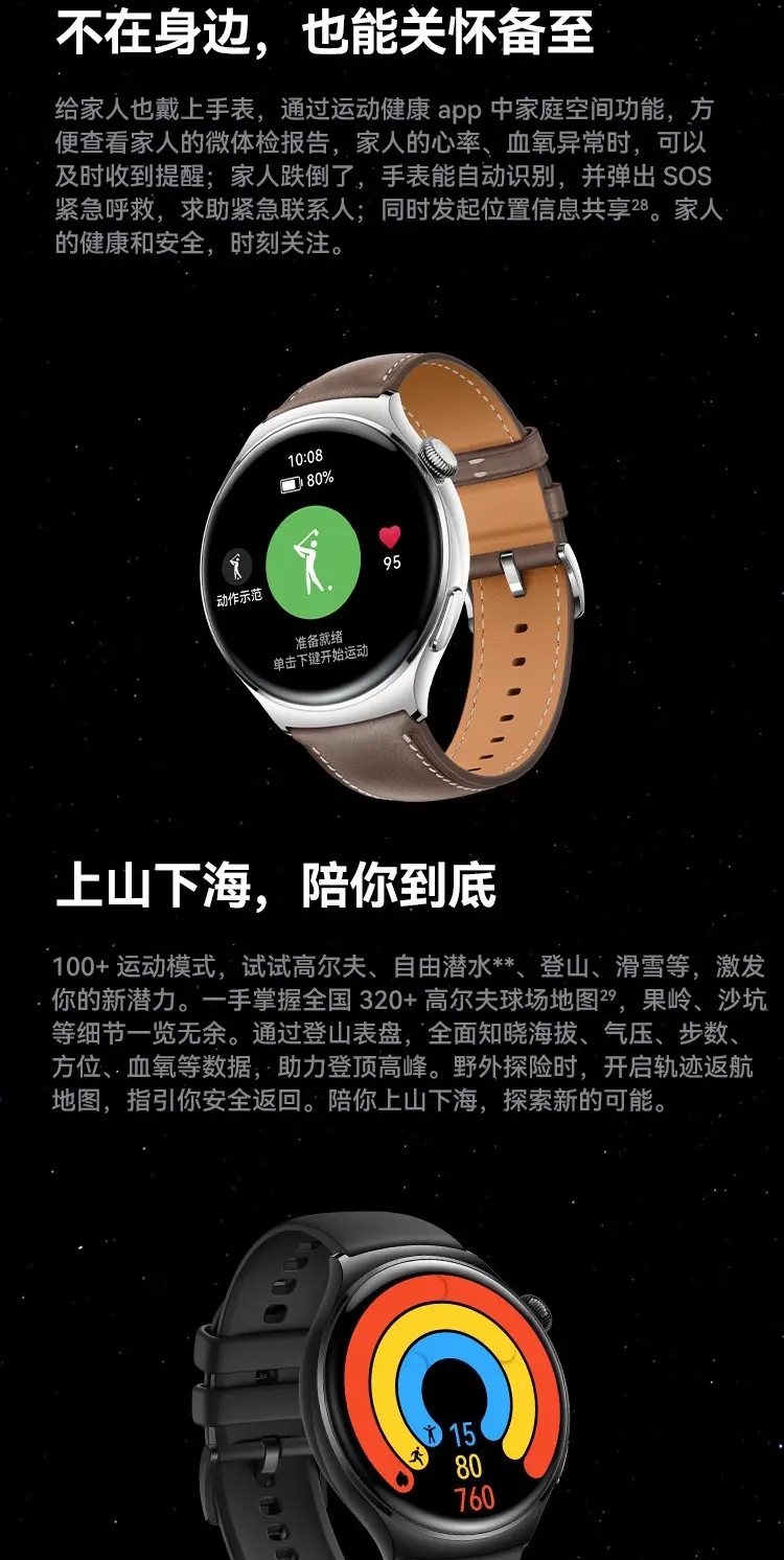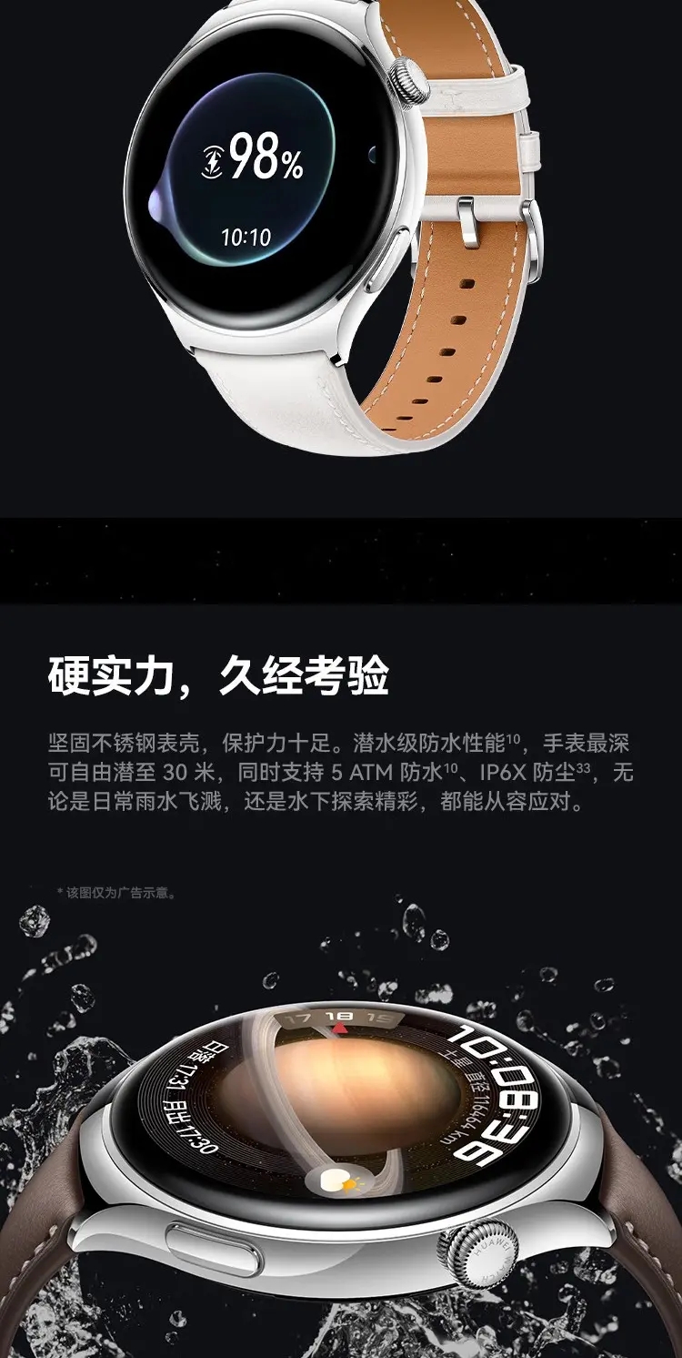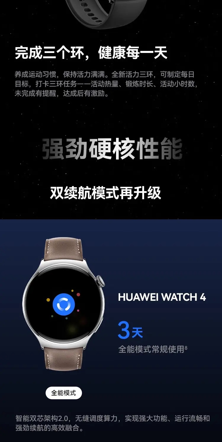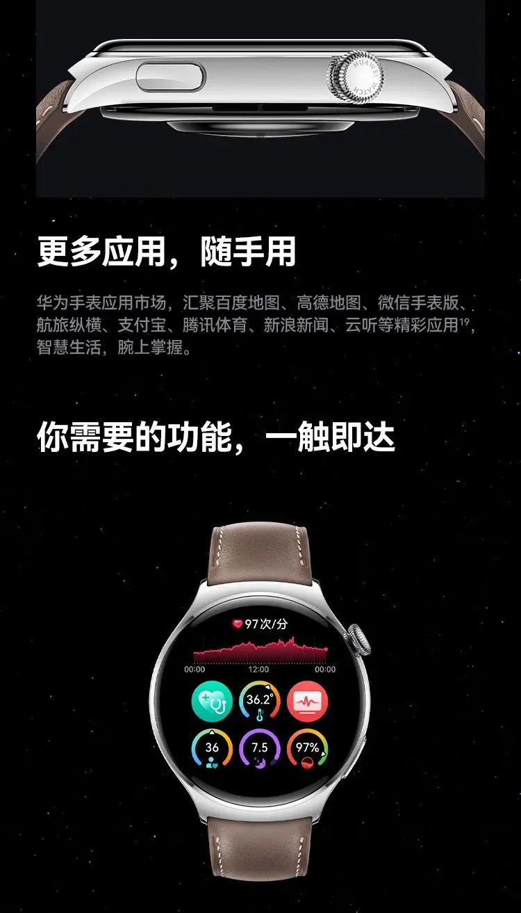 华为 WATCH 4 智能手表 幻月黑 氟橡胶表带