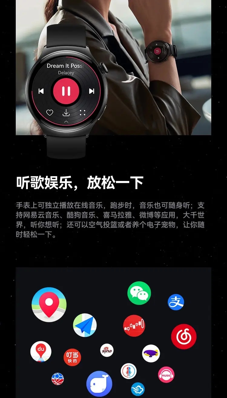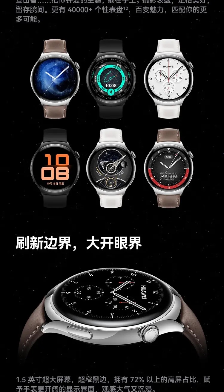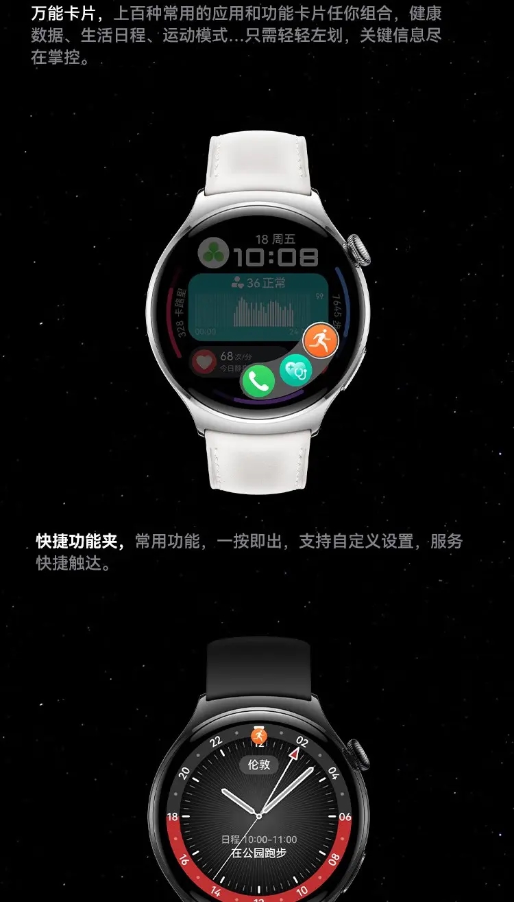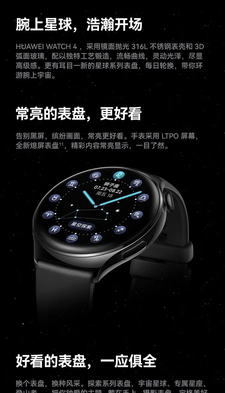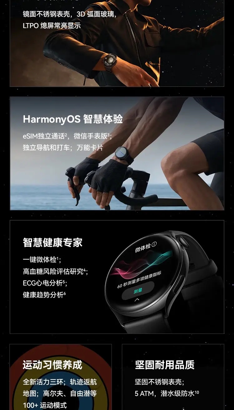 华为 WATCH 4 智能手表 幻月黑 氟橡胶表带