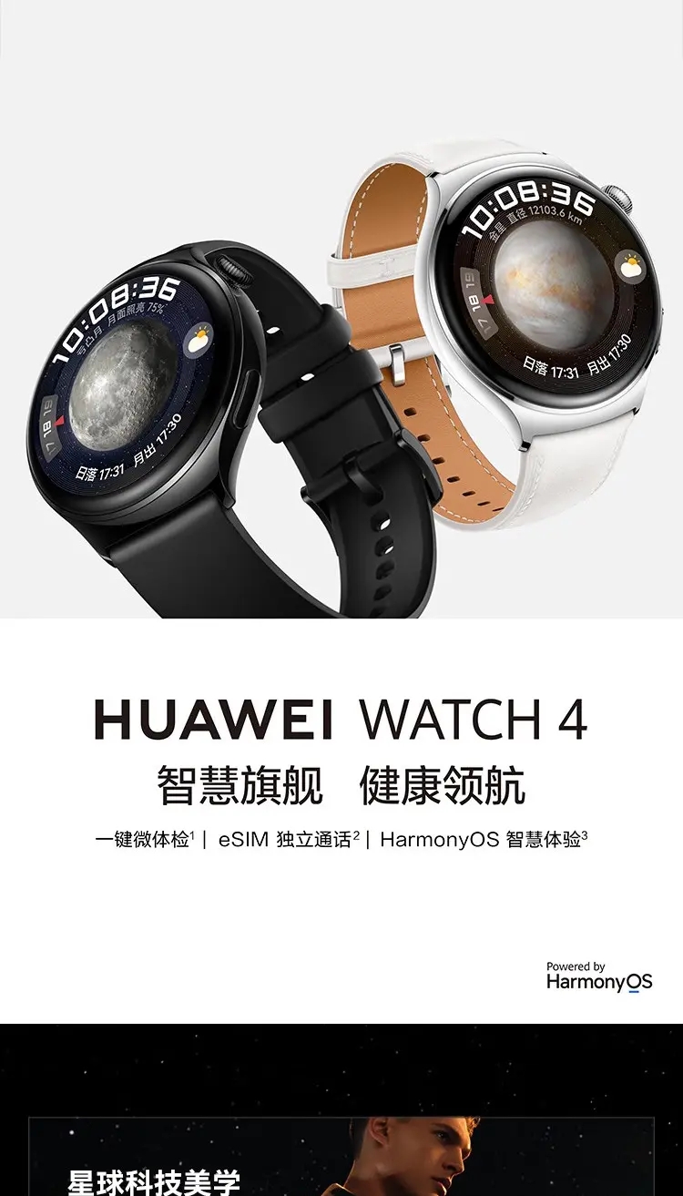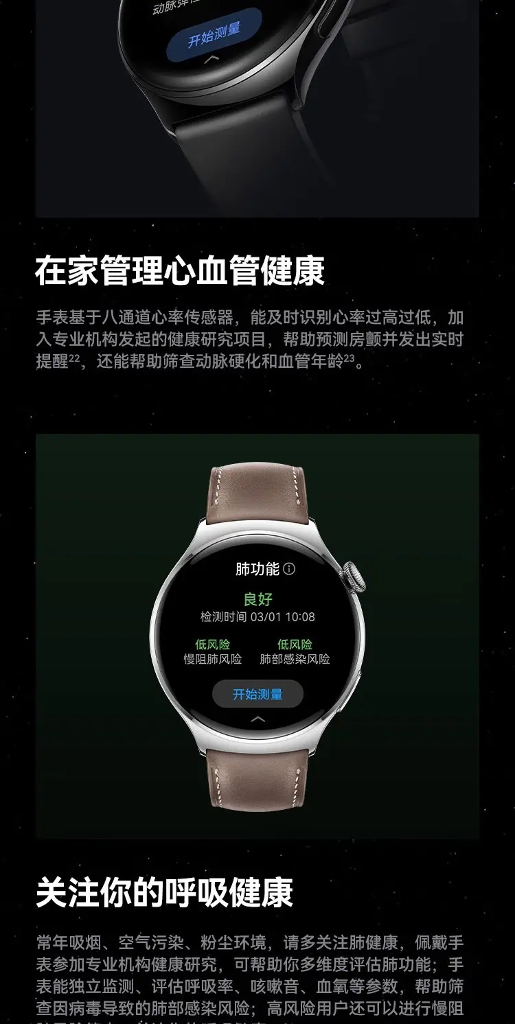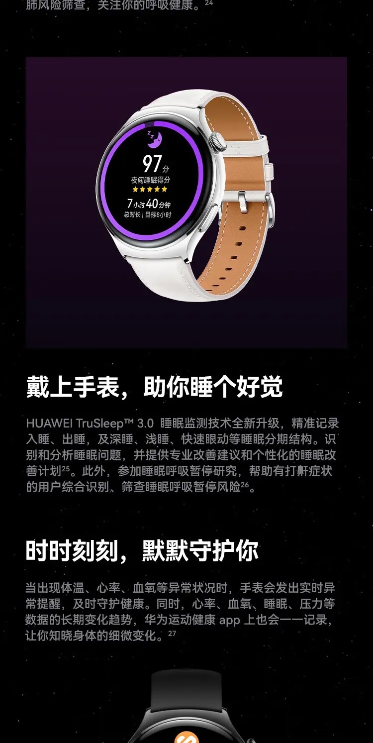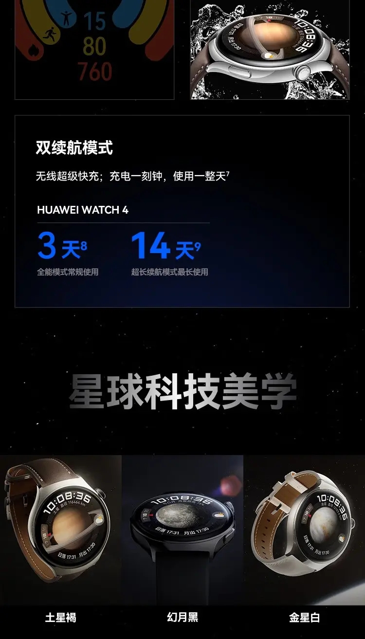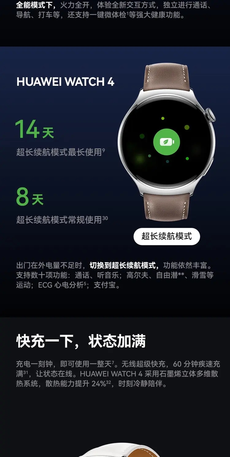 华为 WATCH 4 智能手表 幻月黑 氟橡胶表带