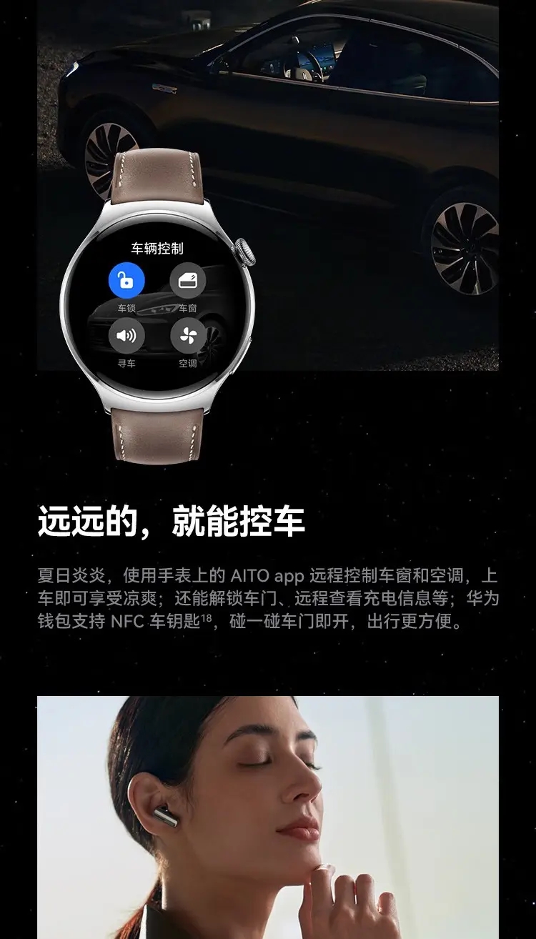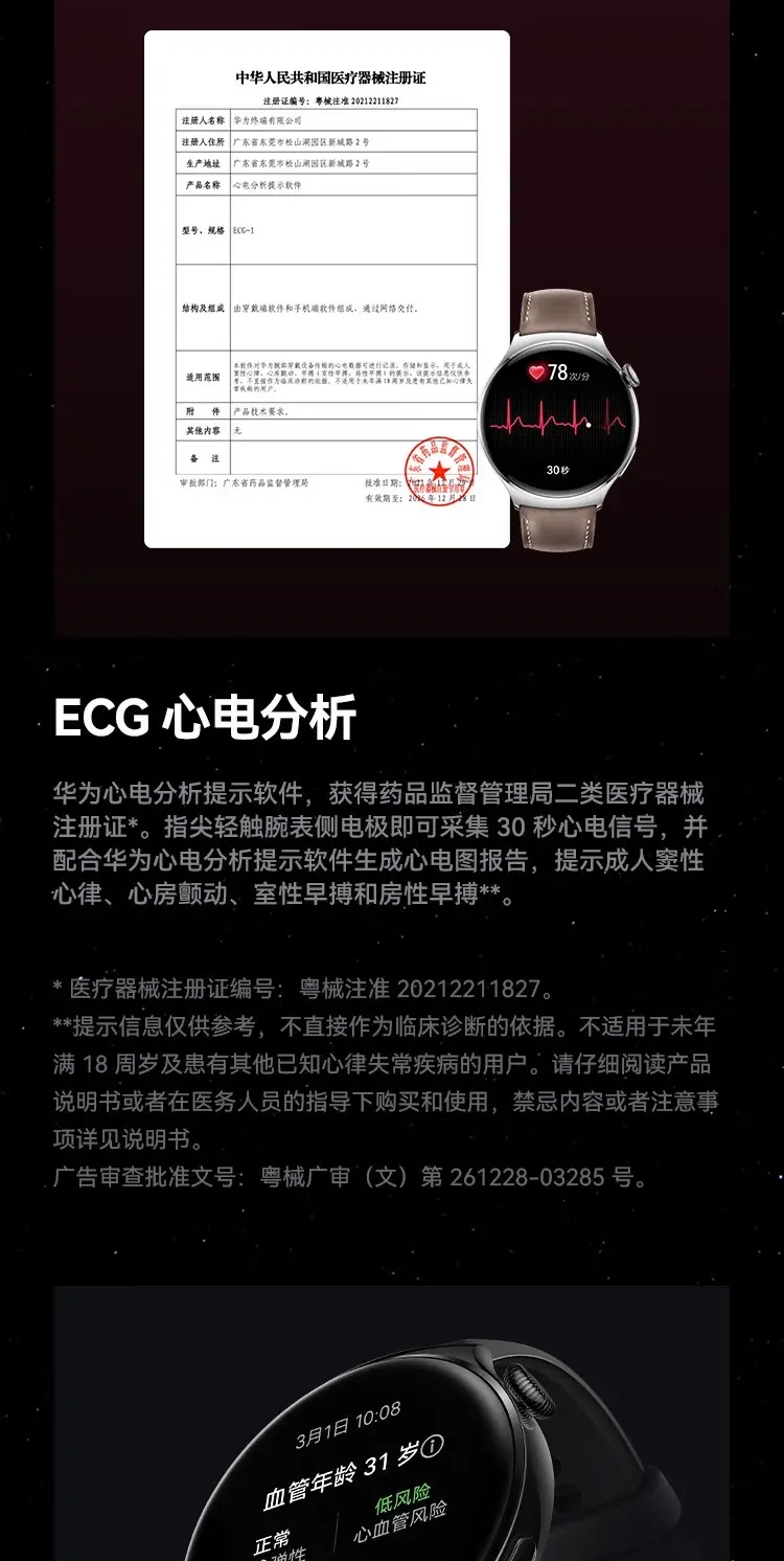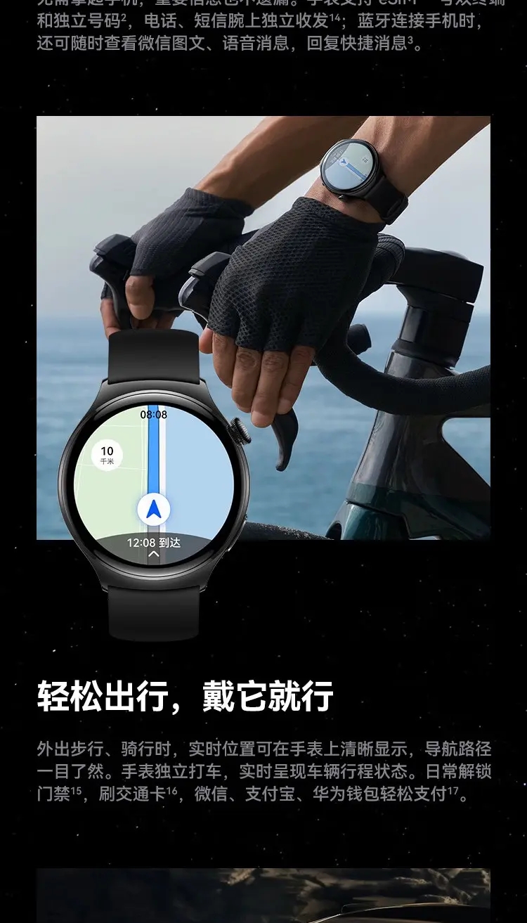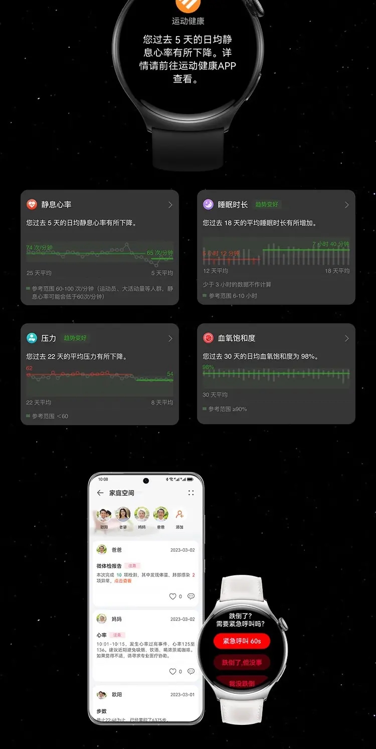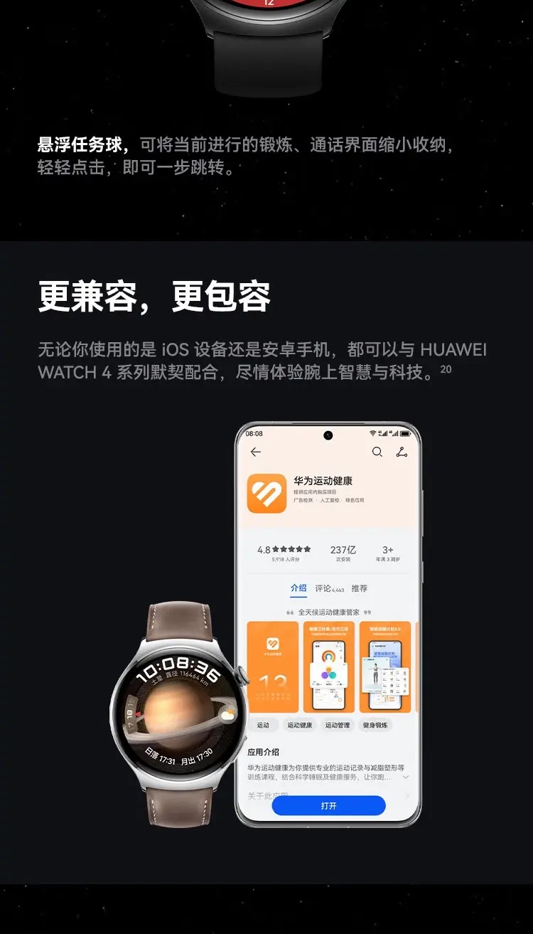 华为 WATCH 4 智能手表 幻月黑 氟橡胶表带