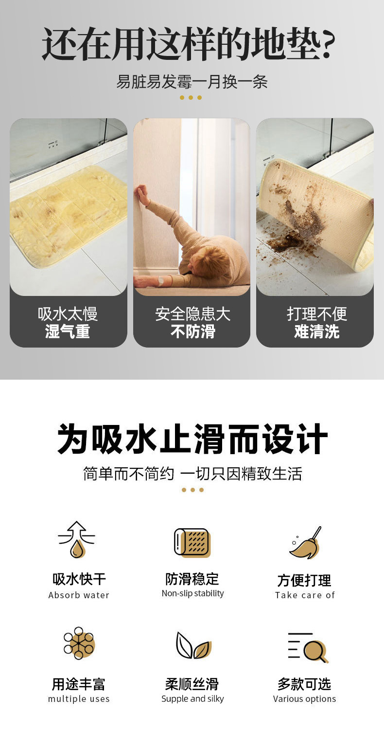 【防滑稳定❗️吸水快干】硅藻泥吸水防滑入户门垫卫生间浴室地垫玄关耐脏易打理地垫。ya