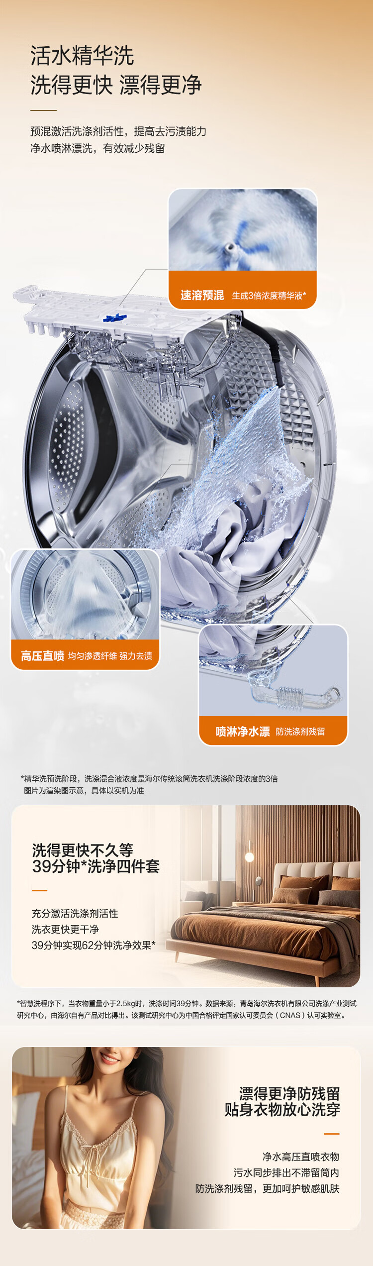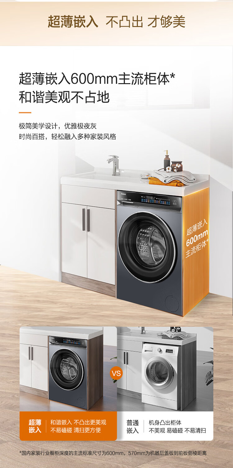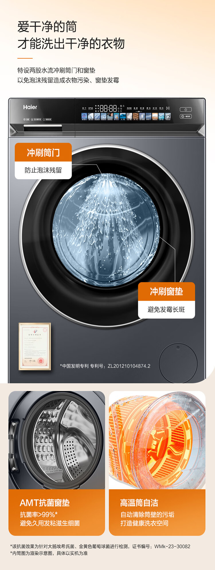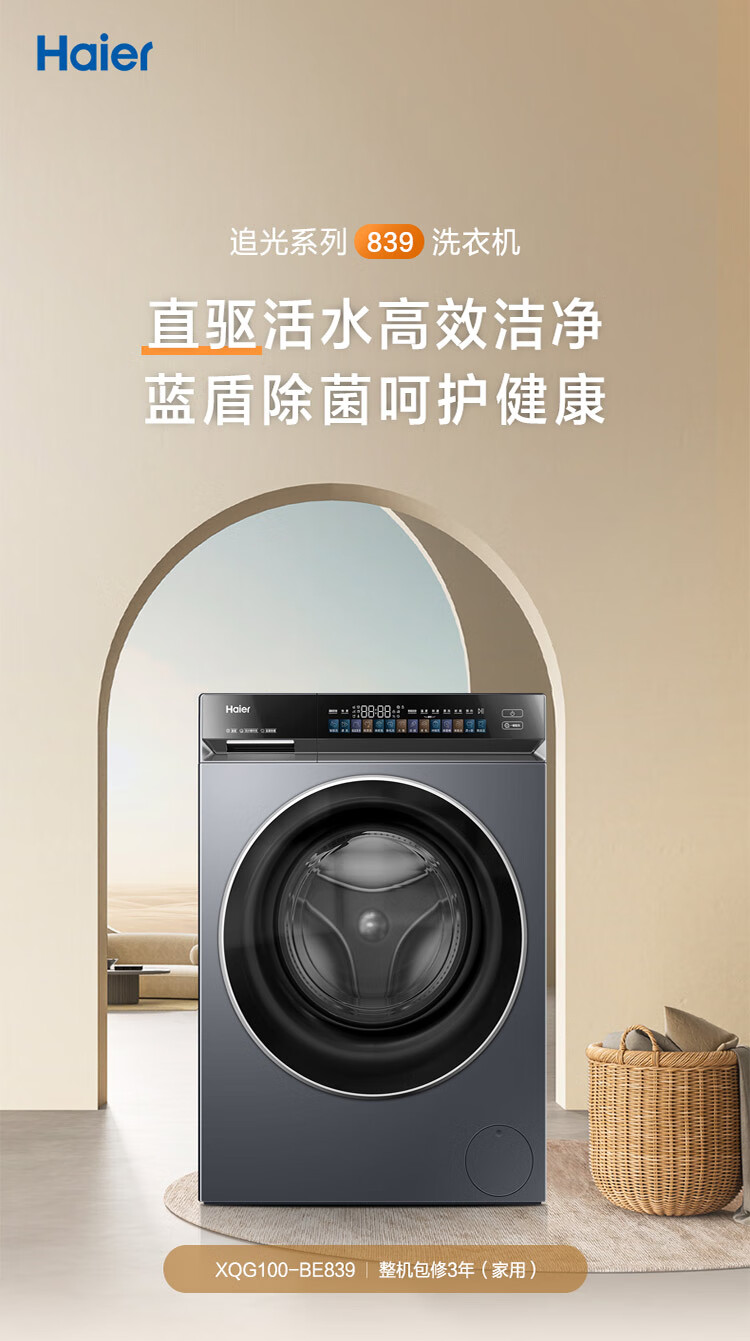 海尔直驱变频10公斤家用全自动超薄嵌入精华洗1.12洗净比滚筒洗衣机 10KG滚筒单洗XQG100-BE839