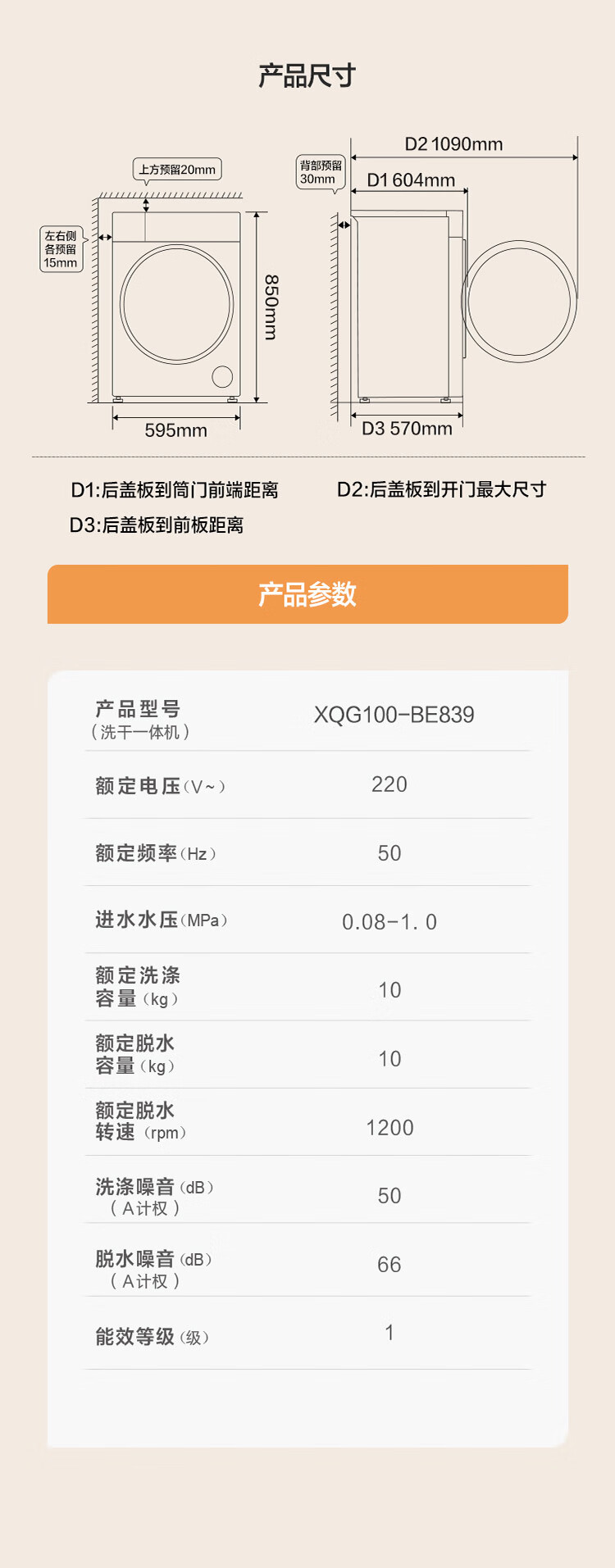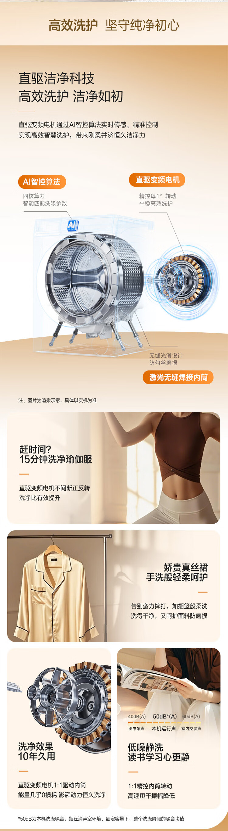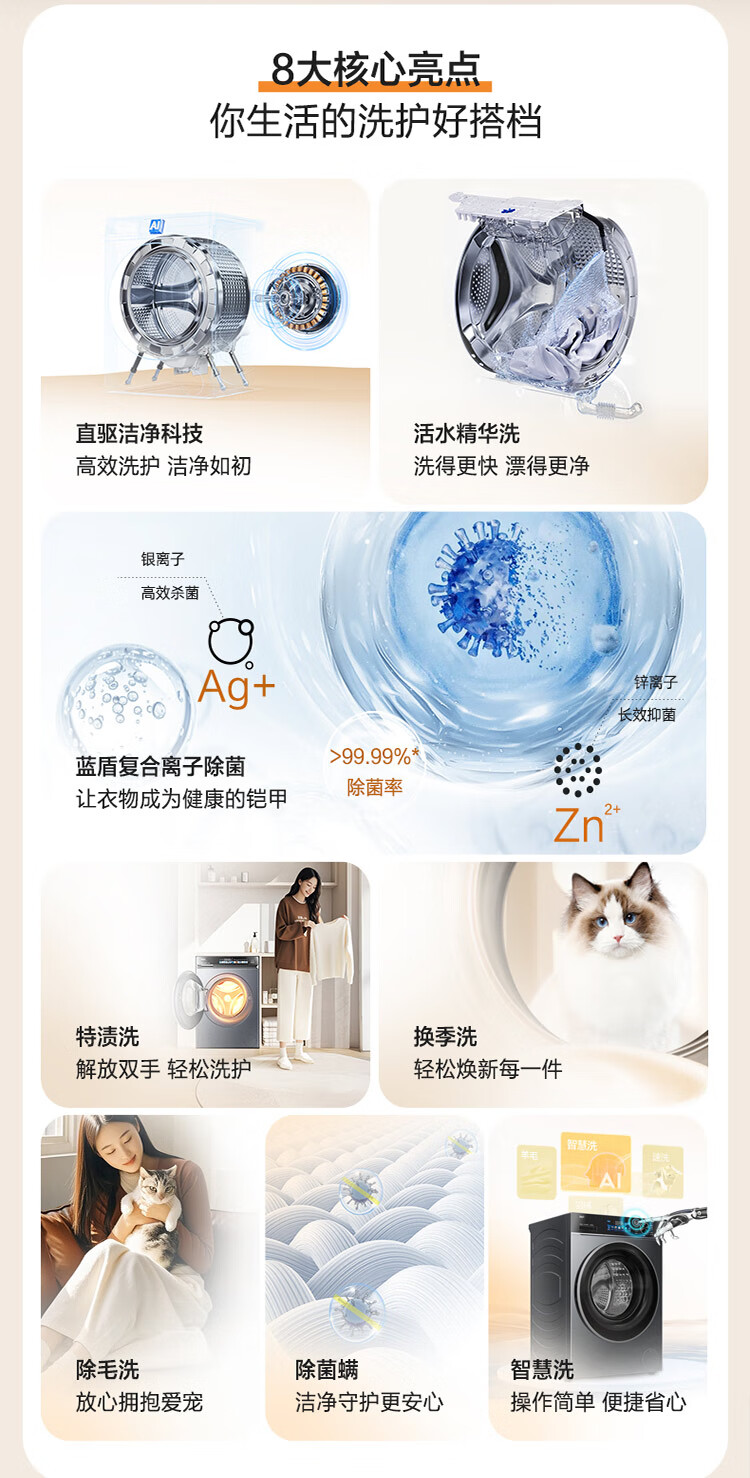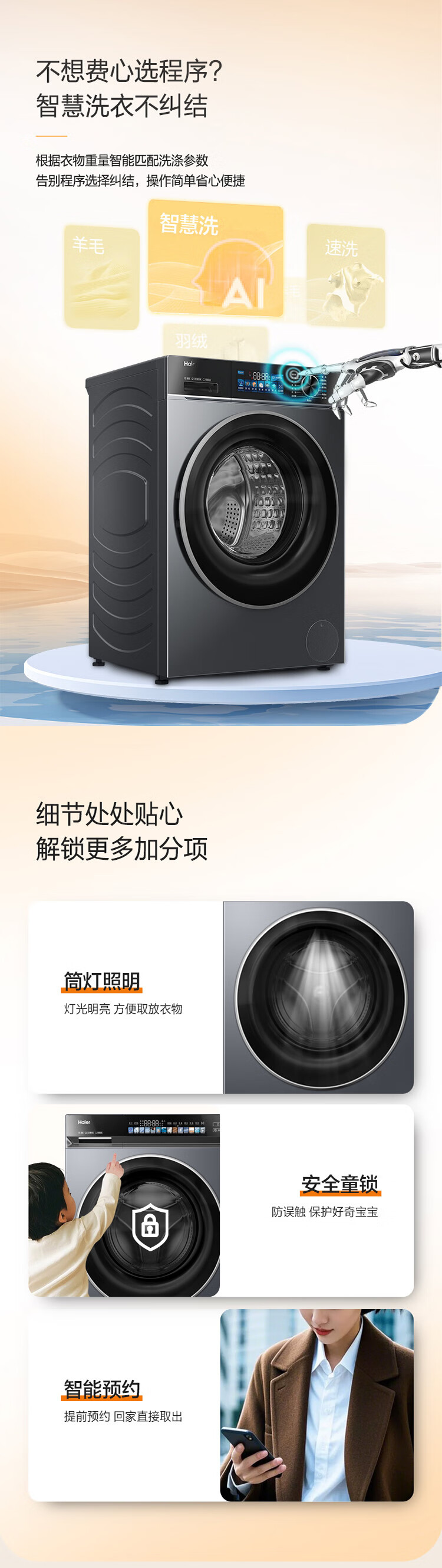 海尔直驱变频10公斤家用全自动超薄嵌入精华洗1.12洗净比滚筒洗衣机 10KG滚筒单洗XQG100-BE839
