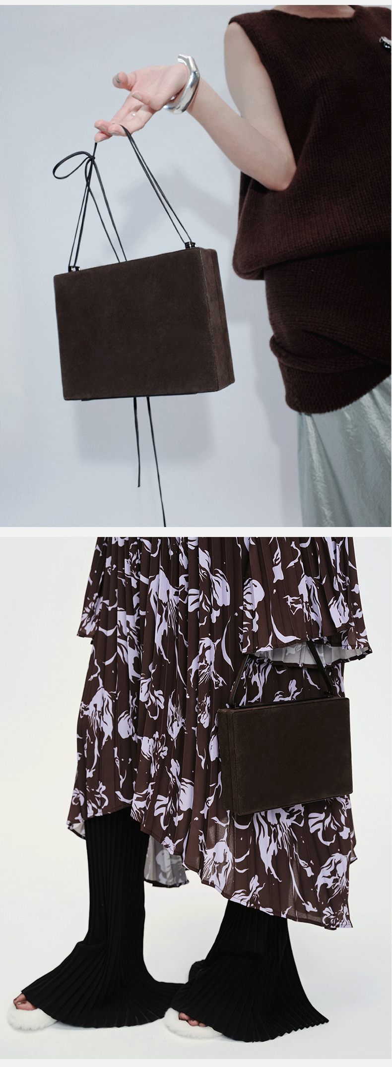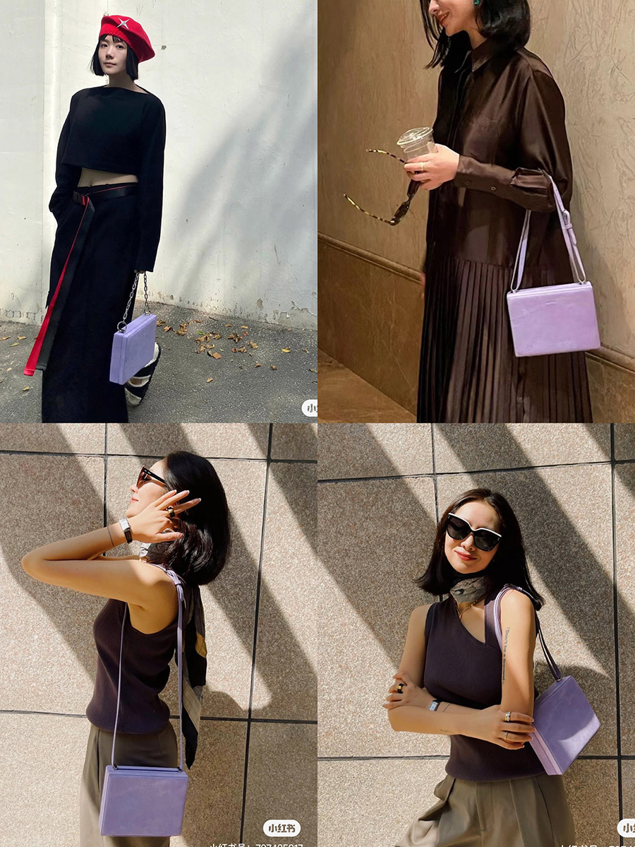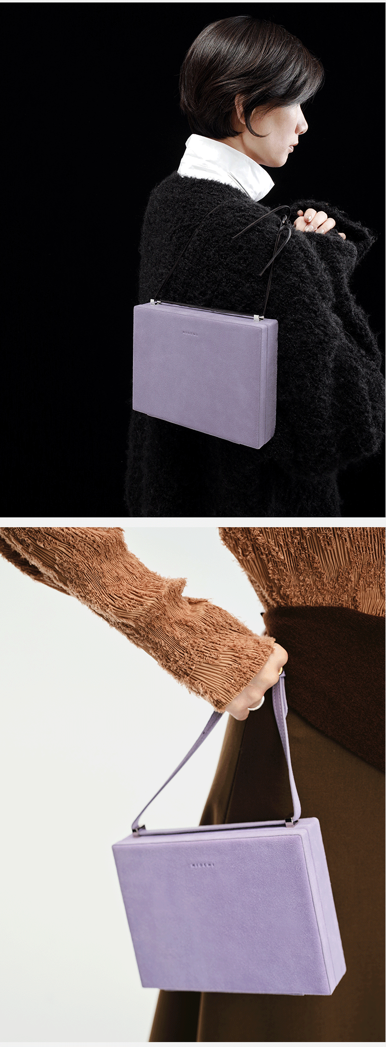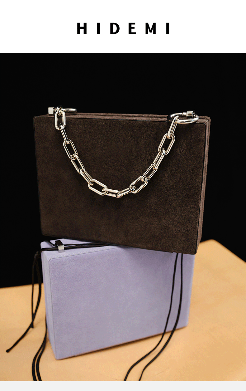 HIDEMI 经典进⼝麂⽪可拆卸双肩带box⾖腐包中号/附送金属可拆卸包链 棕⾊/雾紫⾊
