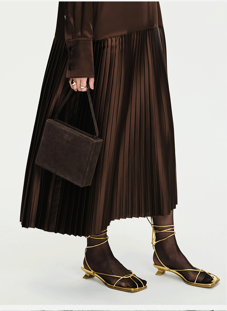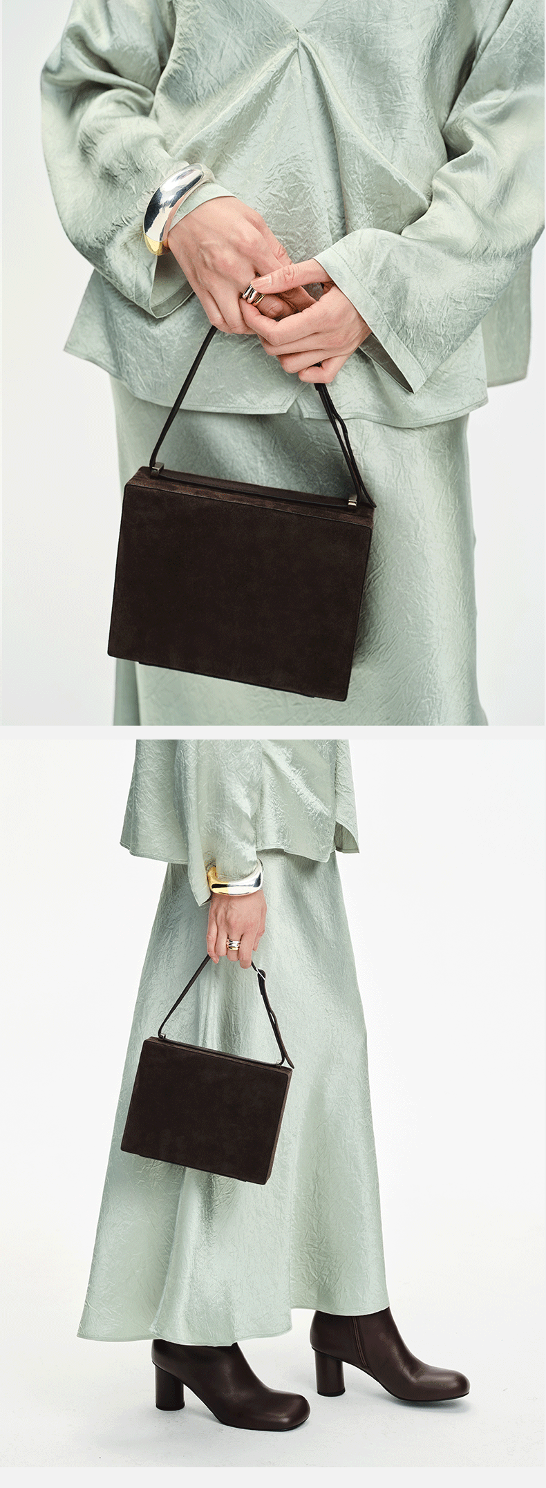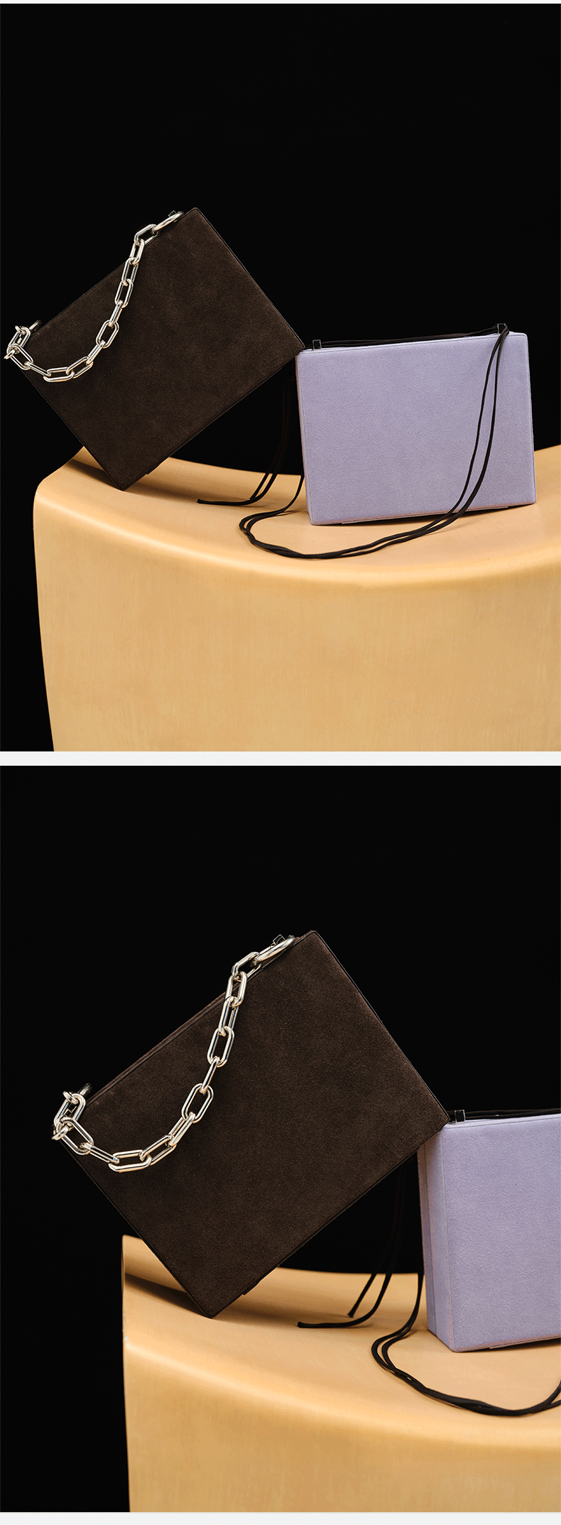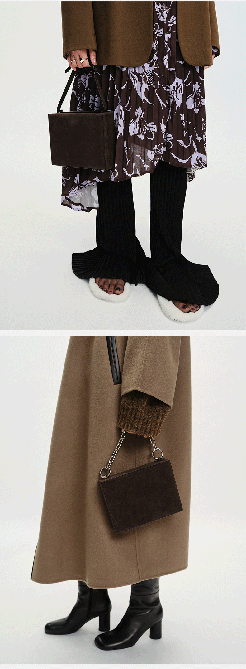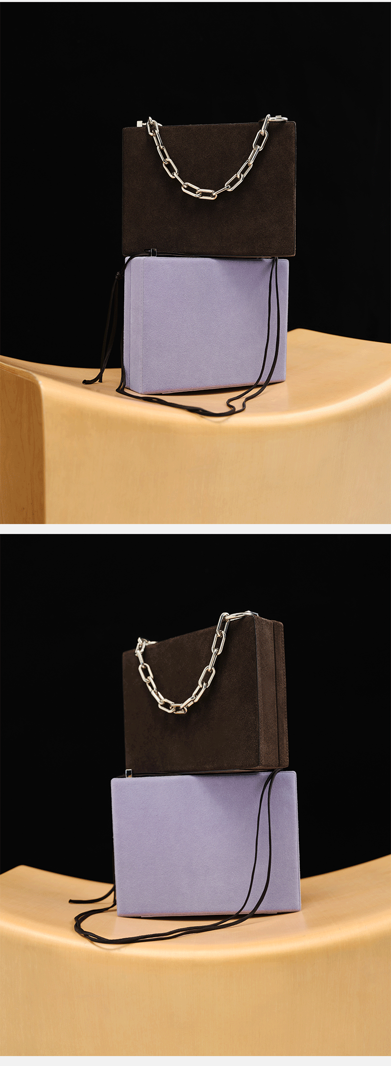 HIDEMI 经典进⼝麂⽪可拆卸双肩带box⾖腐包中号/附送金属可拆卸包链 棕⾊/雾紫⾊