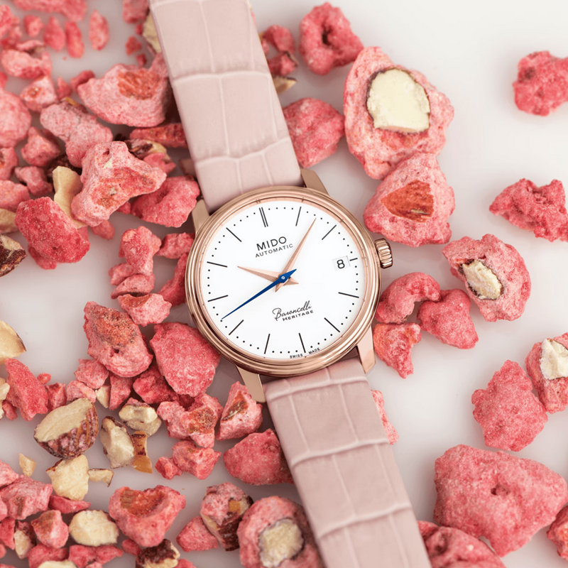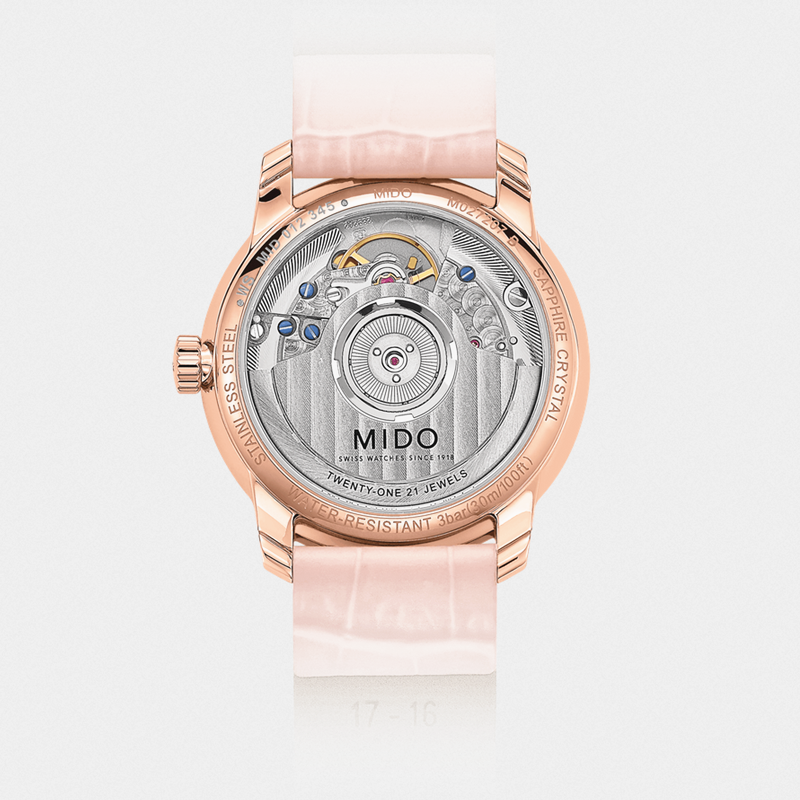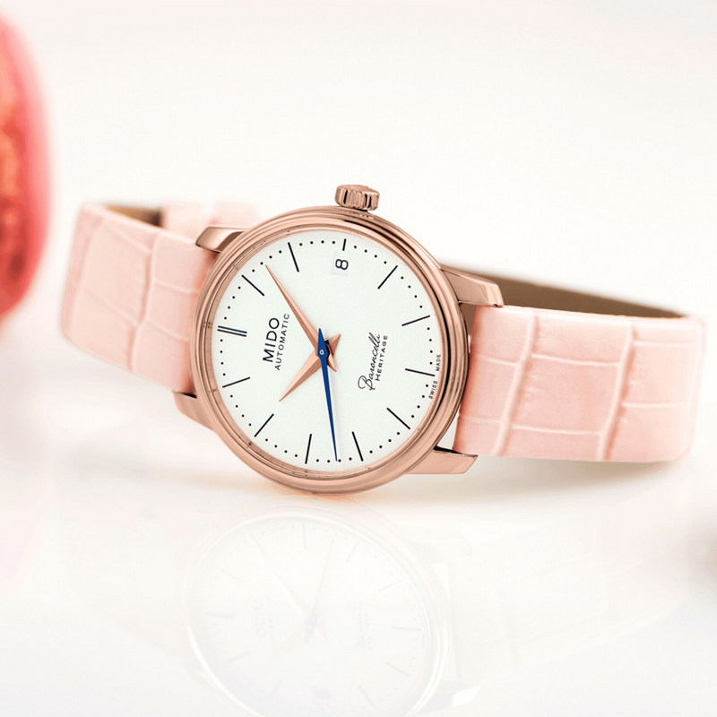 | 防水 | 30 m | 表带 | 粉色轧鳄鱼纹牛皮表带 针扣 |