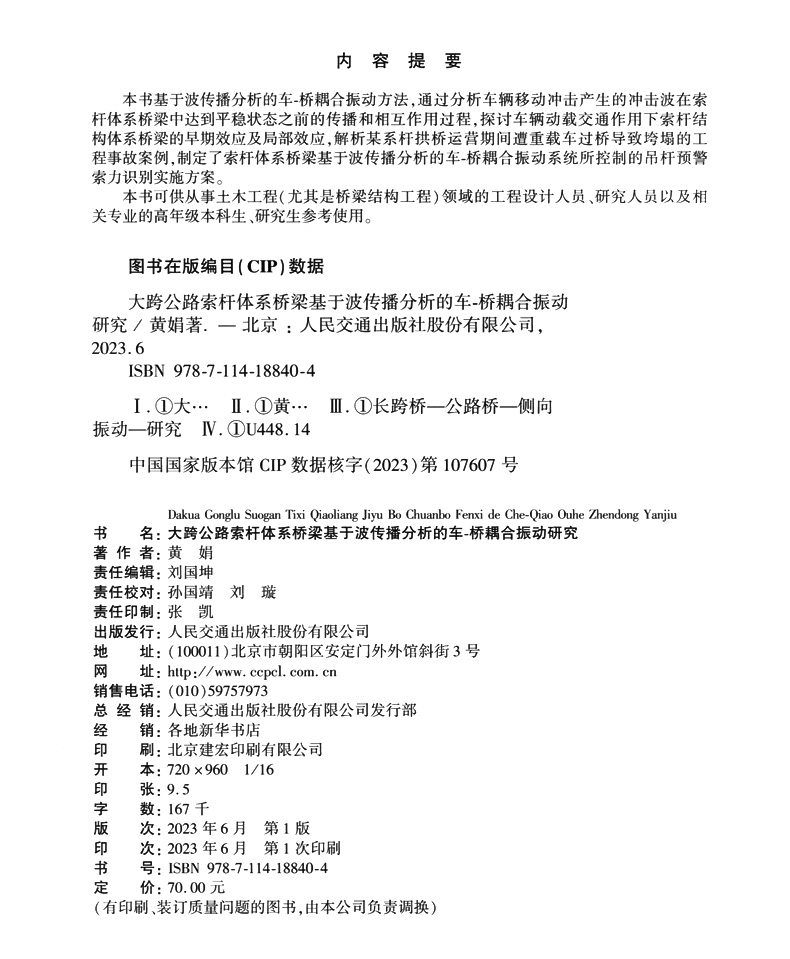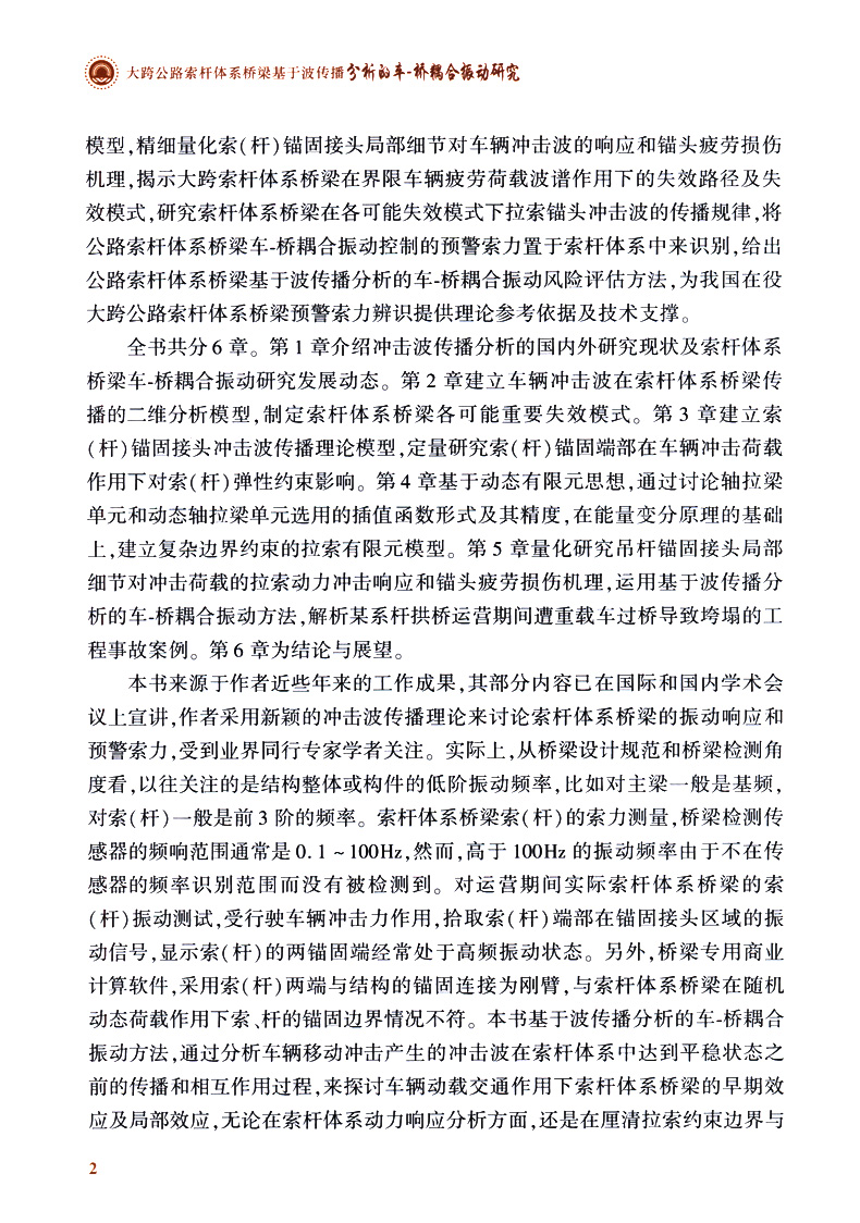 书名:大跨公路索杆体系桥梁基于波传播分析的车-桥耦合振动研究