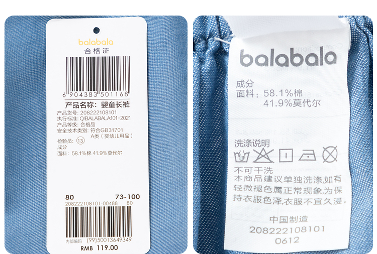 巴拉巴拉婴儿防蚊裤身高73-100男童运动裤女童休闲裤2022新款夏-TDS