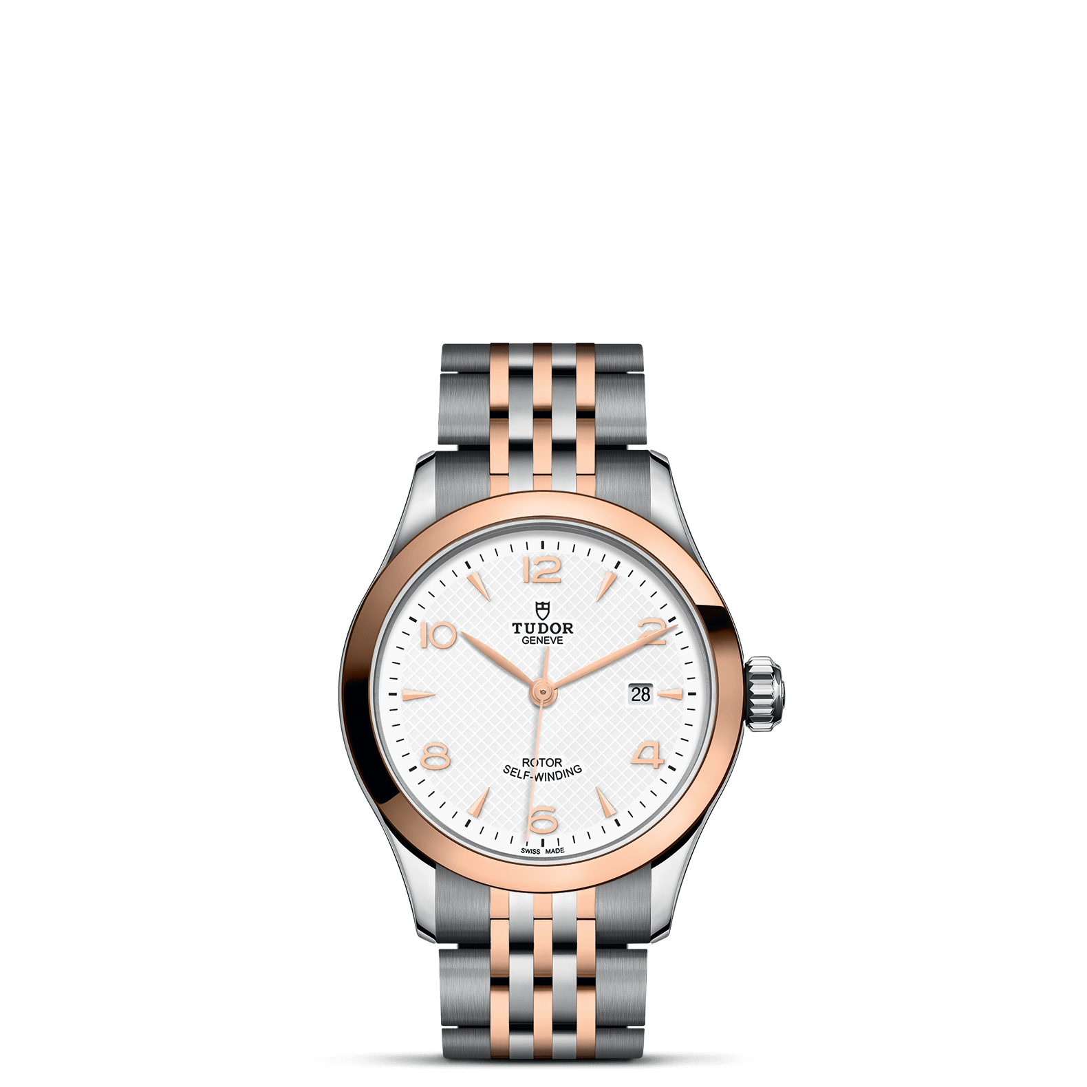 玫瑰金首排中央链节位于6点钟及12点钟位置;其他精钢中央链节覆有0.2毫米18K玫瑰金薄层