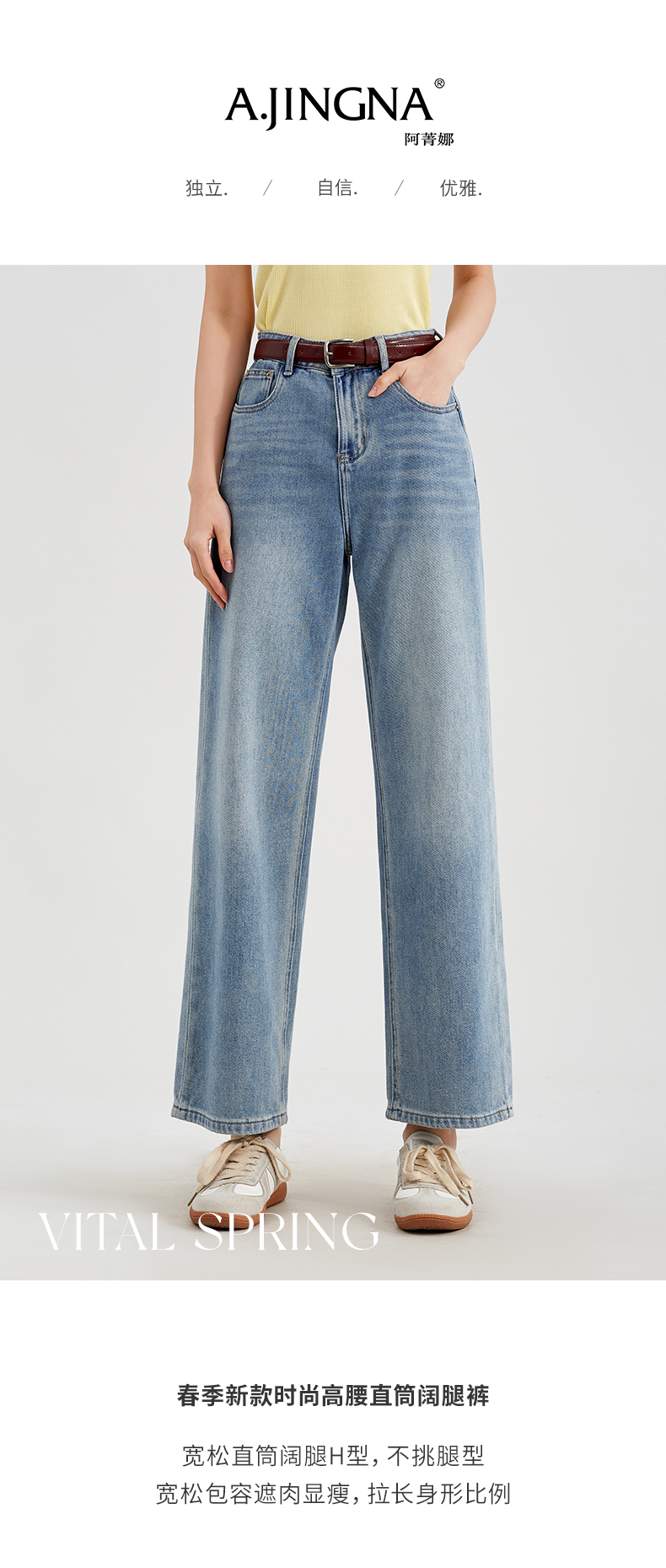 【复古时髦】阿菁娜新款时尚高腰直筒阔腿裤F30C210035