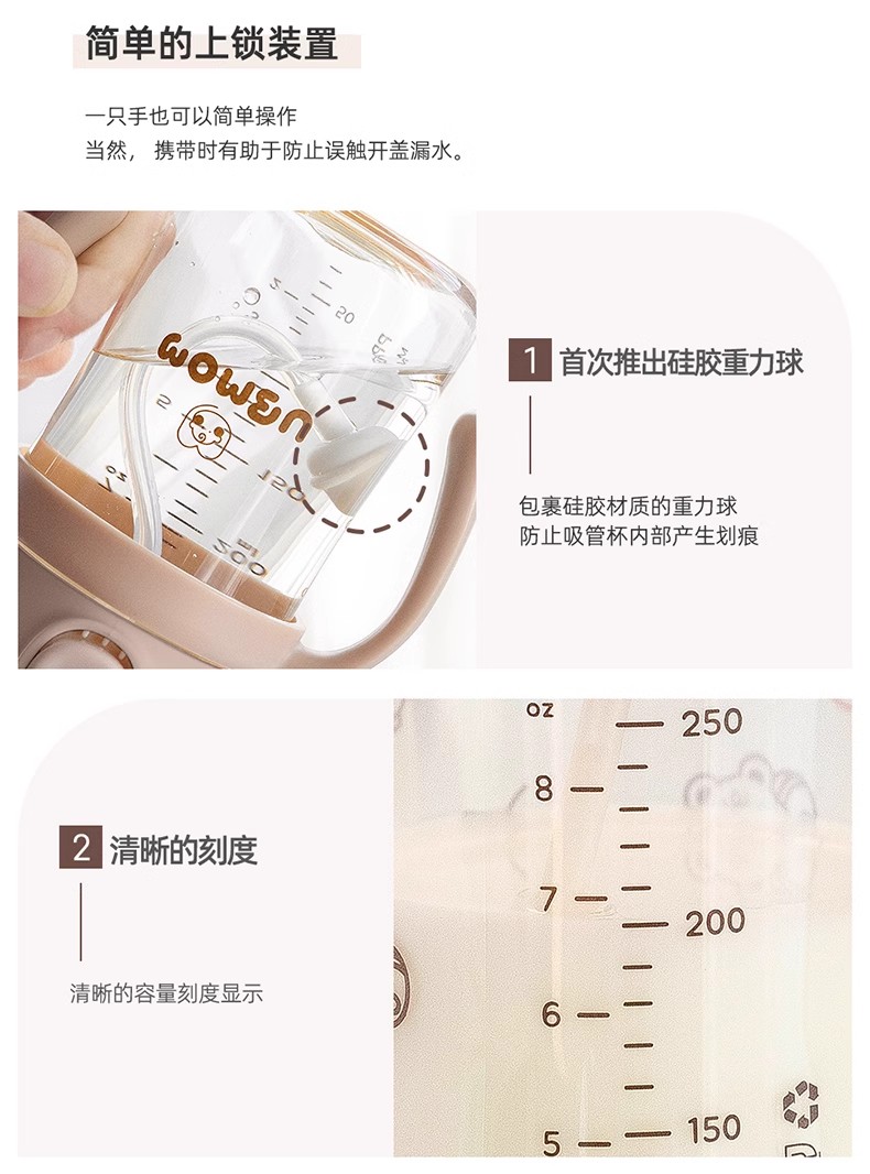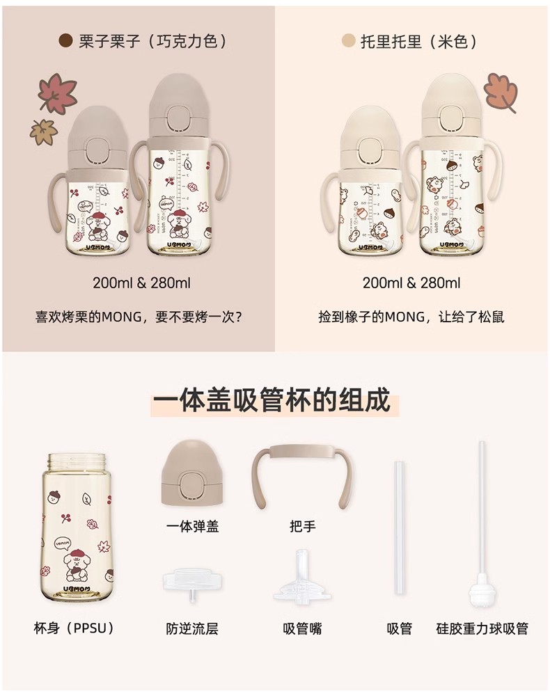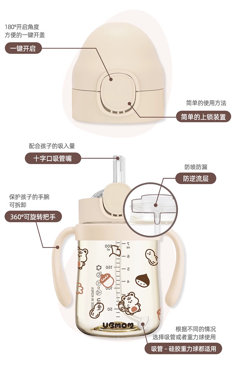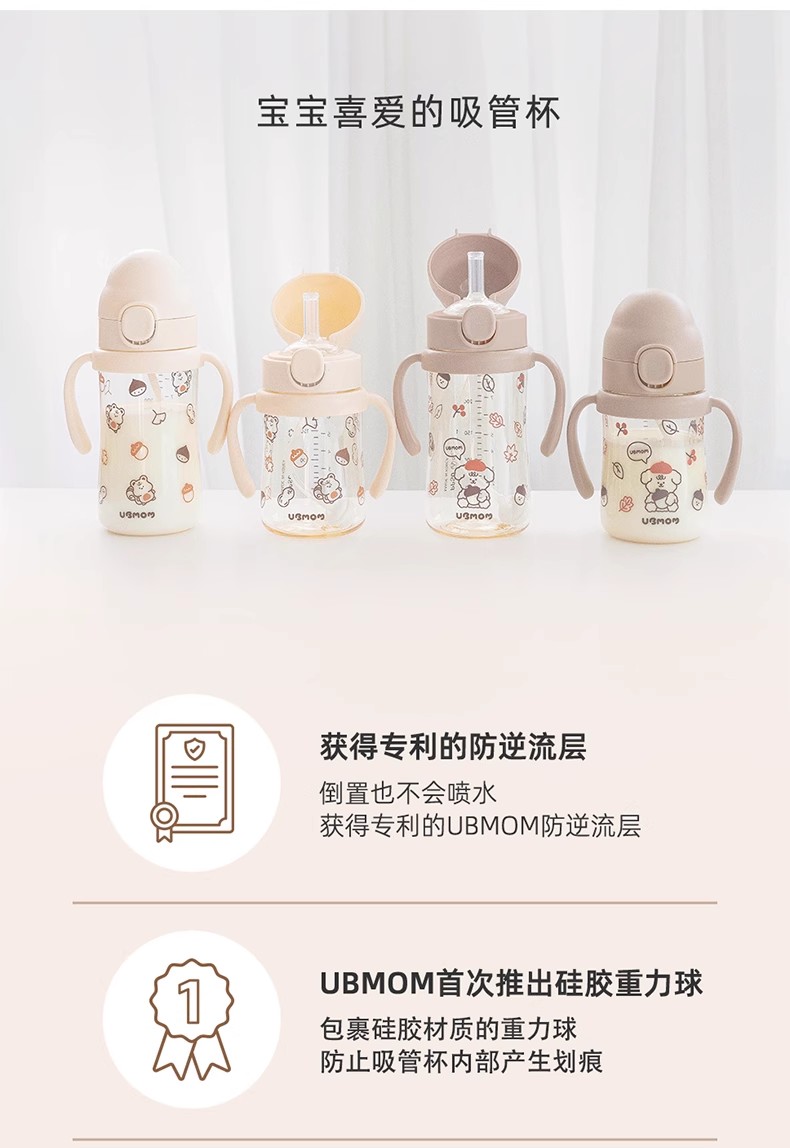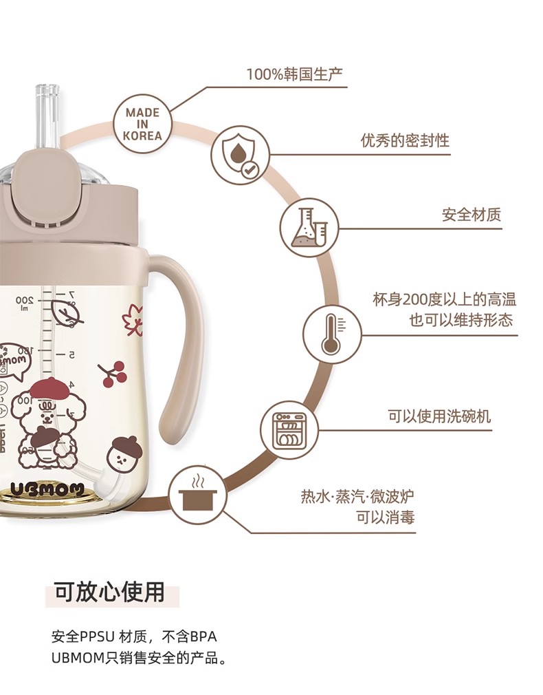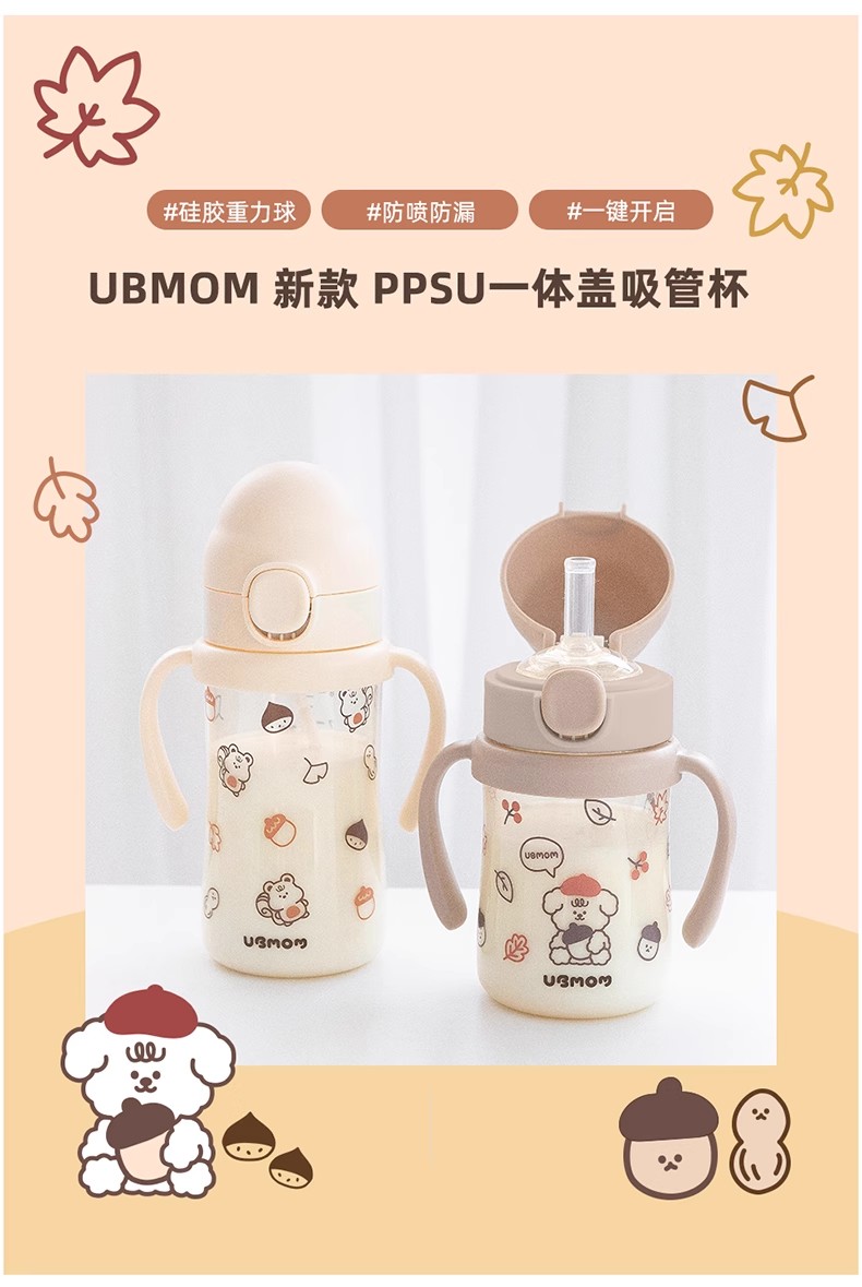 韩国进口UBMOM PPSU防逆流吸管杯280ML 83794