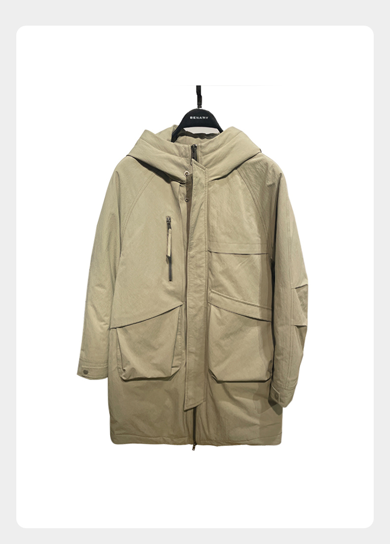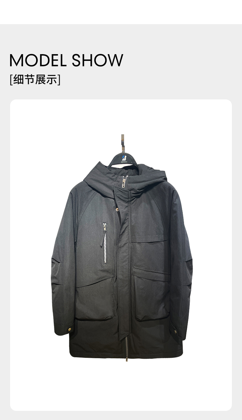 贝纳川时尚连帽插肩袖中长款男士羽绒服BCP405102