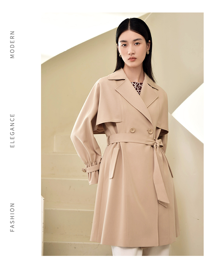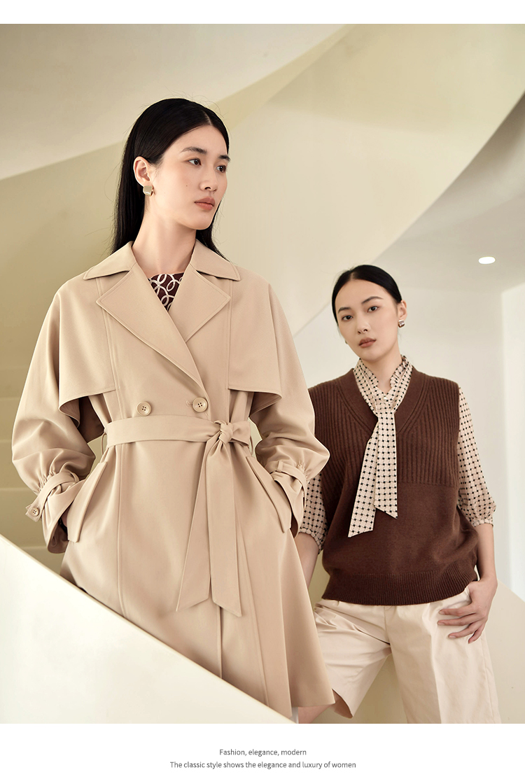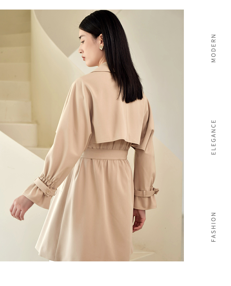 佐尔美新品春秋季新款纯色简约百搭修身中老年女士风衣E73FZ02